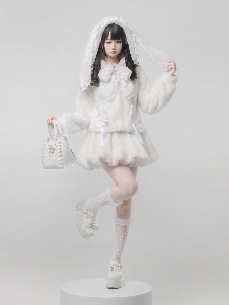 【2月7日予約締切】うさ耳フーディースノーファープラッシュジャケット+バルーンスカート