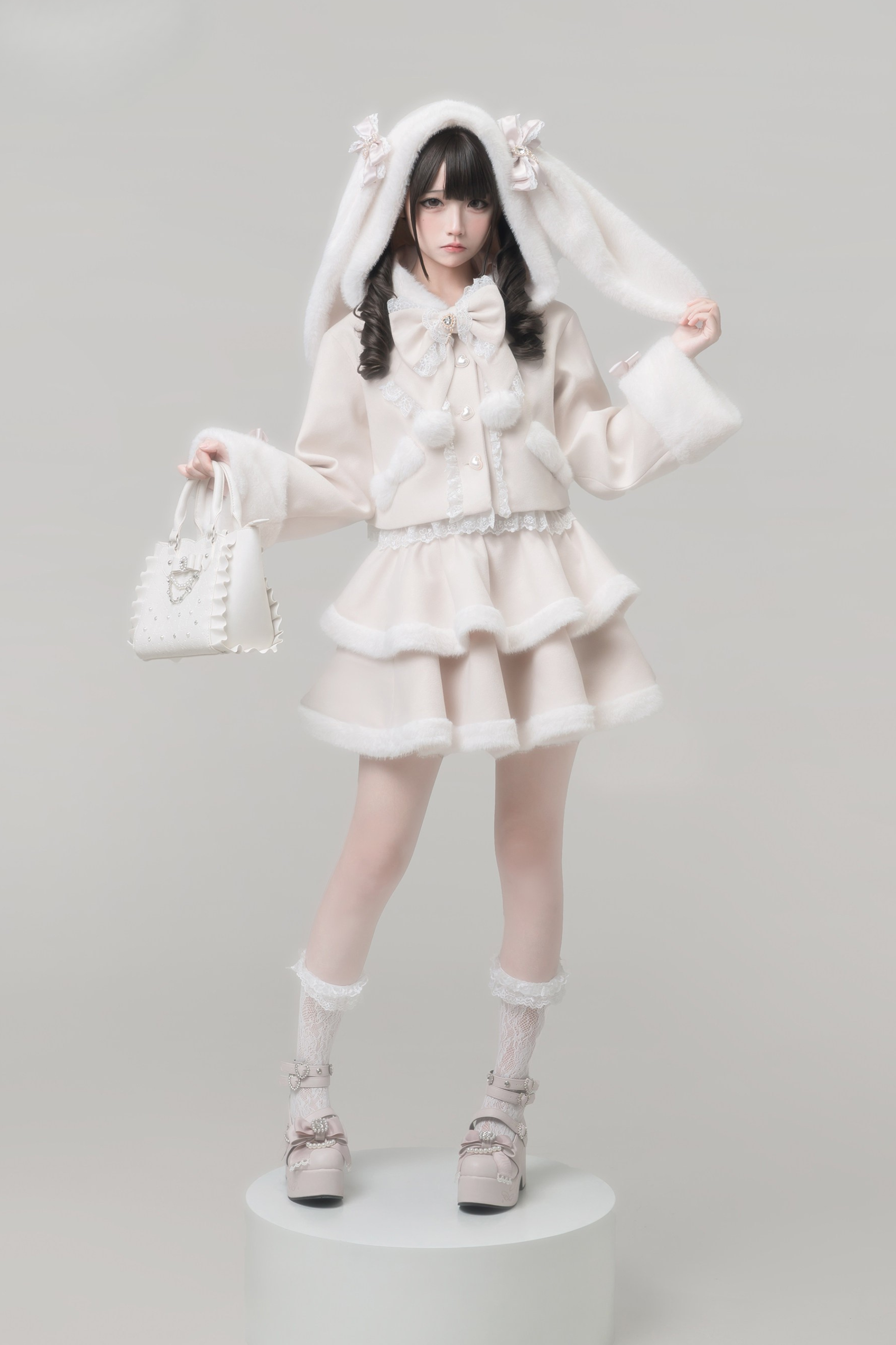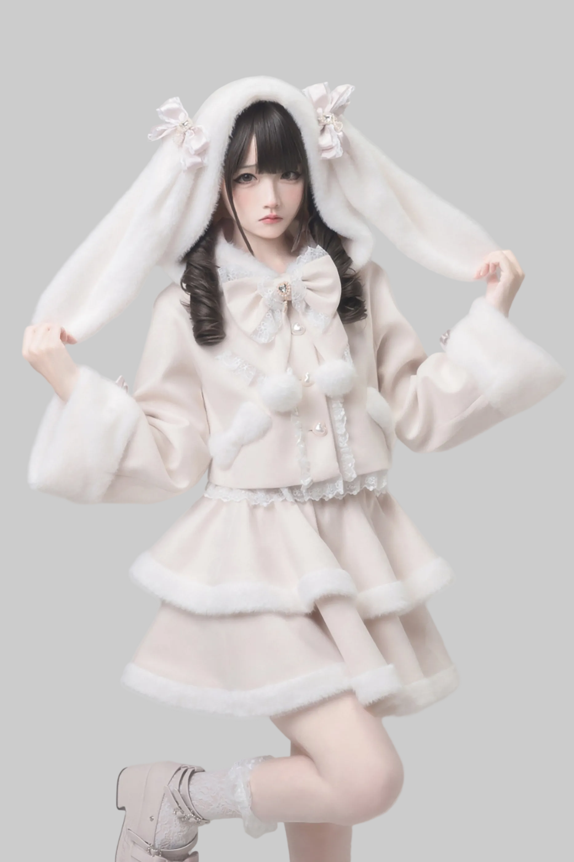 【2月7日予約締切】うさ耳フーディーファーリボンジャケット+ファースカート
