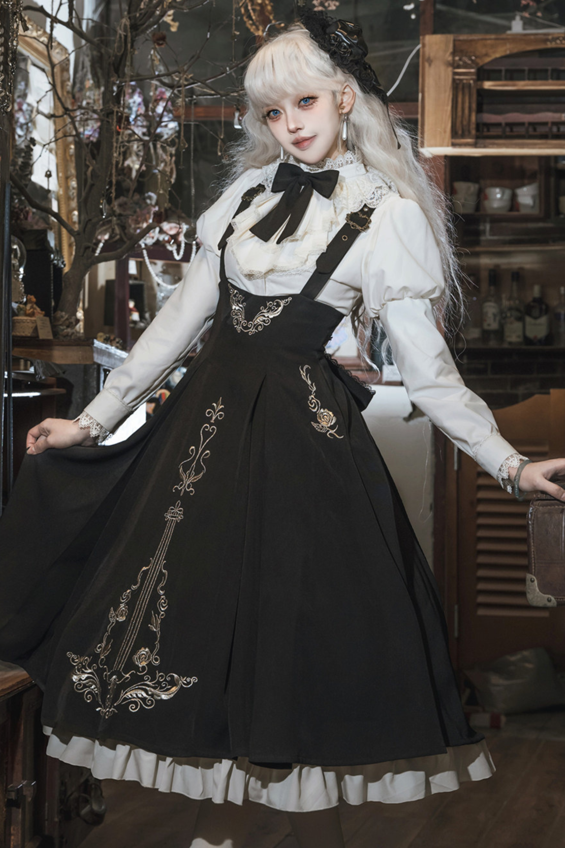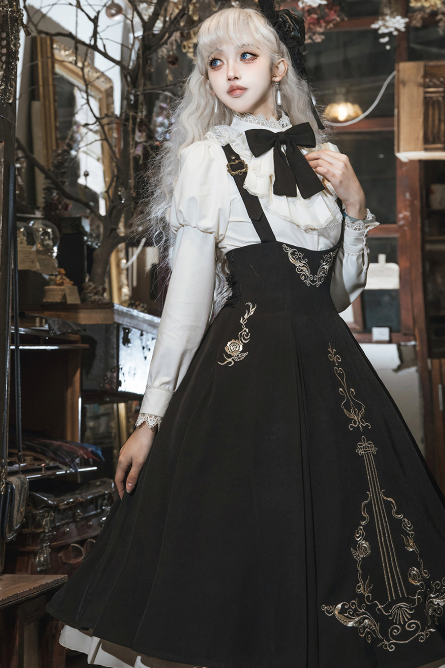 【予約商品】ゴシックダークサスペンダーロングドレス+シャツ+ジャケット