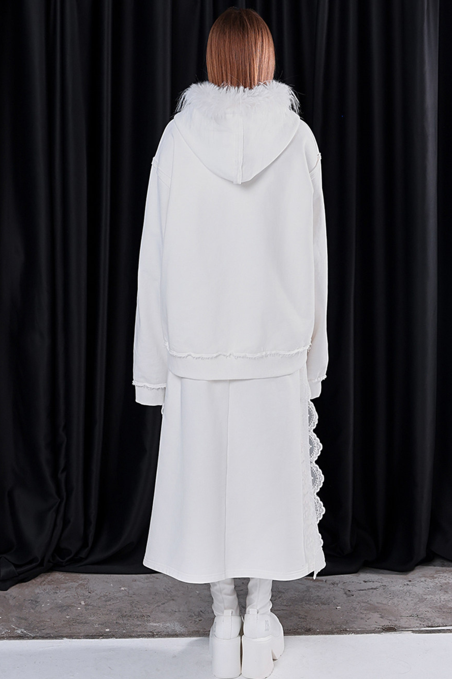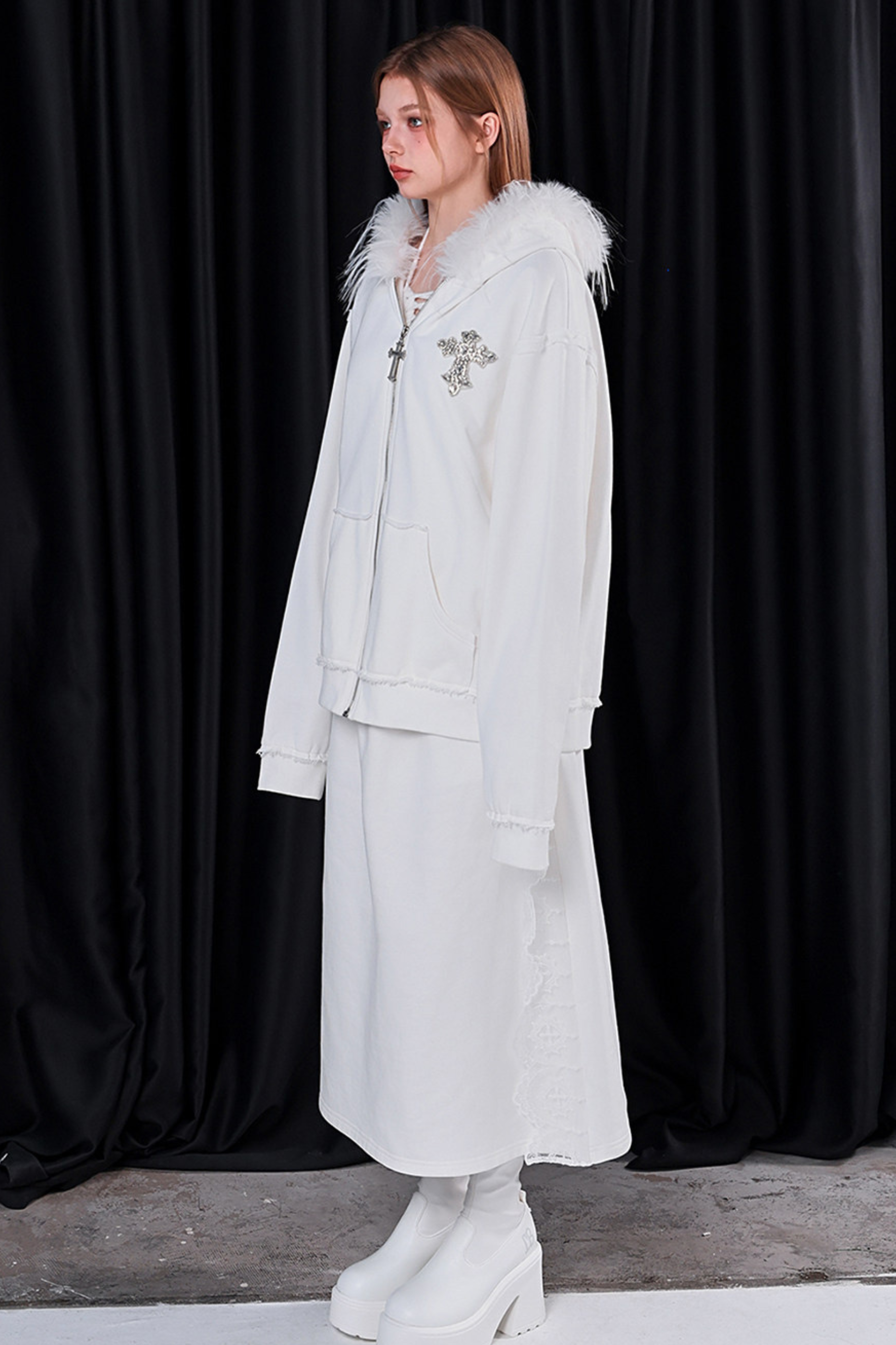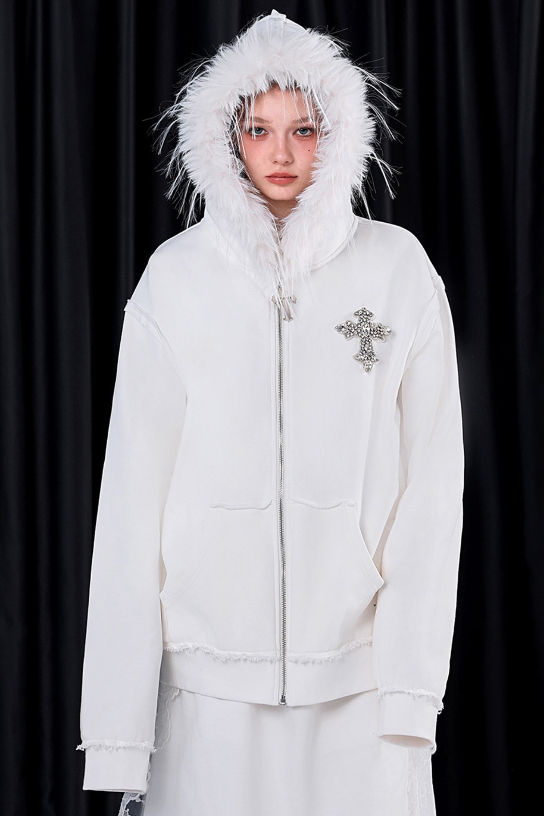 ファーフードモードルーズジップパーカー