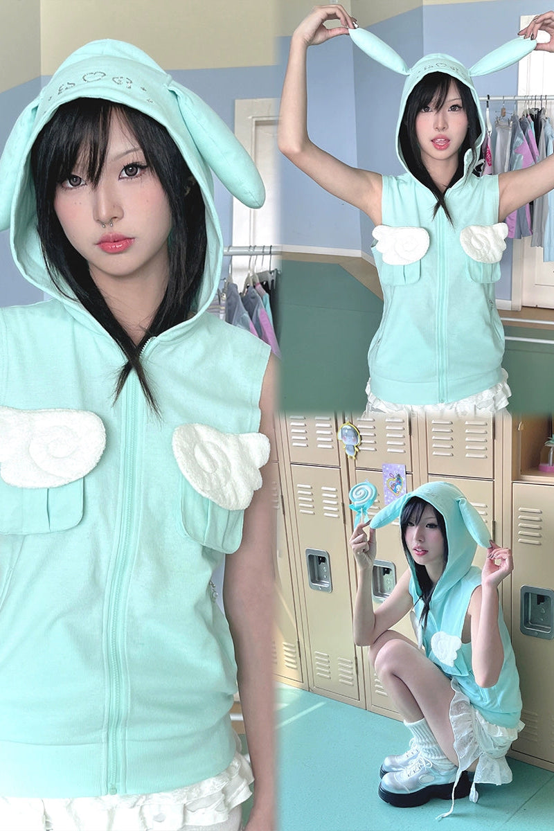 ❤Y2K天使の羽フード付きノースリーブトップス❤