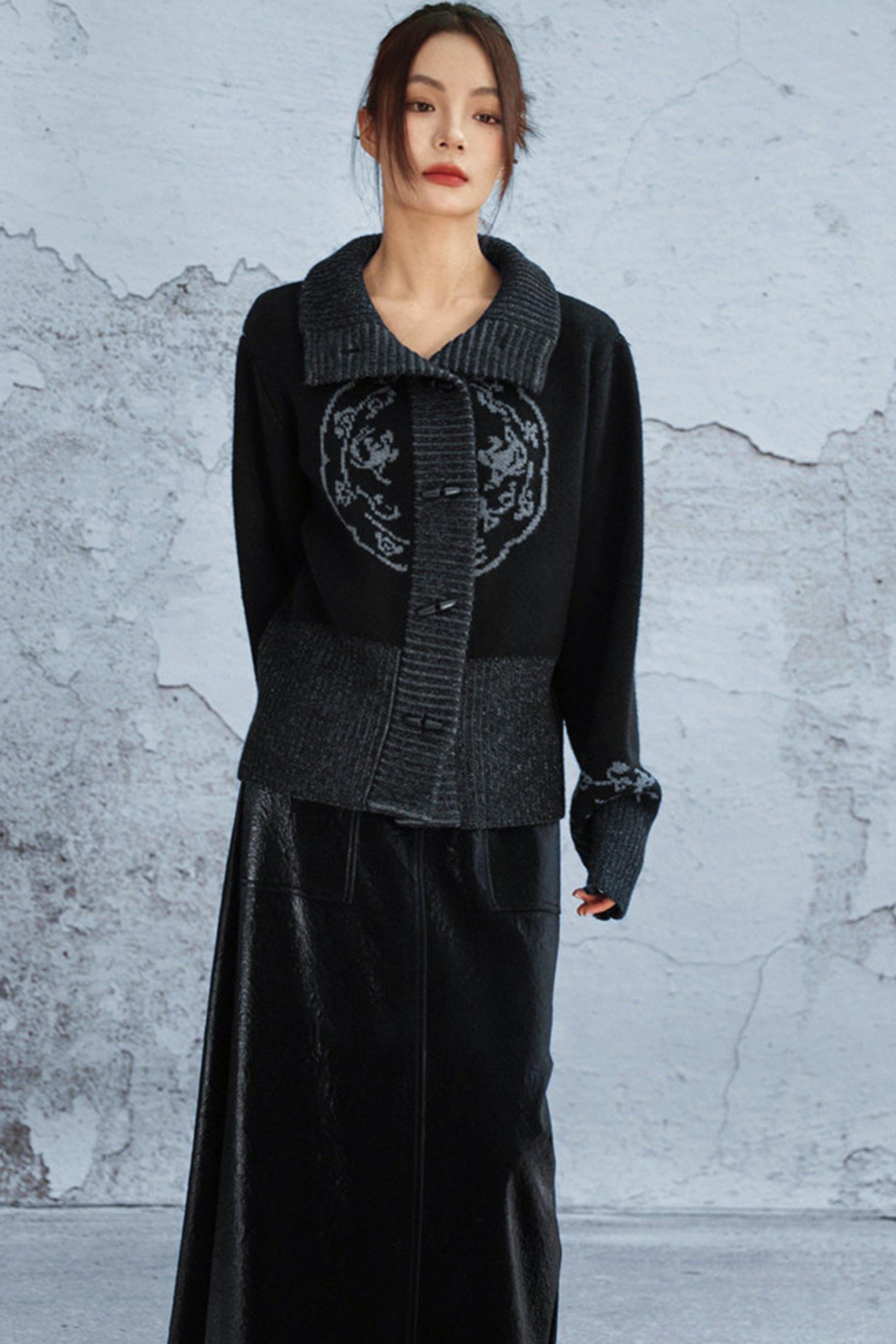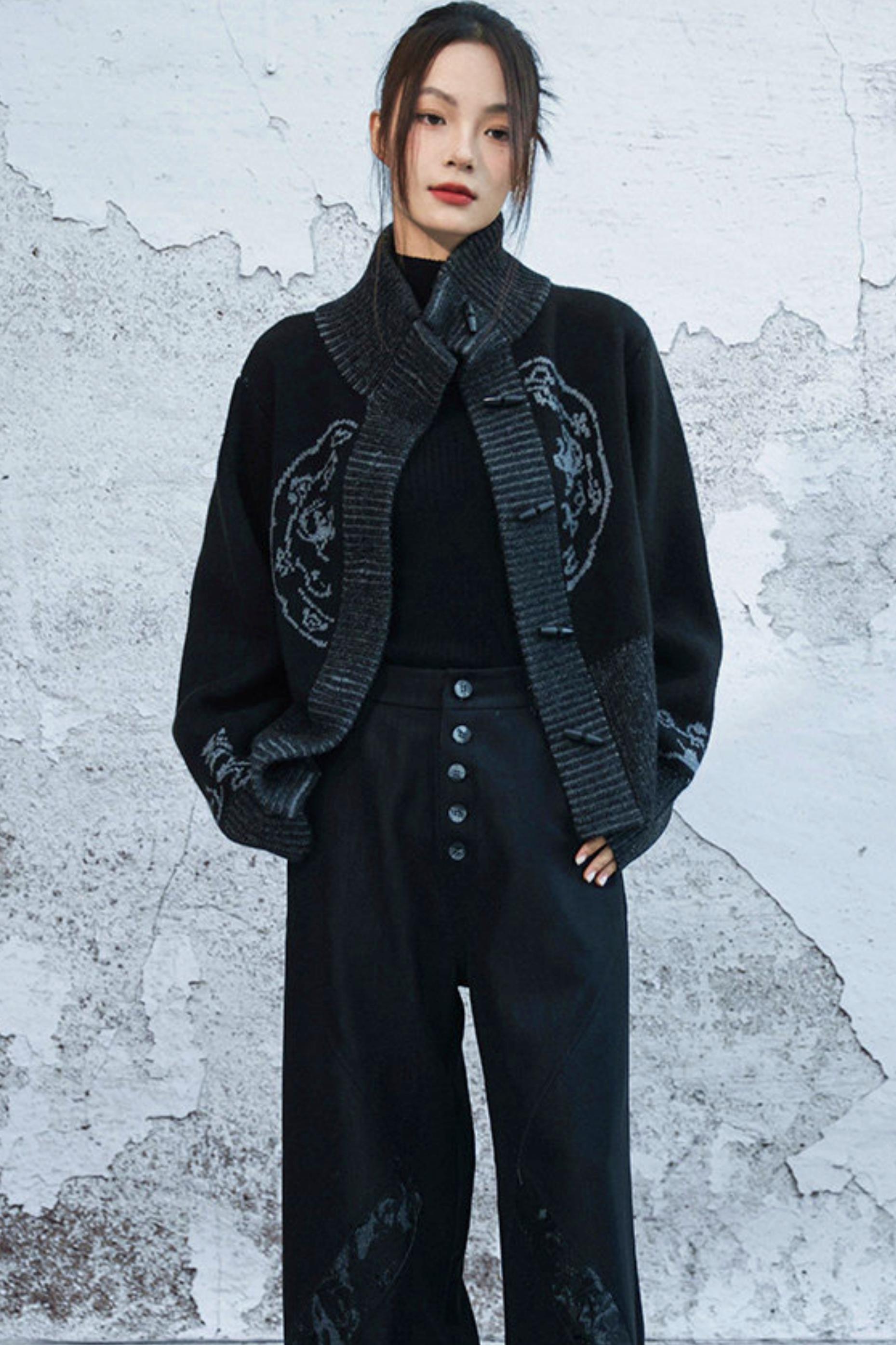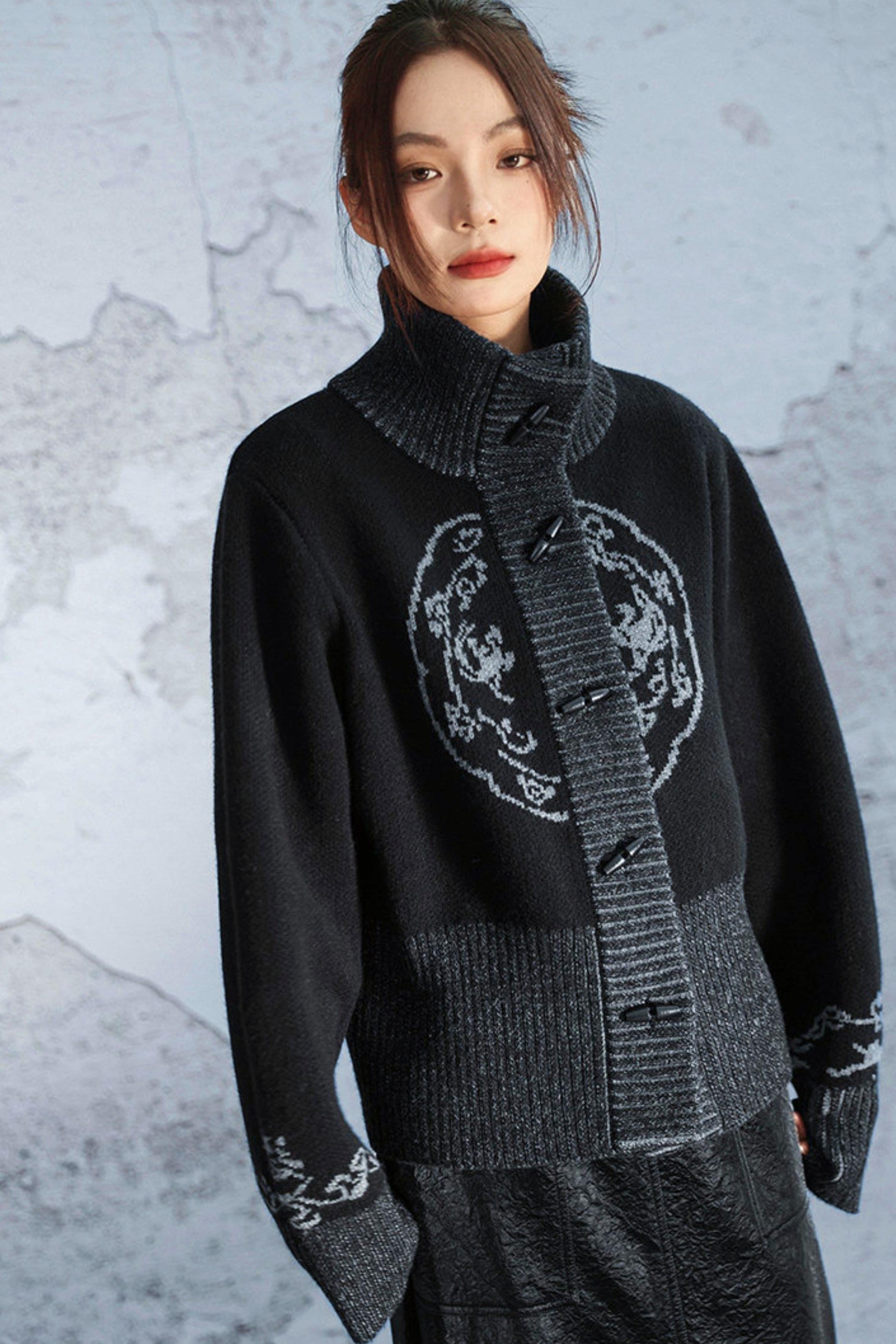 ハイネックジャカードダークニットジャケット