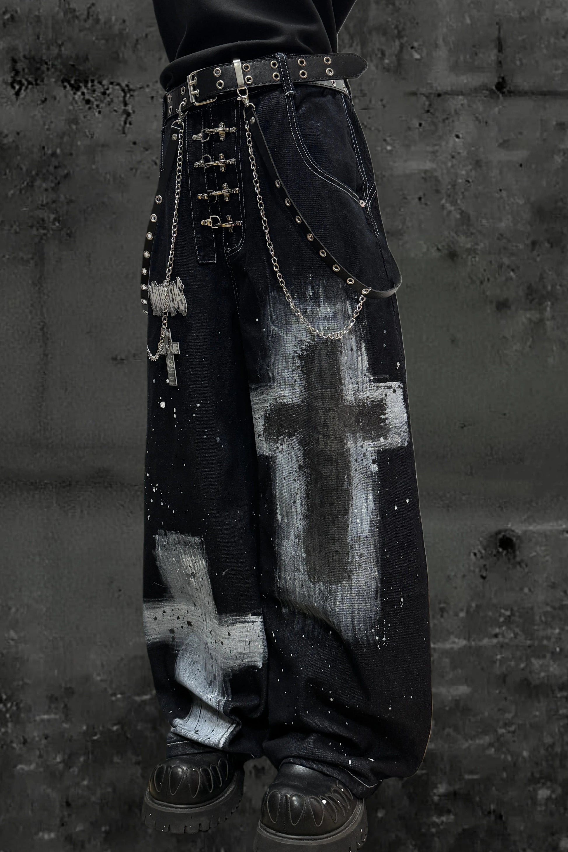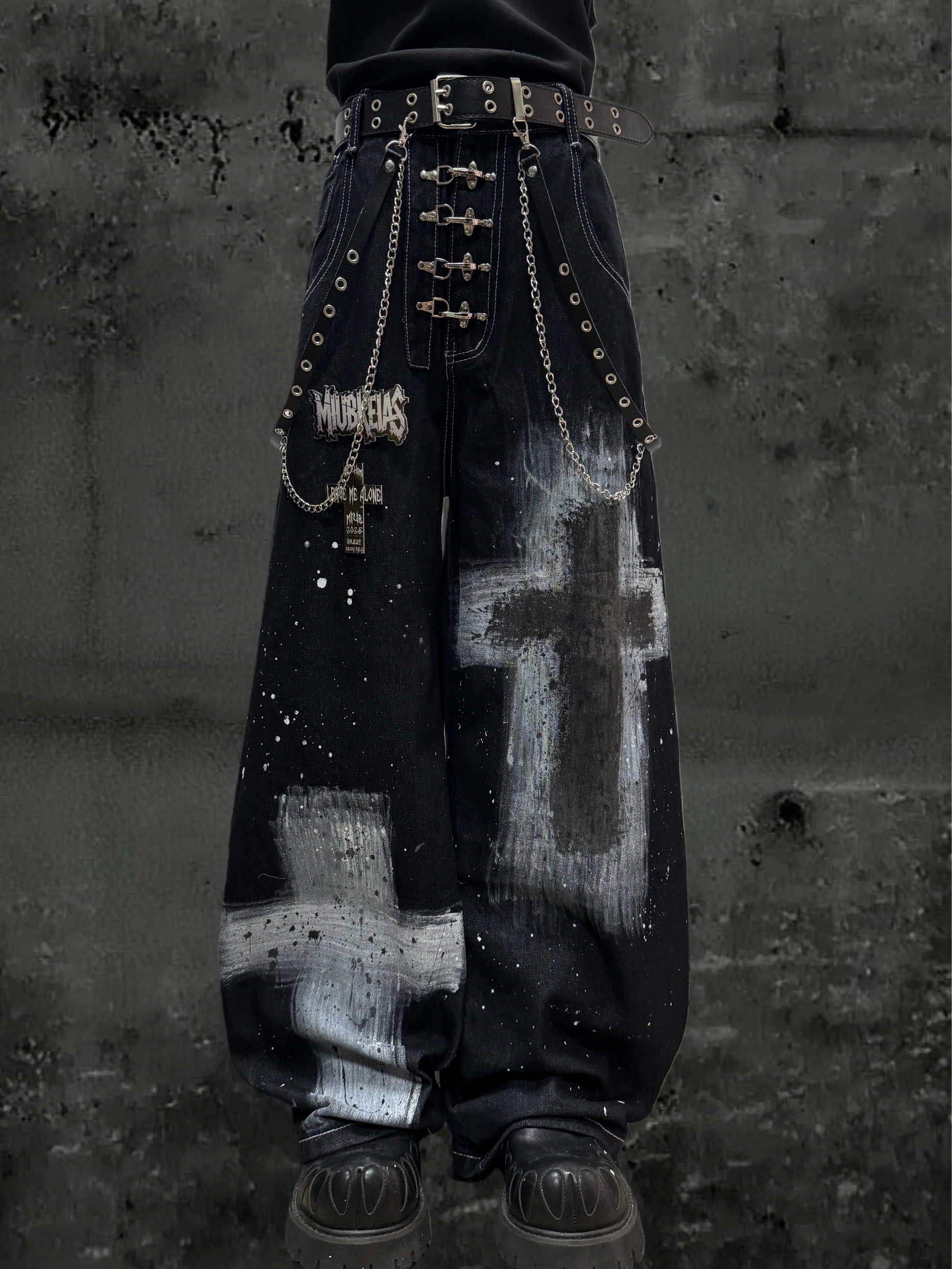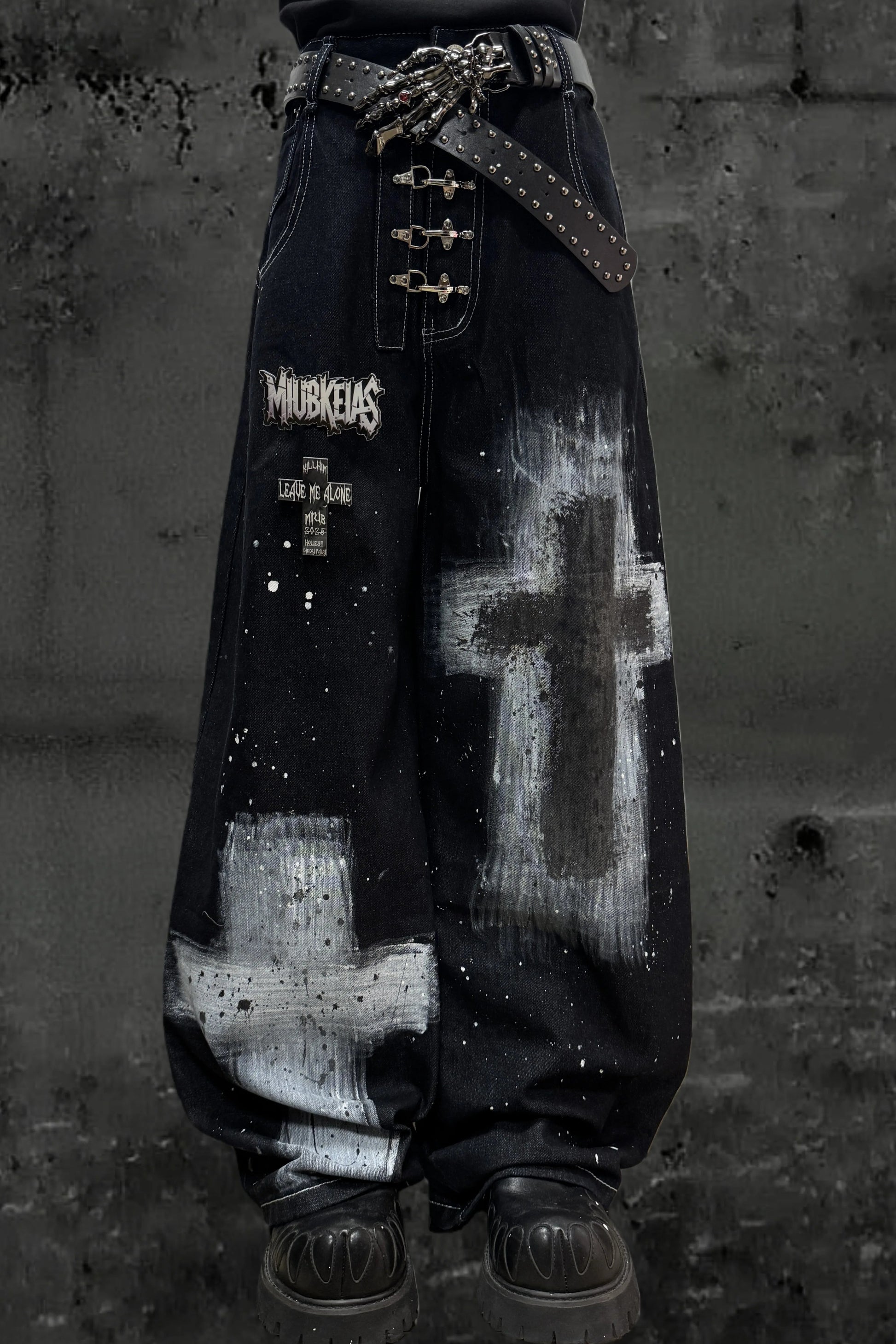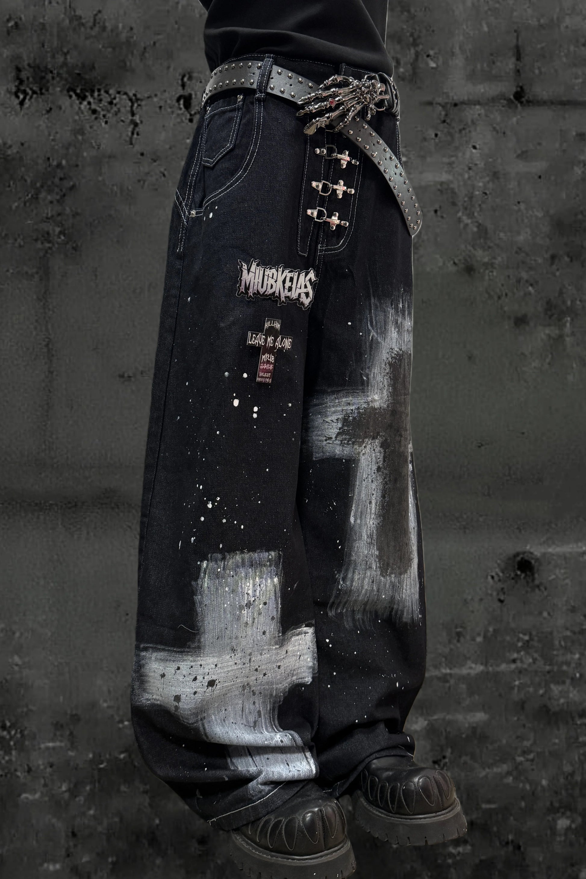 インクスプラッシュドグラフィティデニムパンツ+ベルト