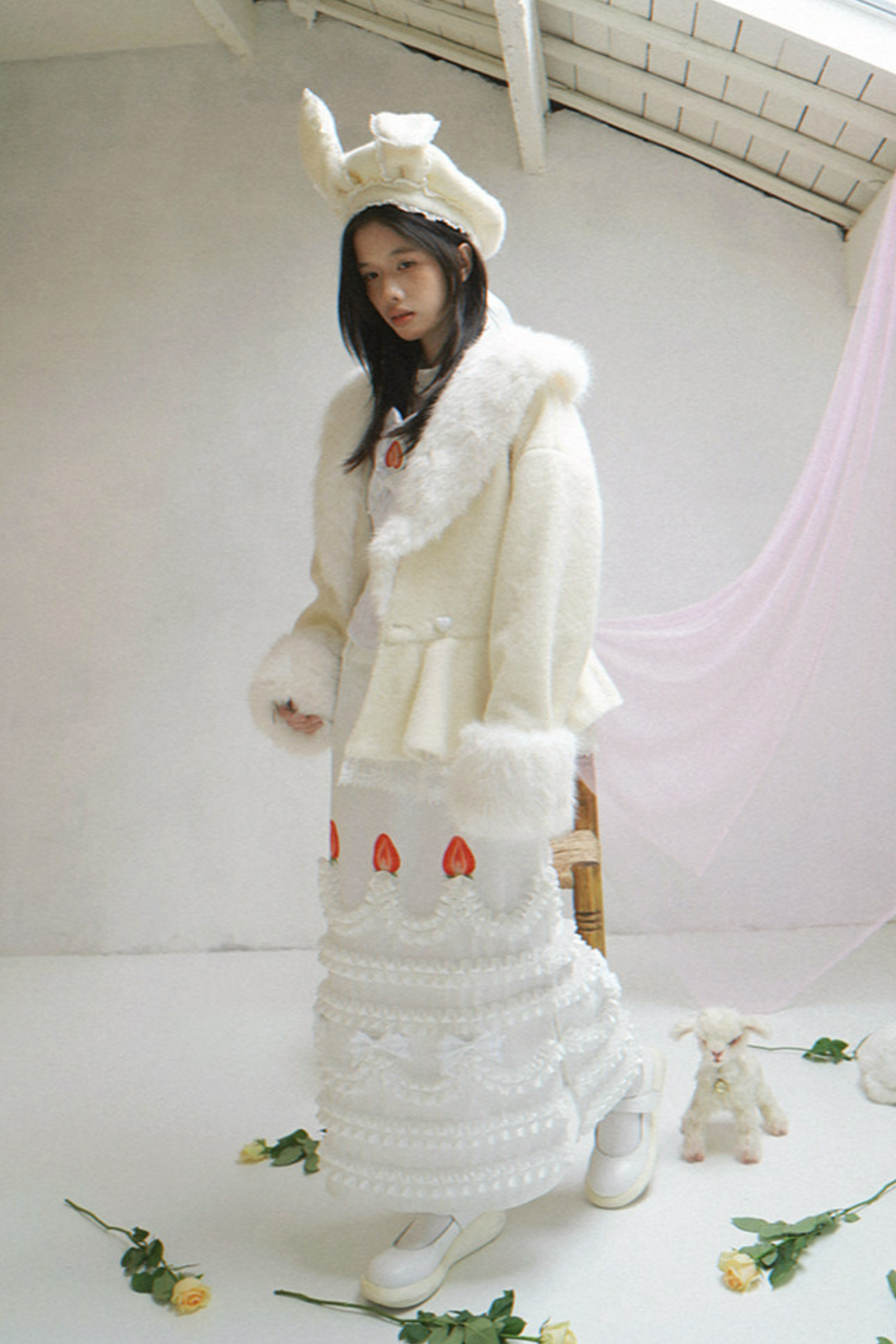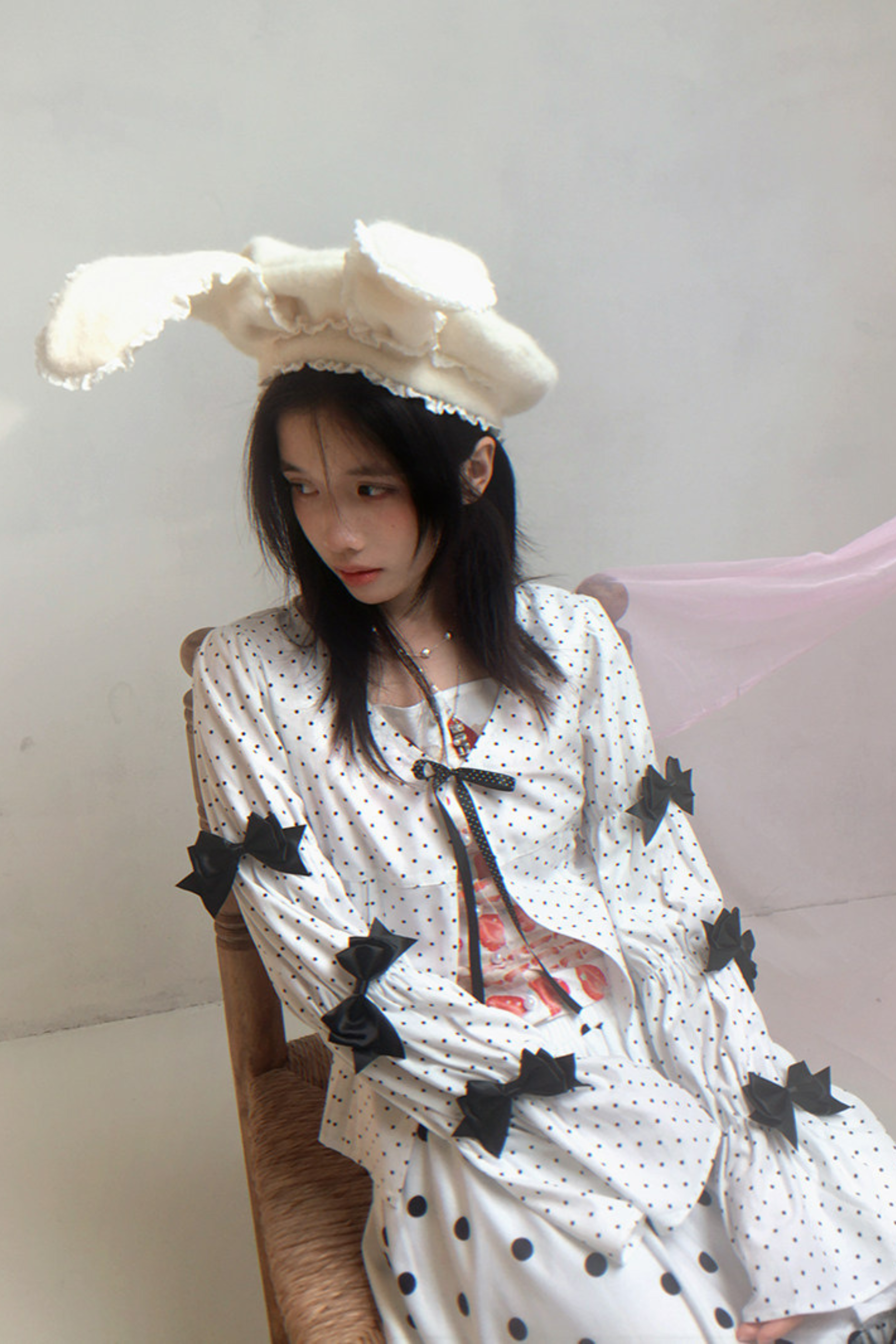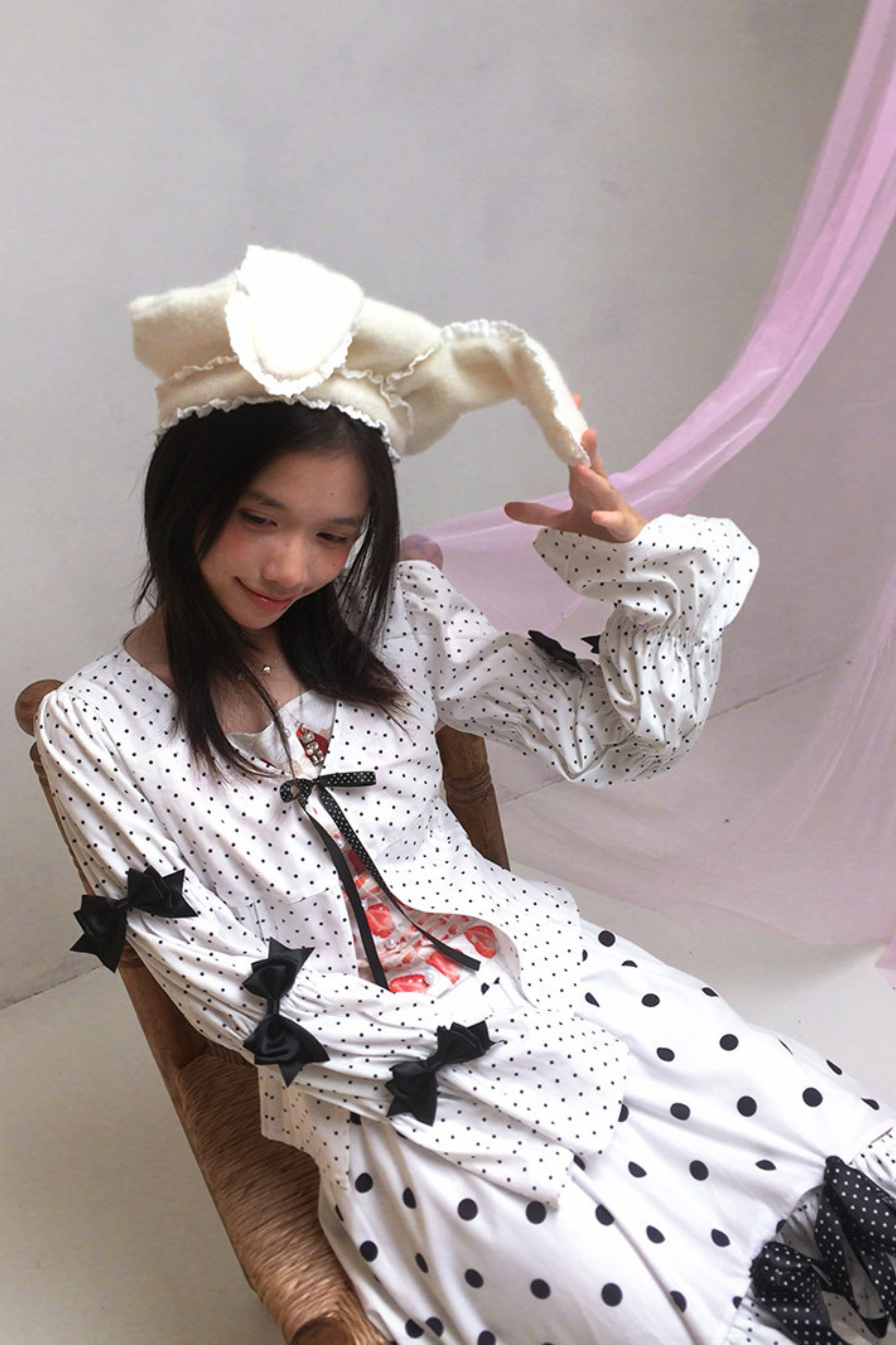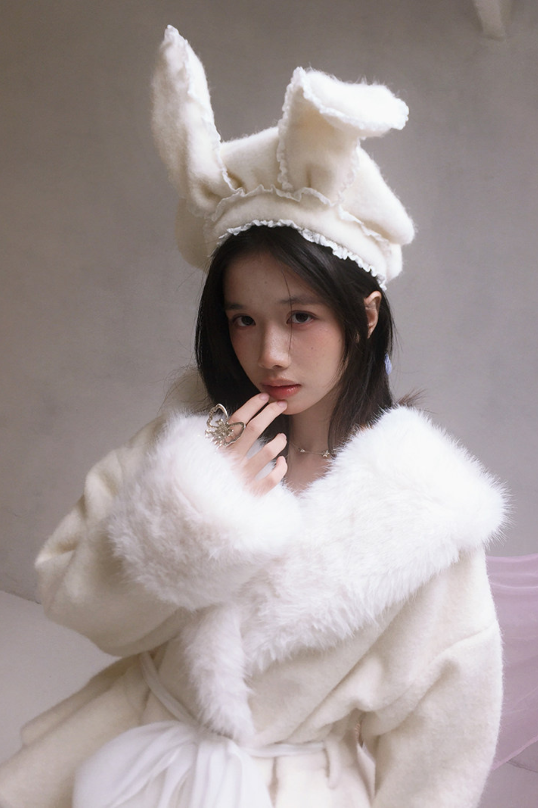 レースラビットイヤーベレー帽