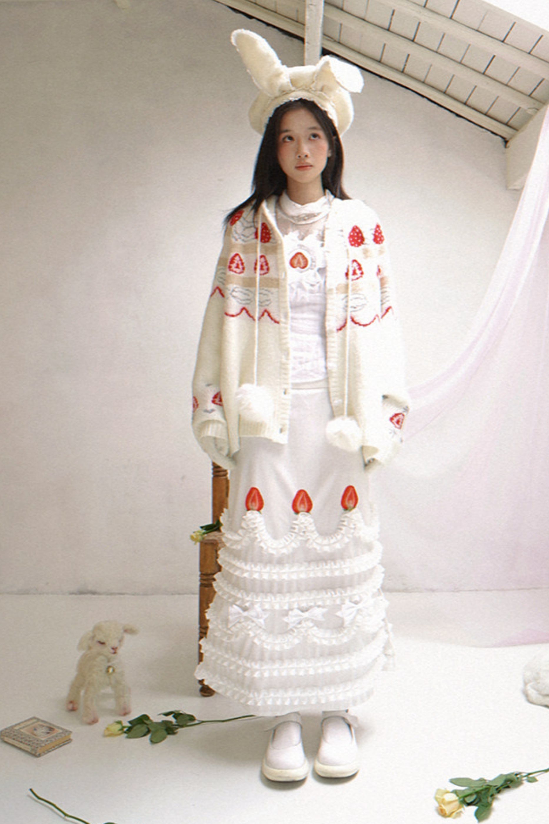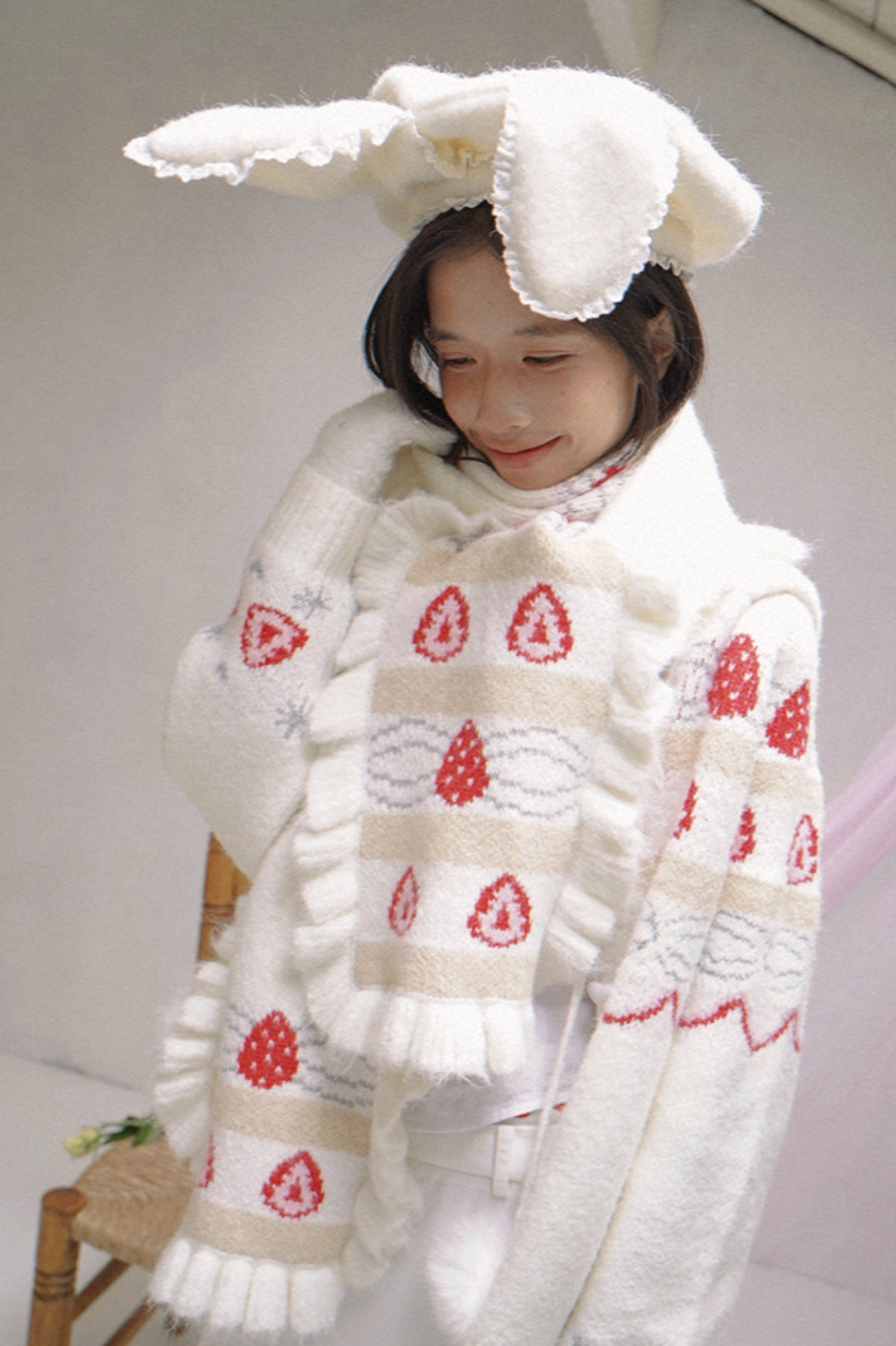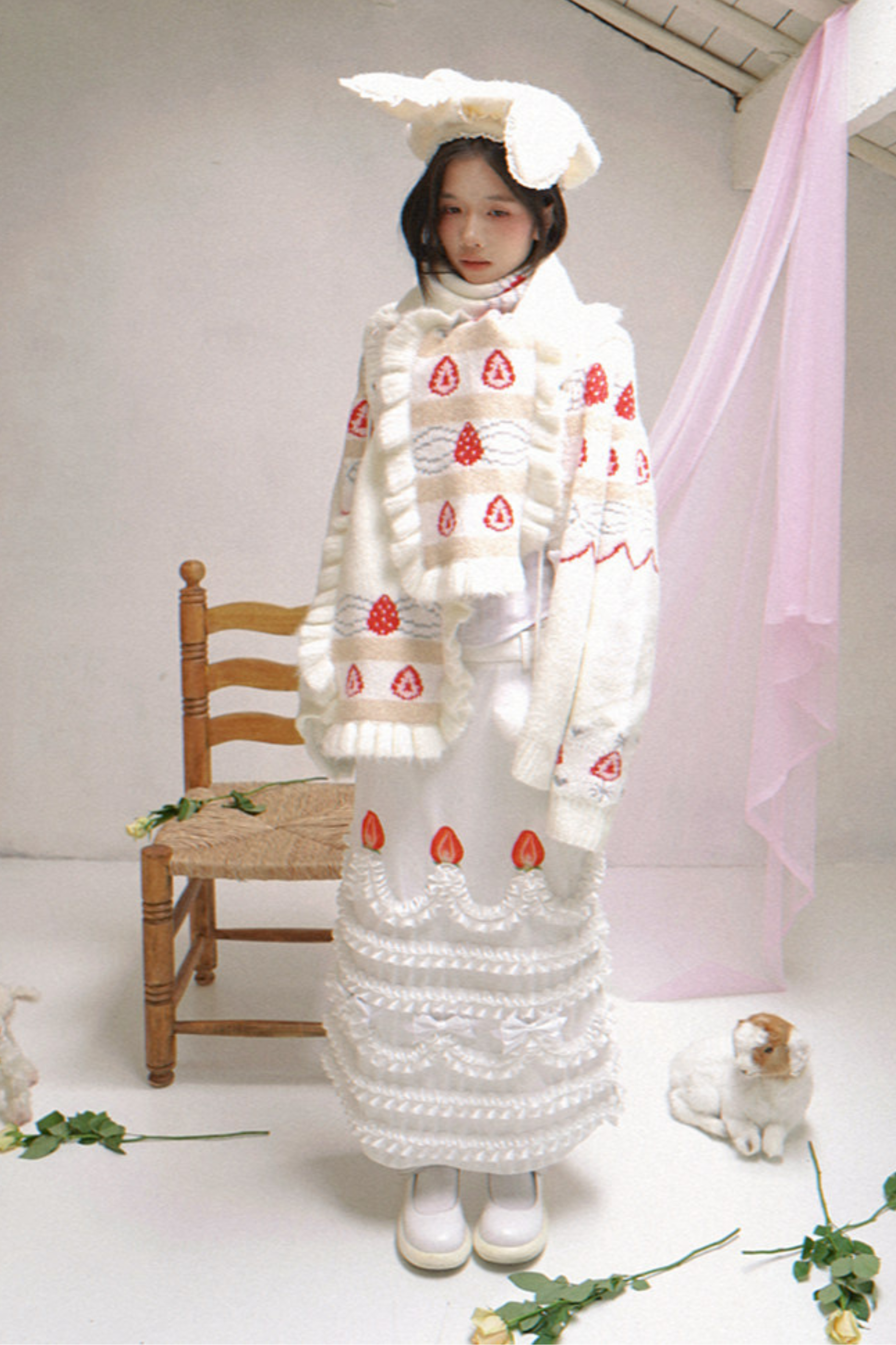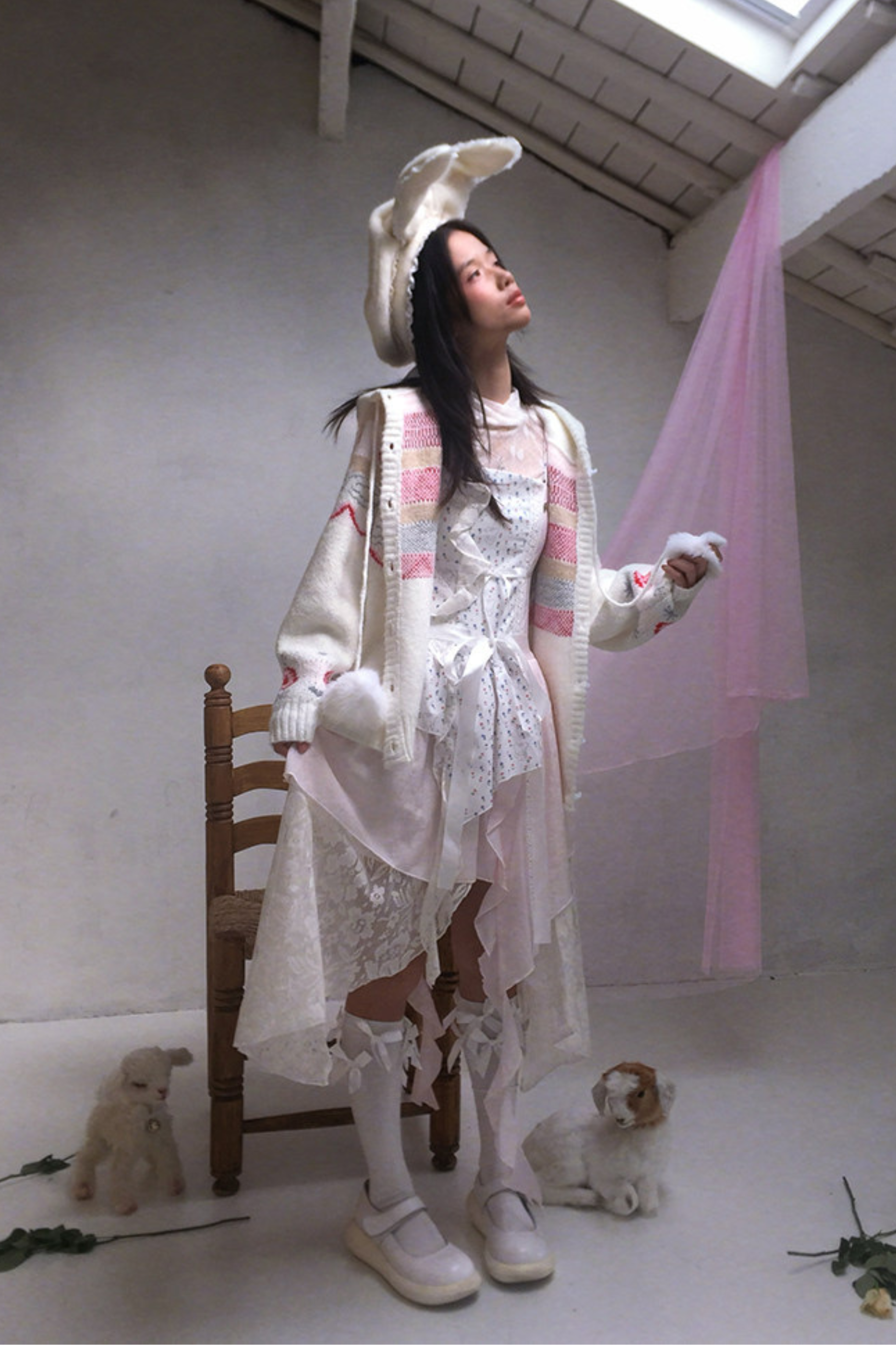 レースラビットイヤーベレー帽