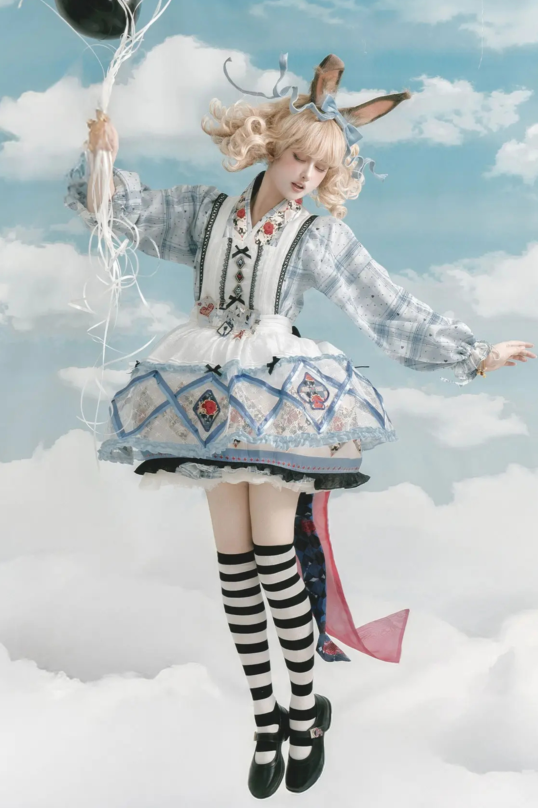 アリスワールドロリータドレス+エプロン+アクセサリー