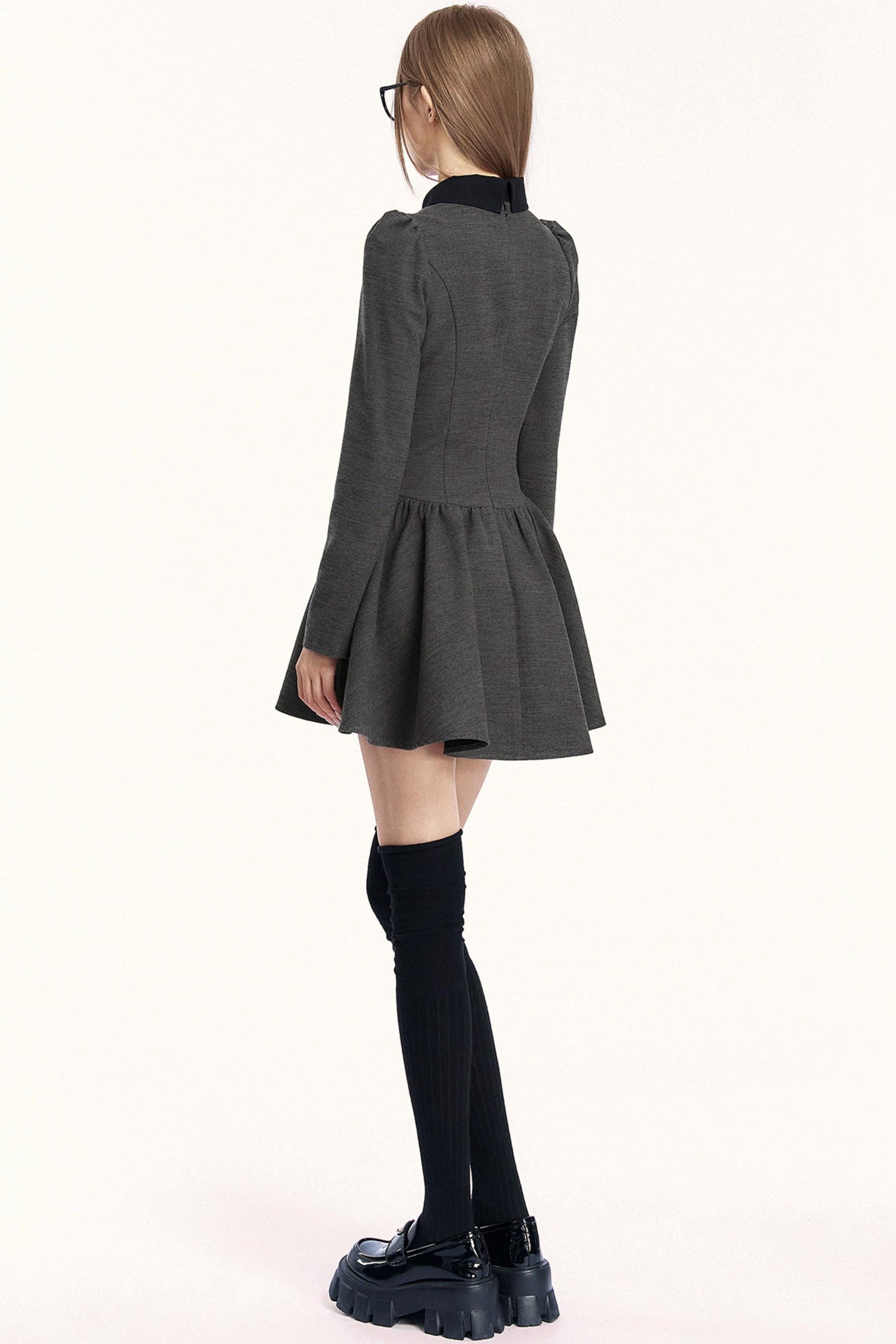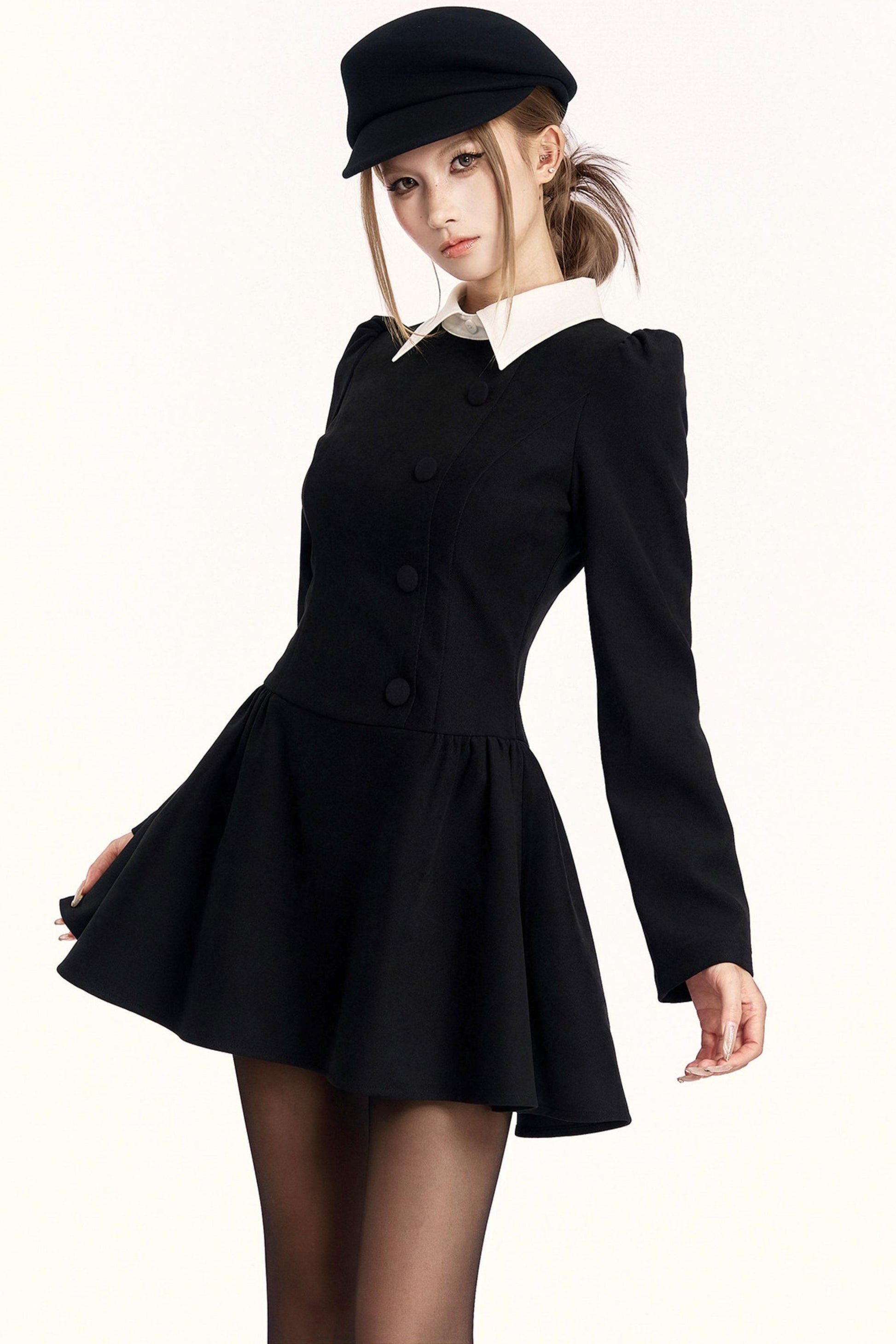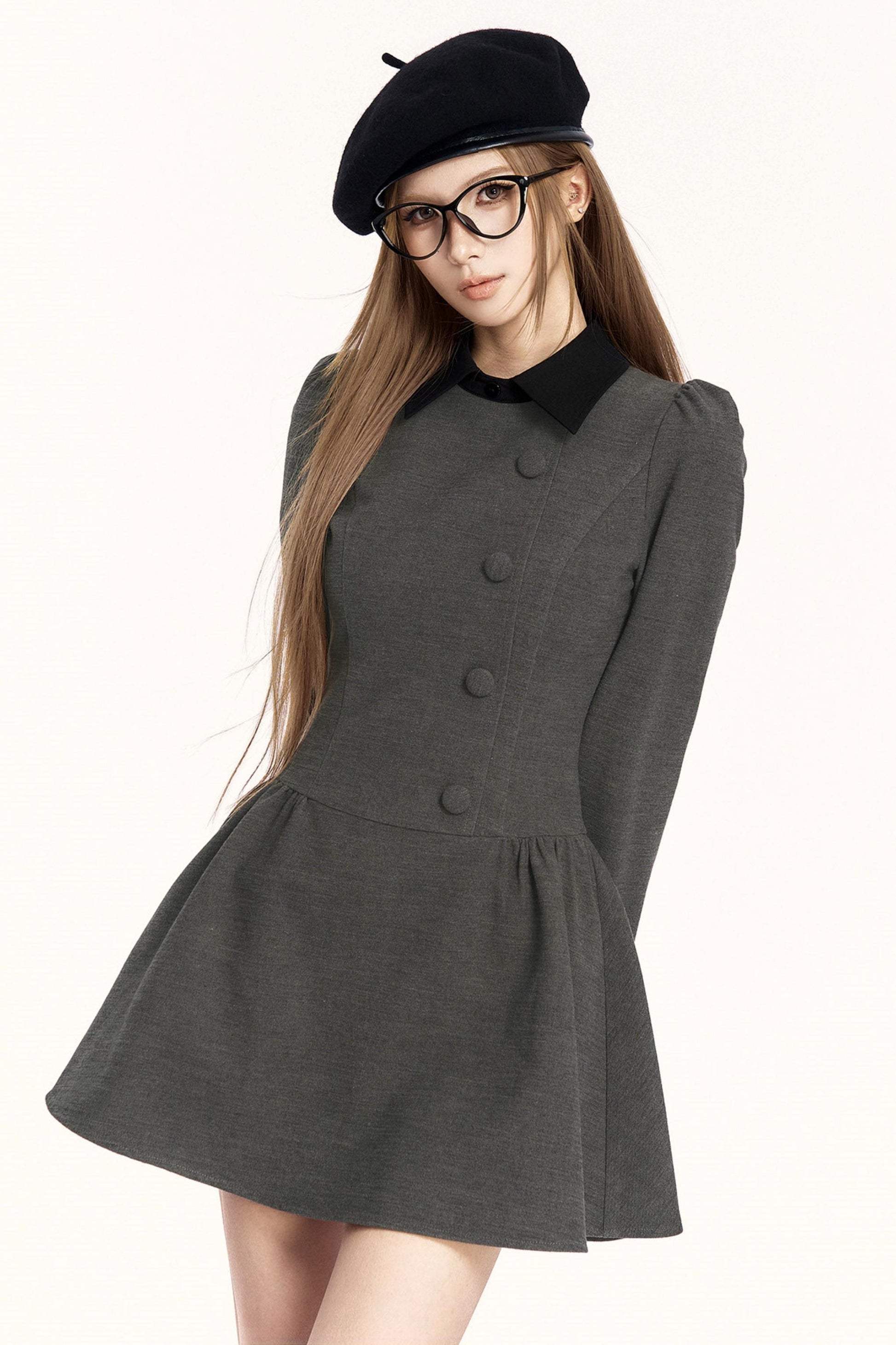 レトロガーリーカラーブロッキングドレス