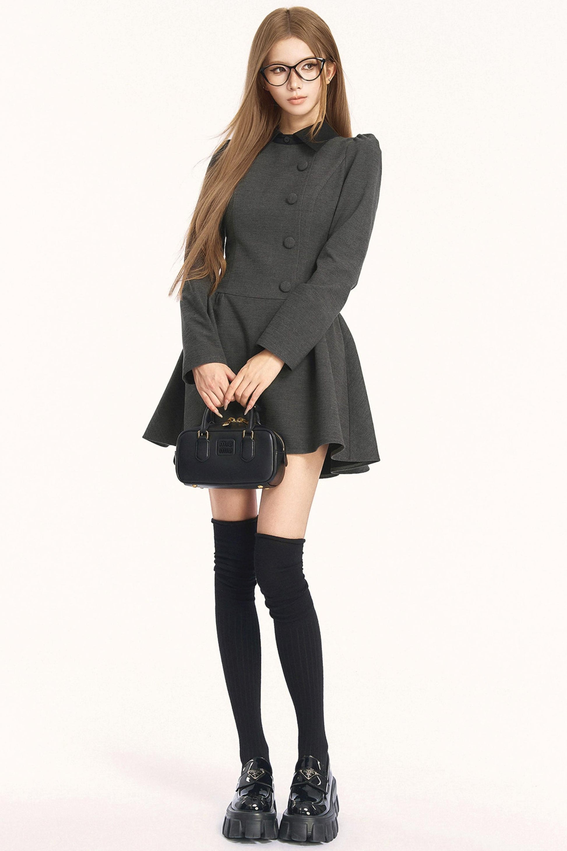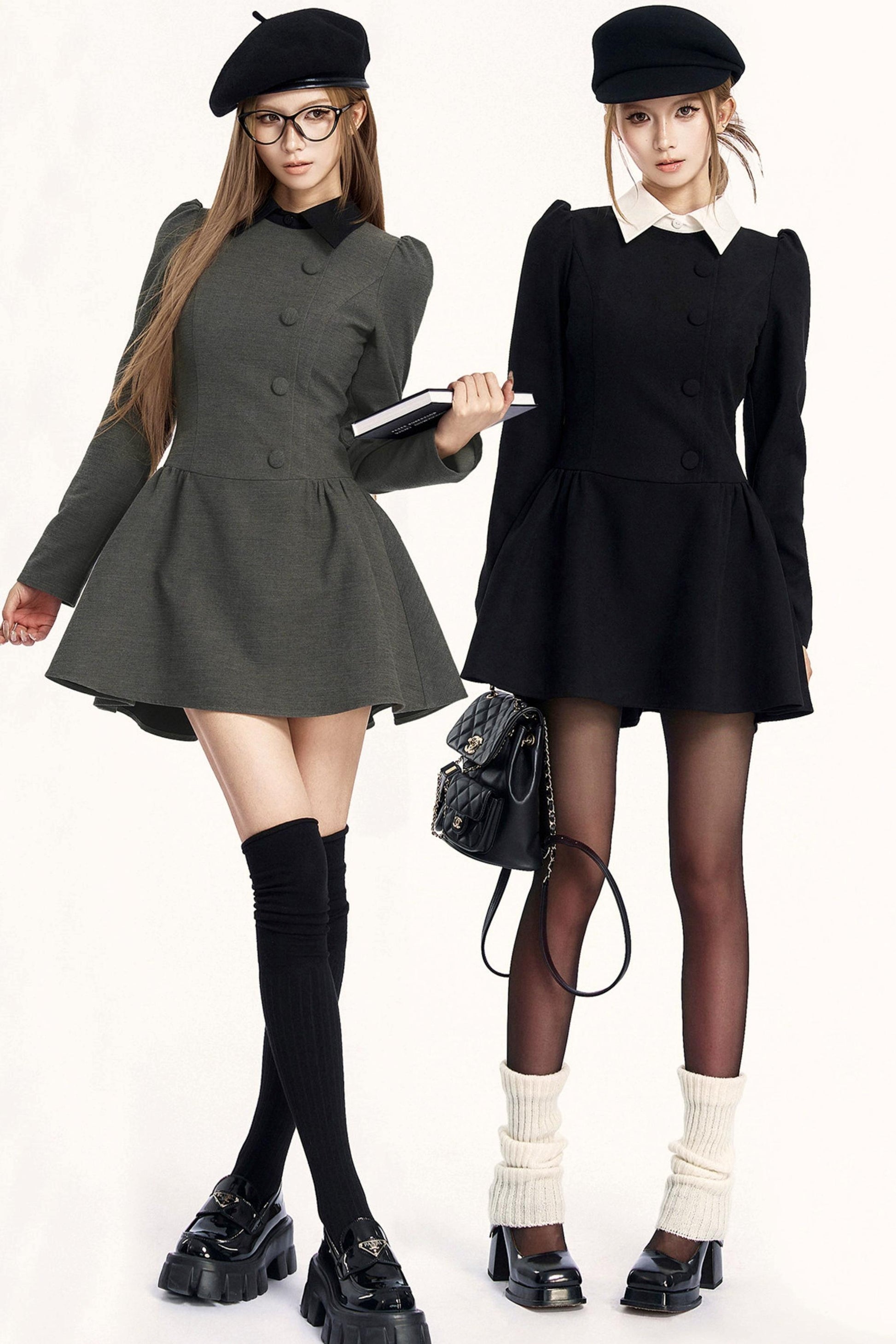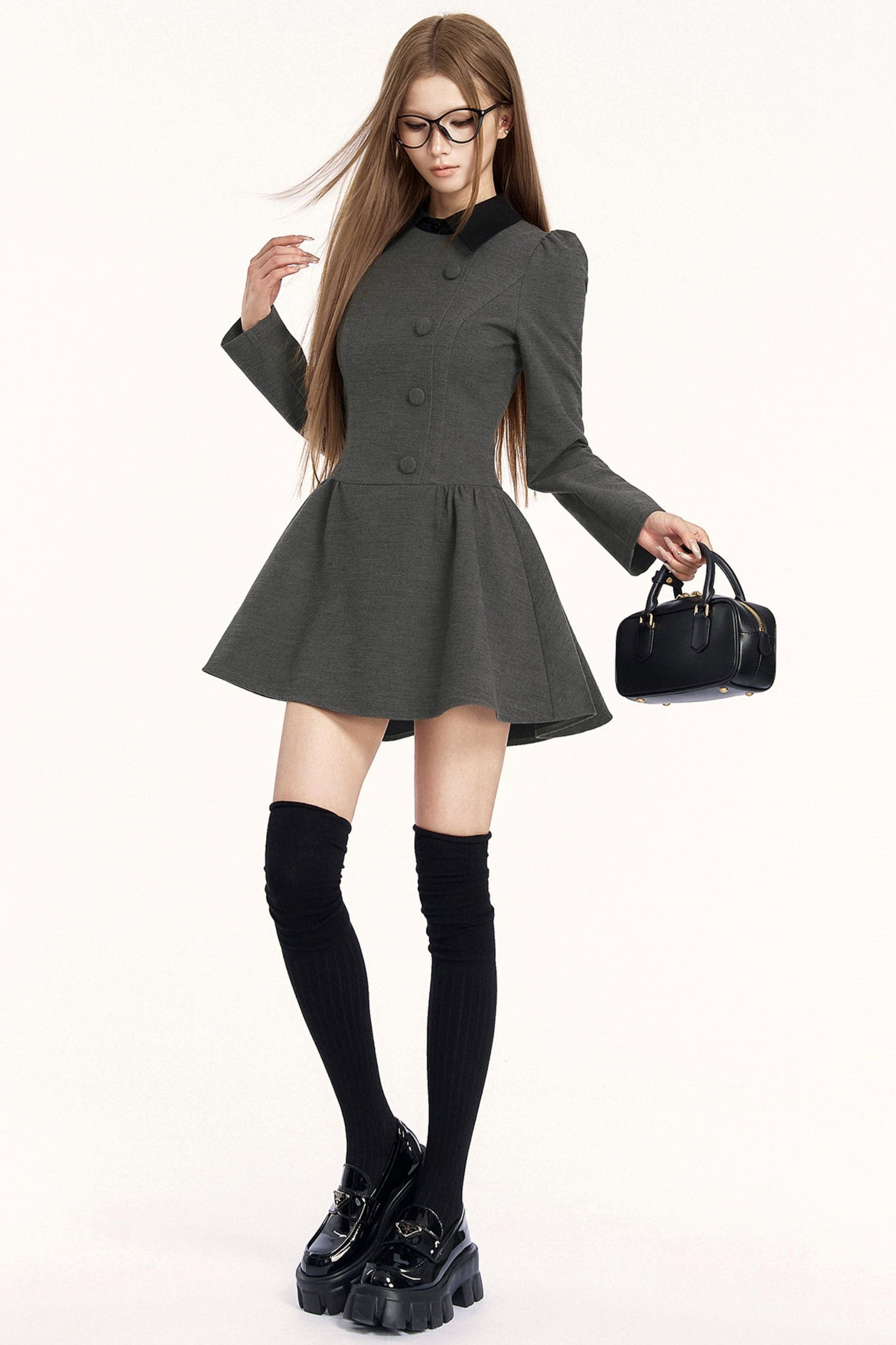 レトロガーリーカラーブロッキングドレス