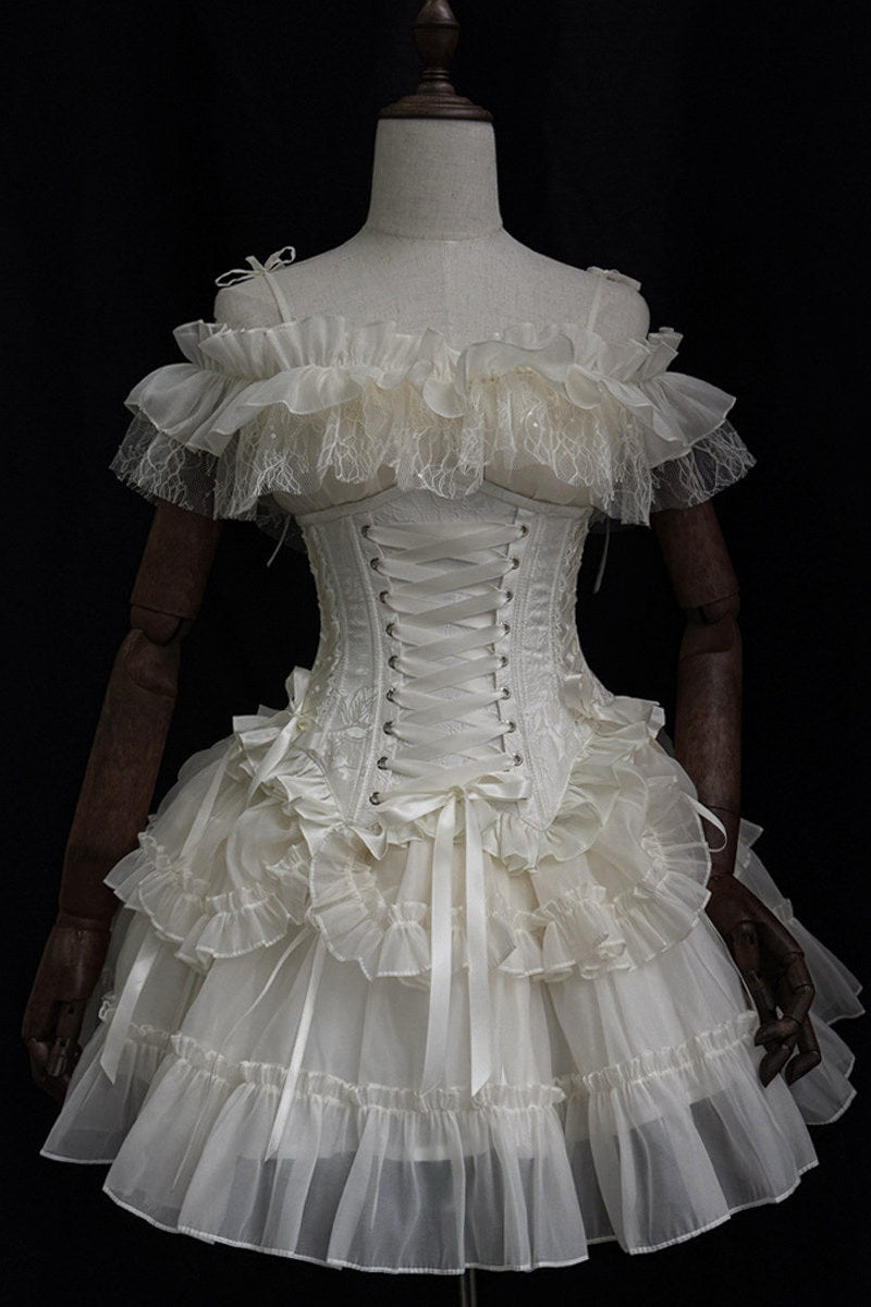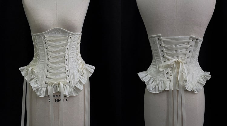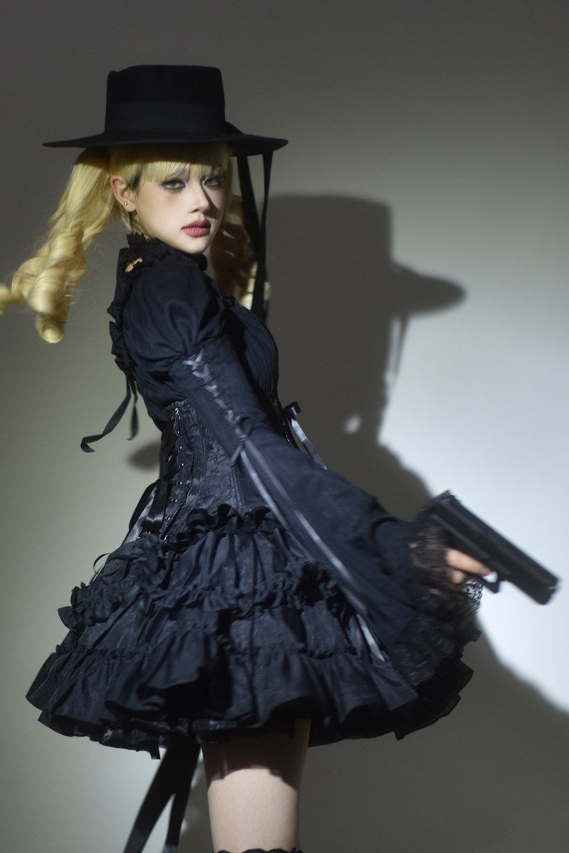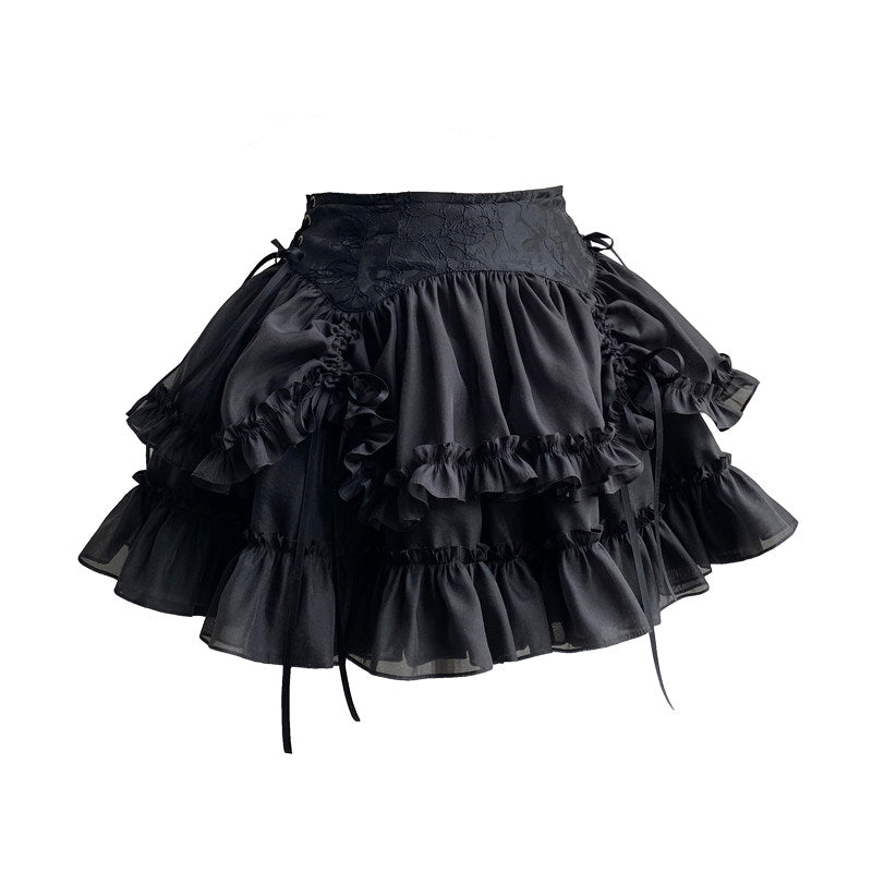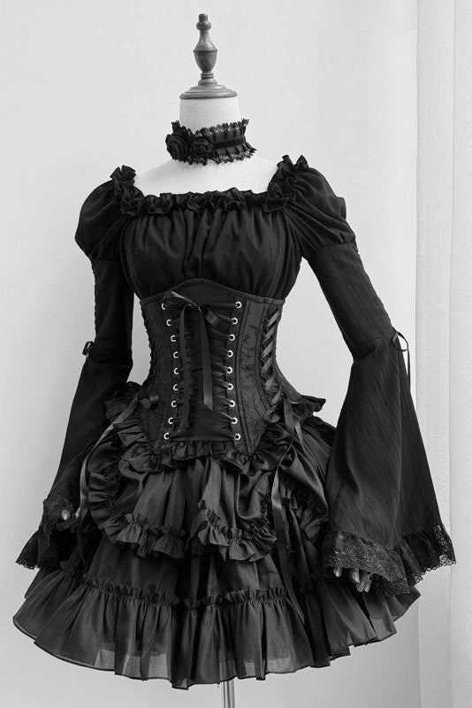 【1月29日予約締切】ブラックホワイトゴシックジャカードレースアップコルセット+ドロストフリルスカート