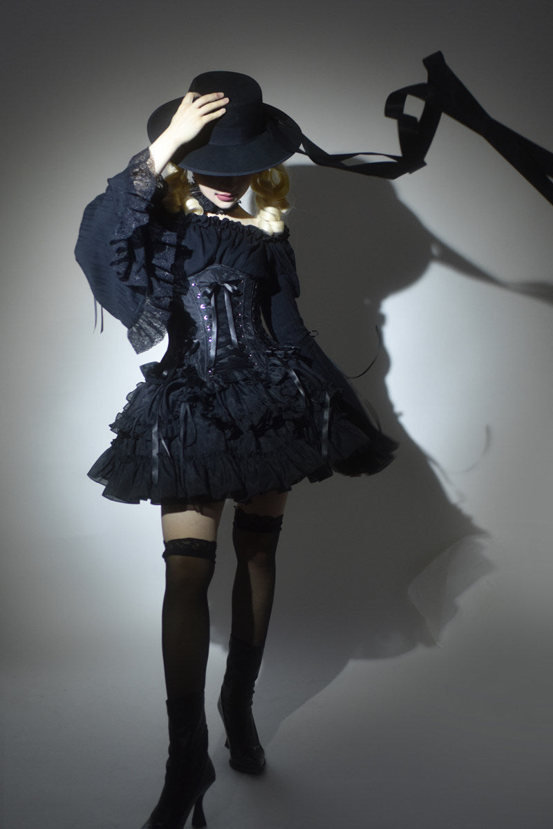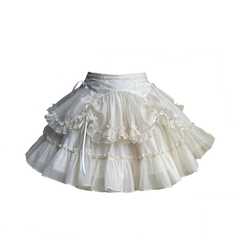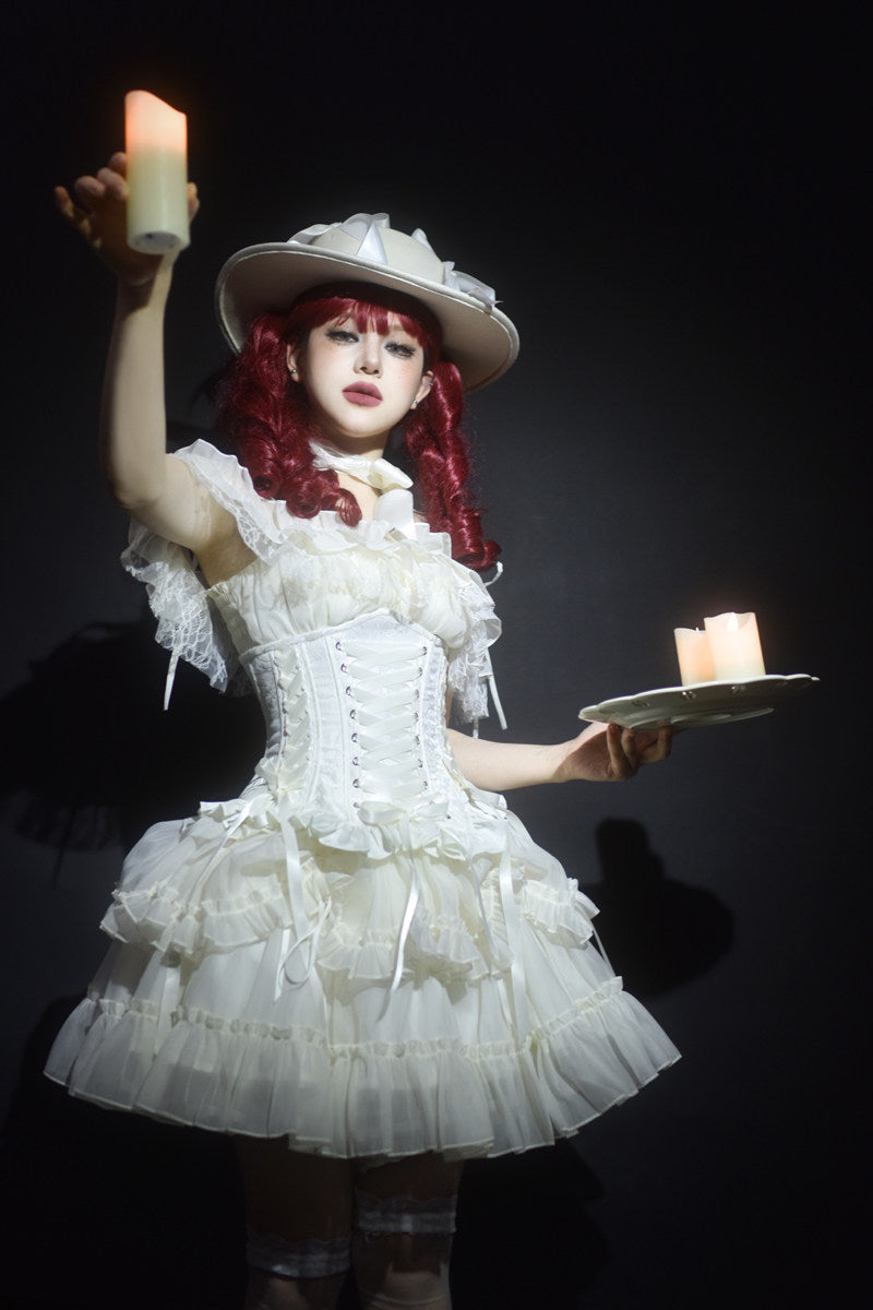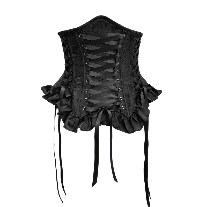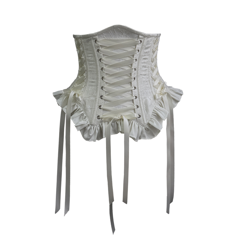 【1月29日予約締切】ブラックホワイトゴシックジャカードレースアップコルセット+ドロストフリルスカート