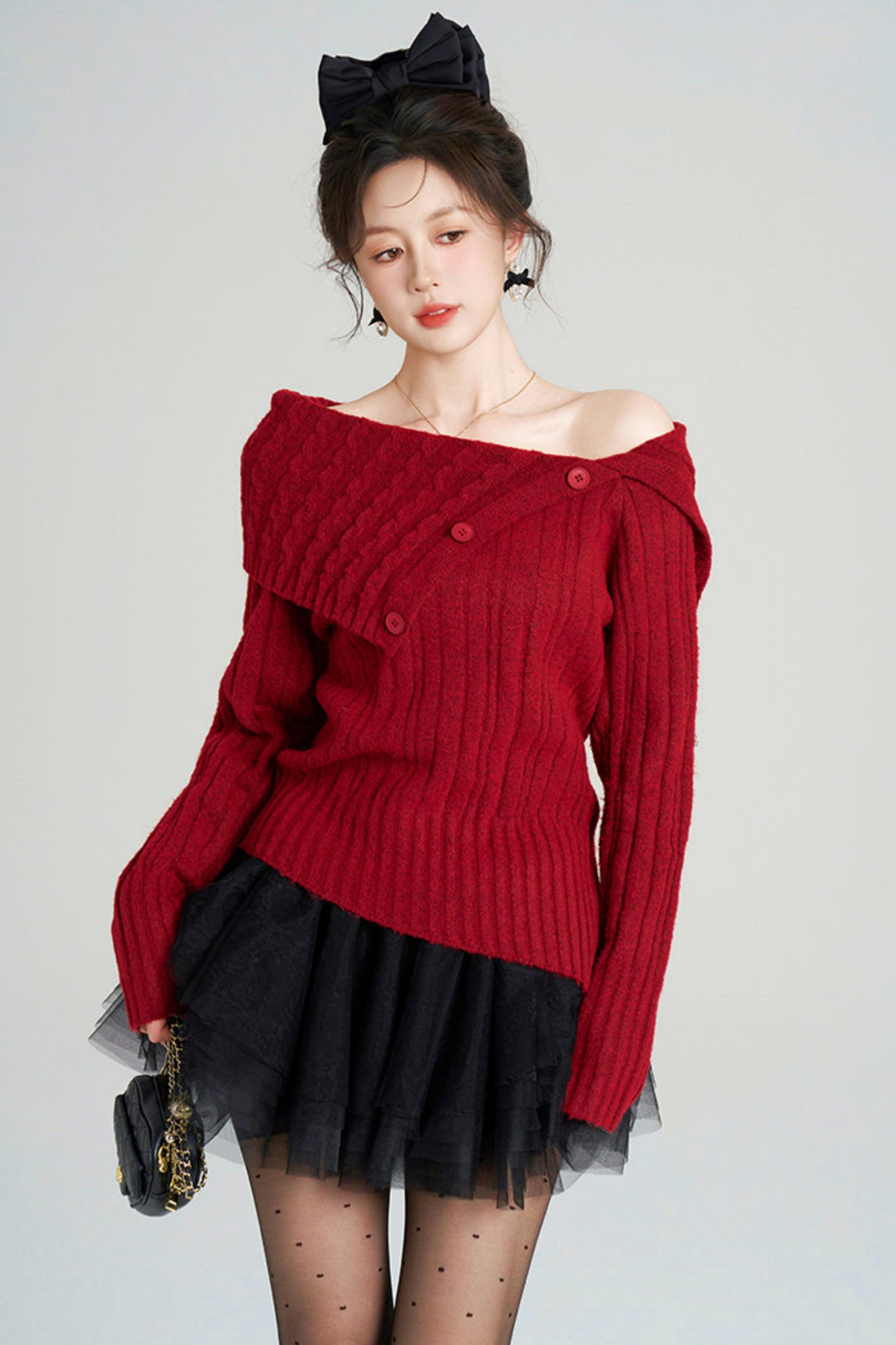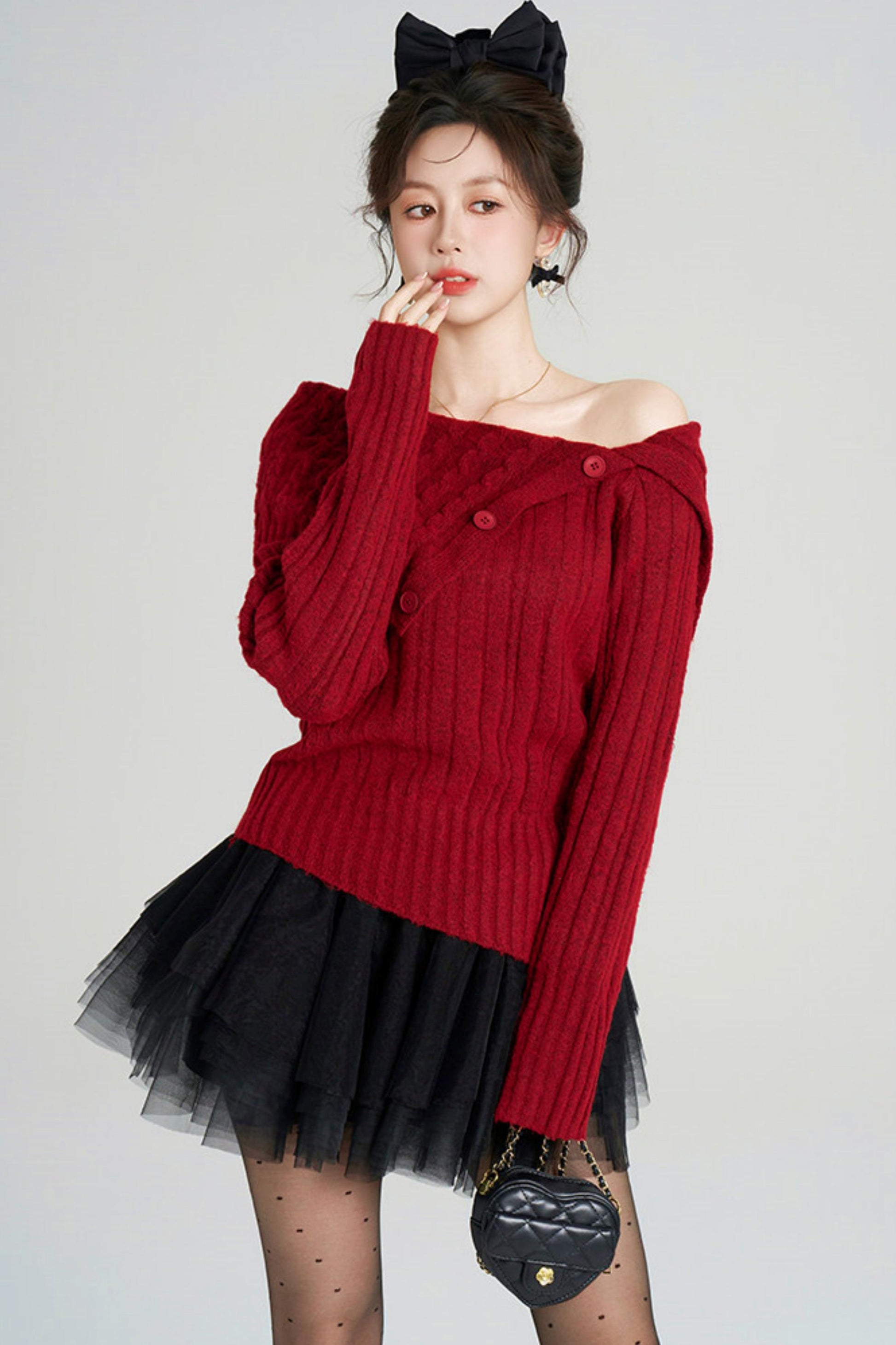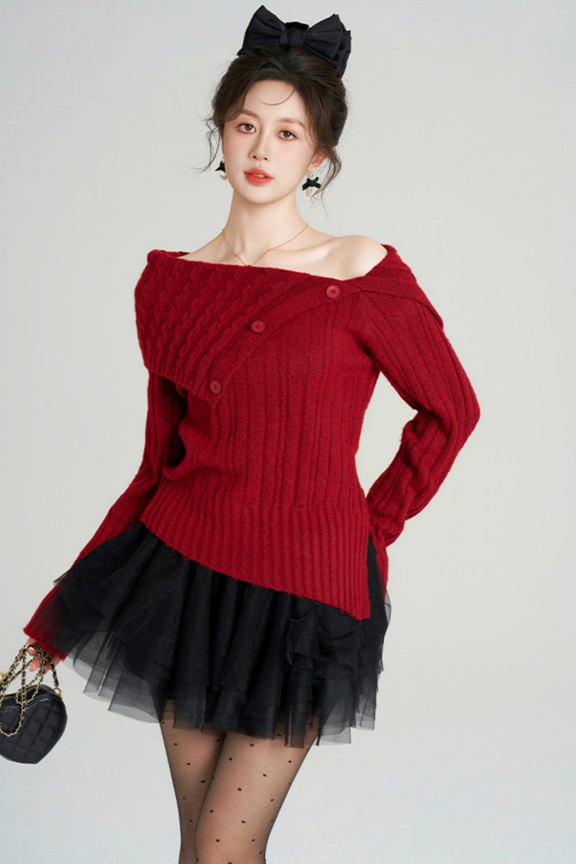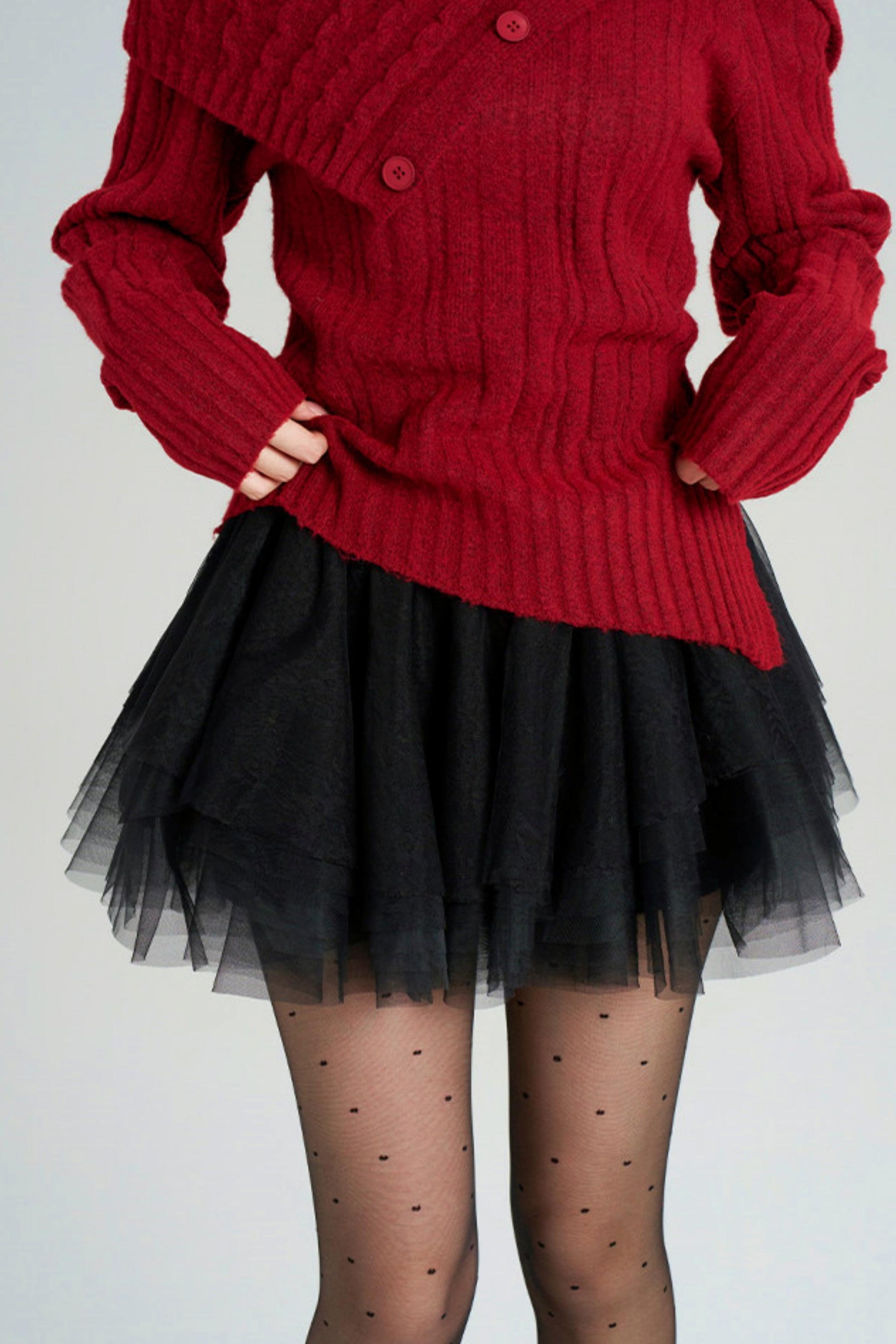 ワンショルダーフレンチタイトトップス+チュールスカート