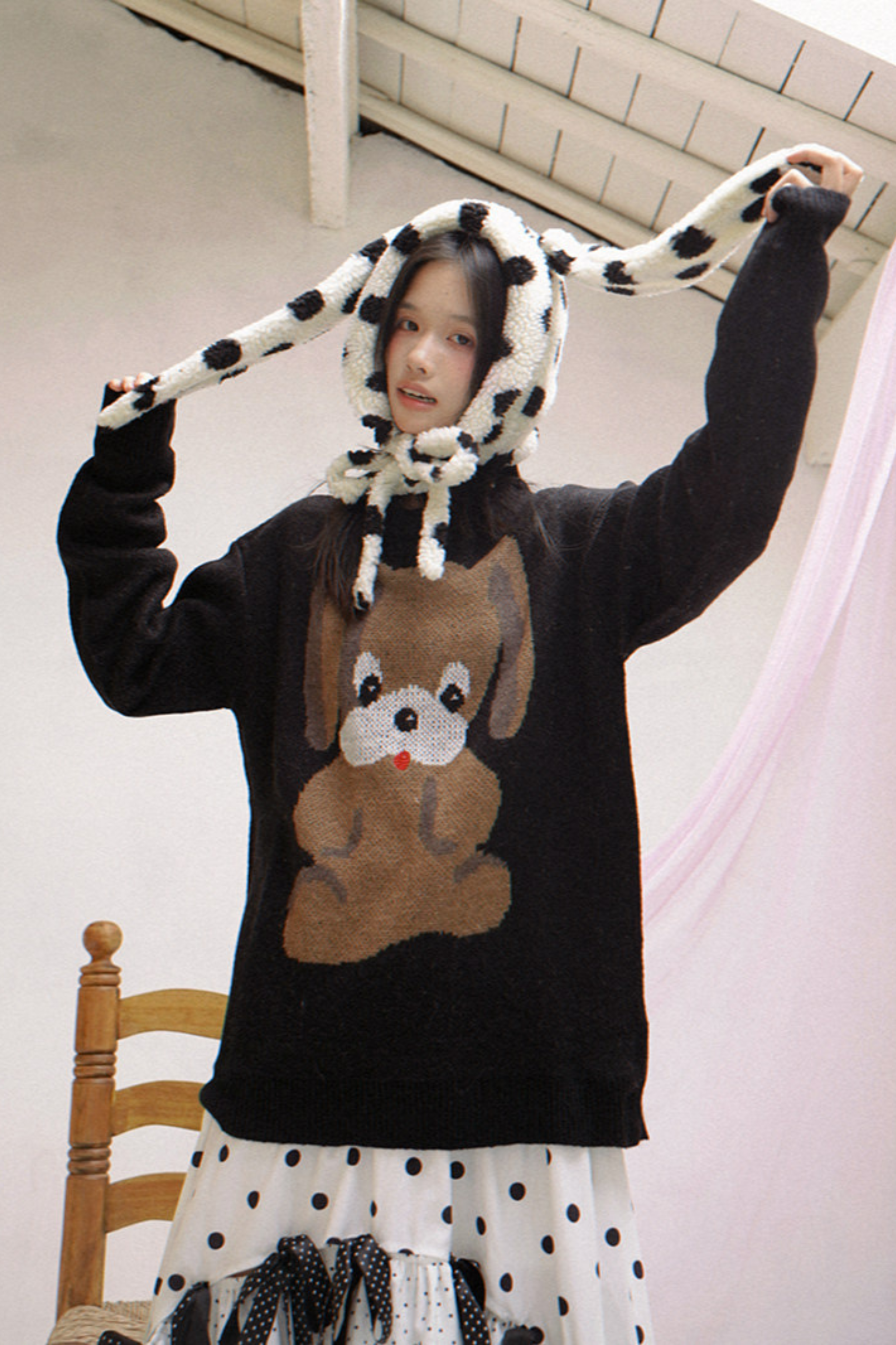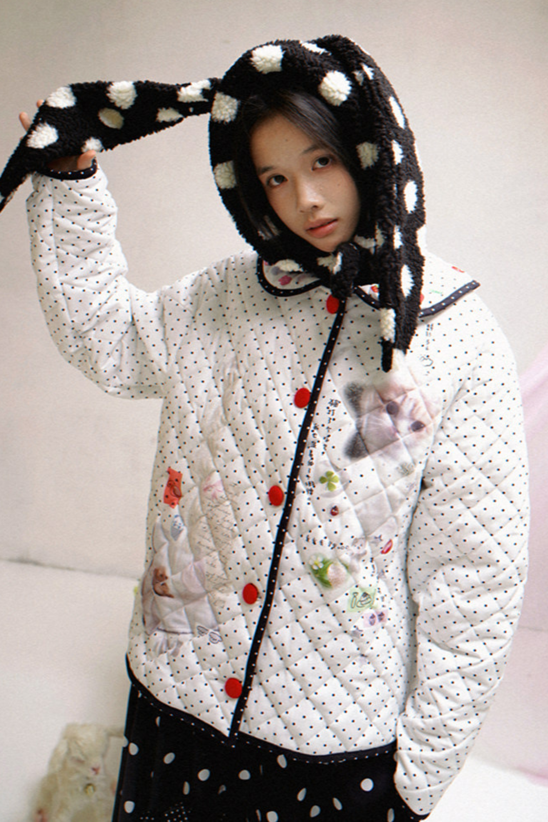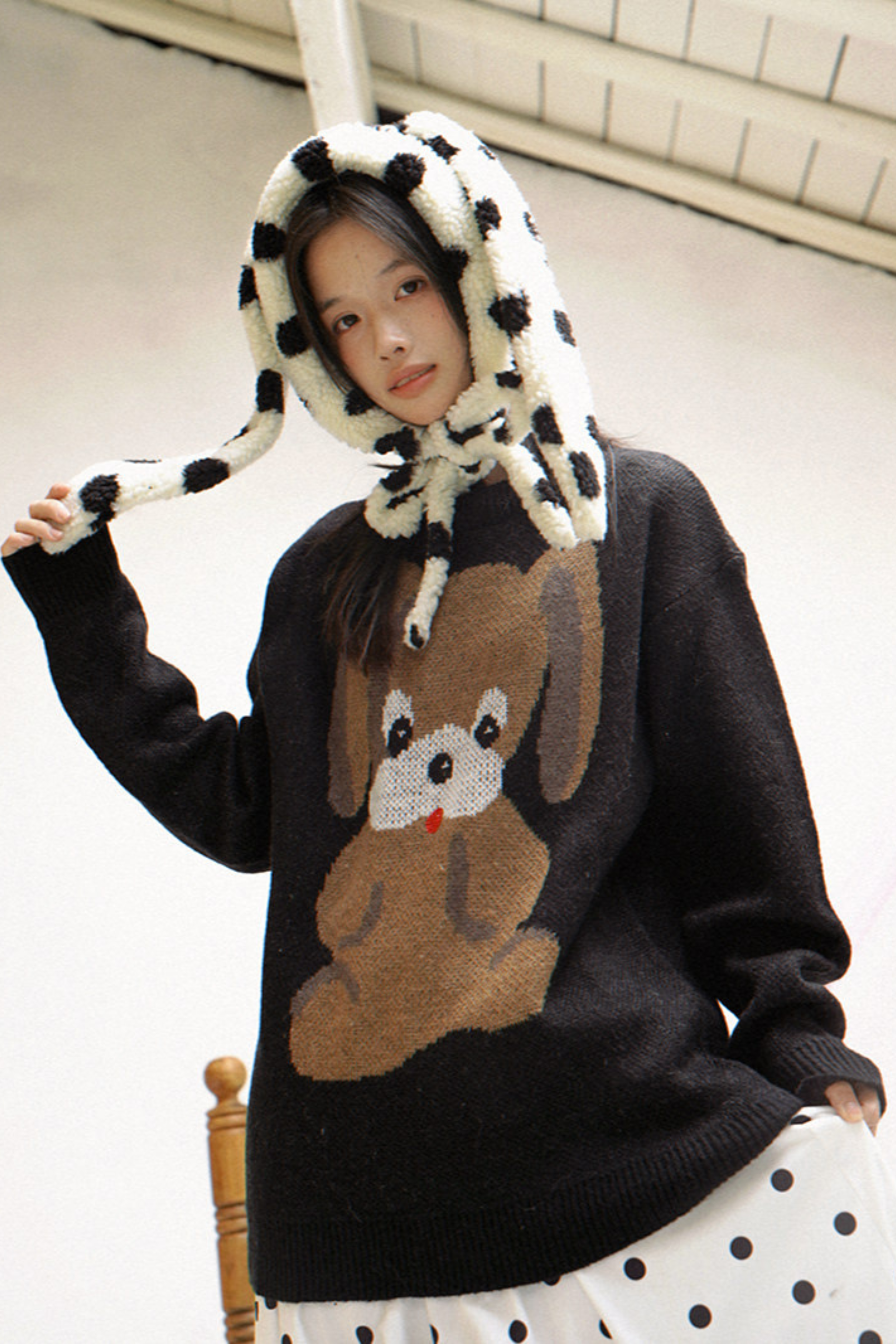ポルカドットラムウールハット