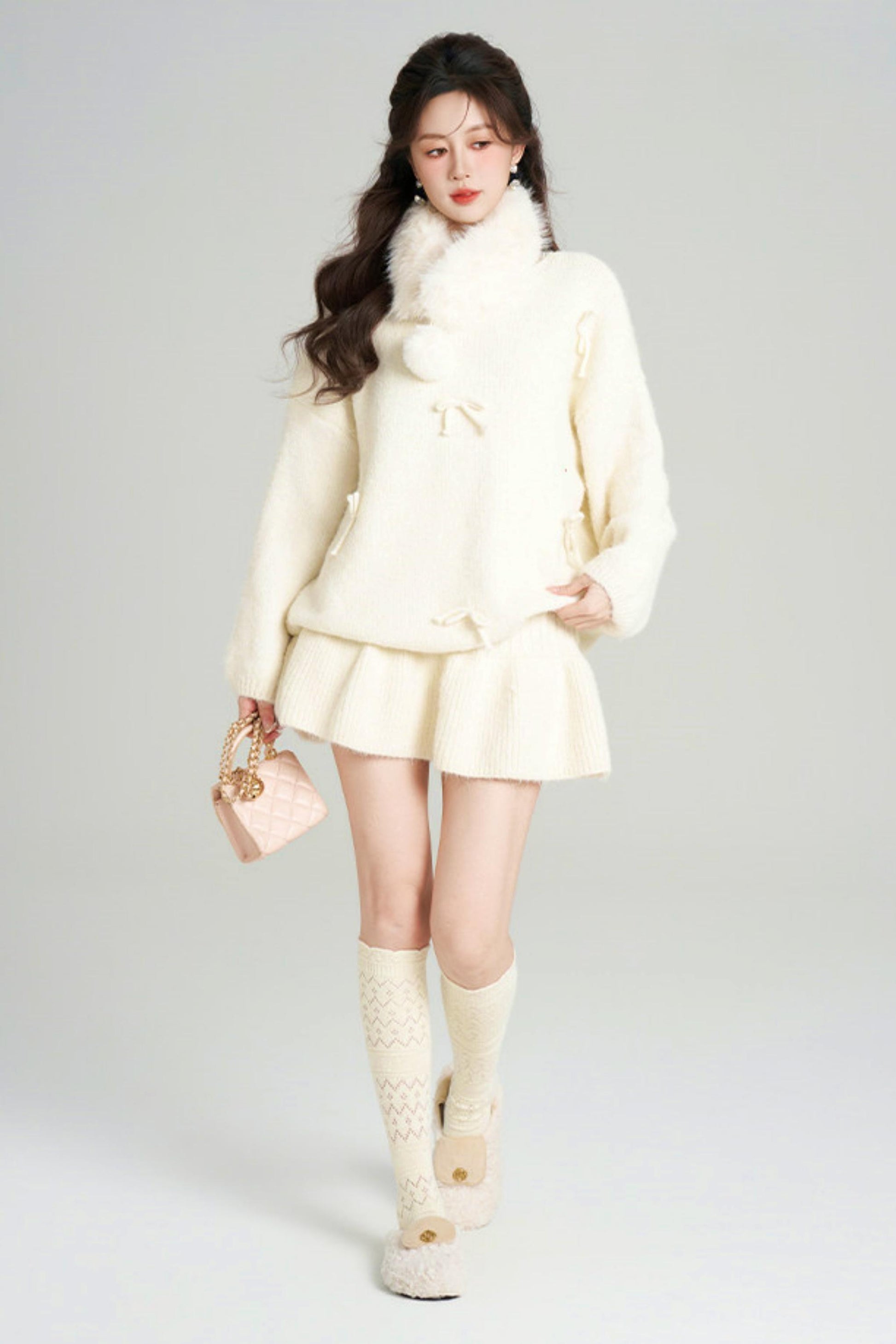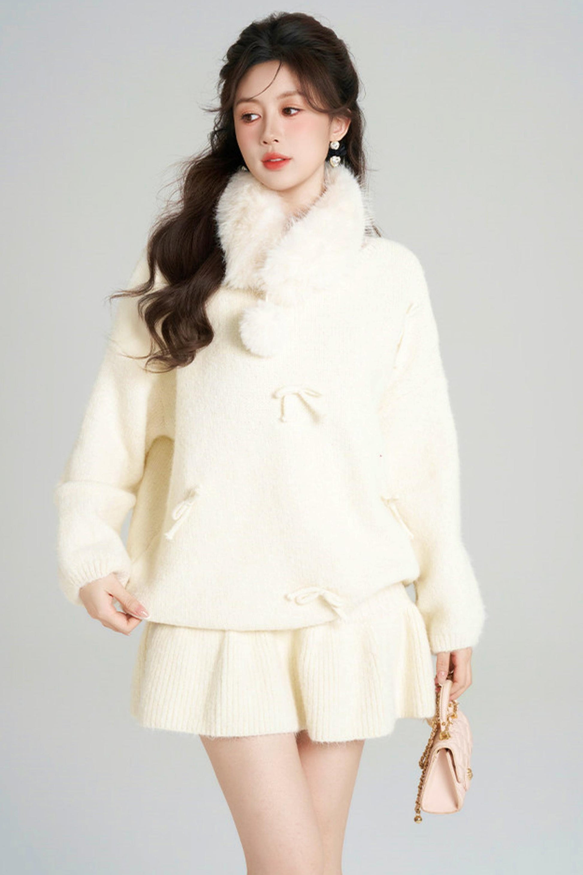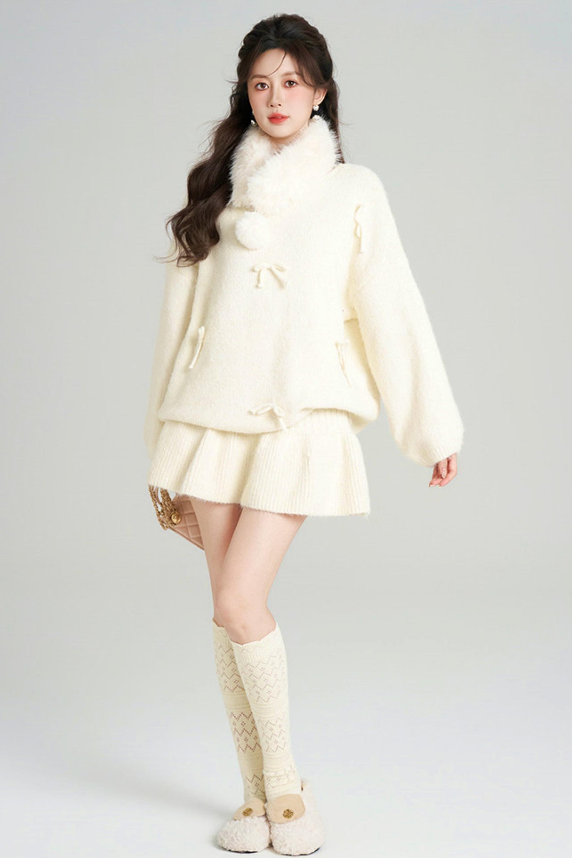 リボンルーズニット+フレアスカート