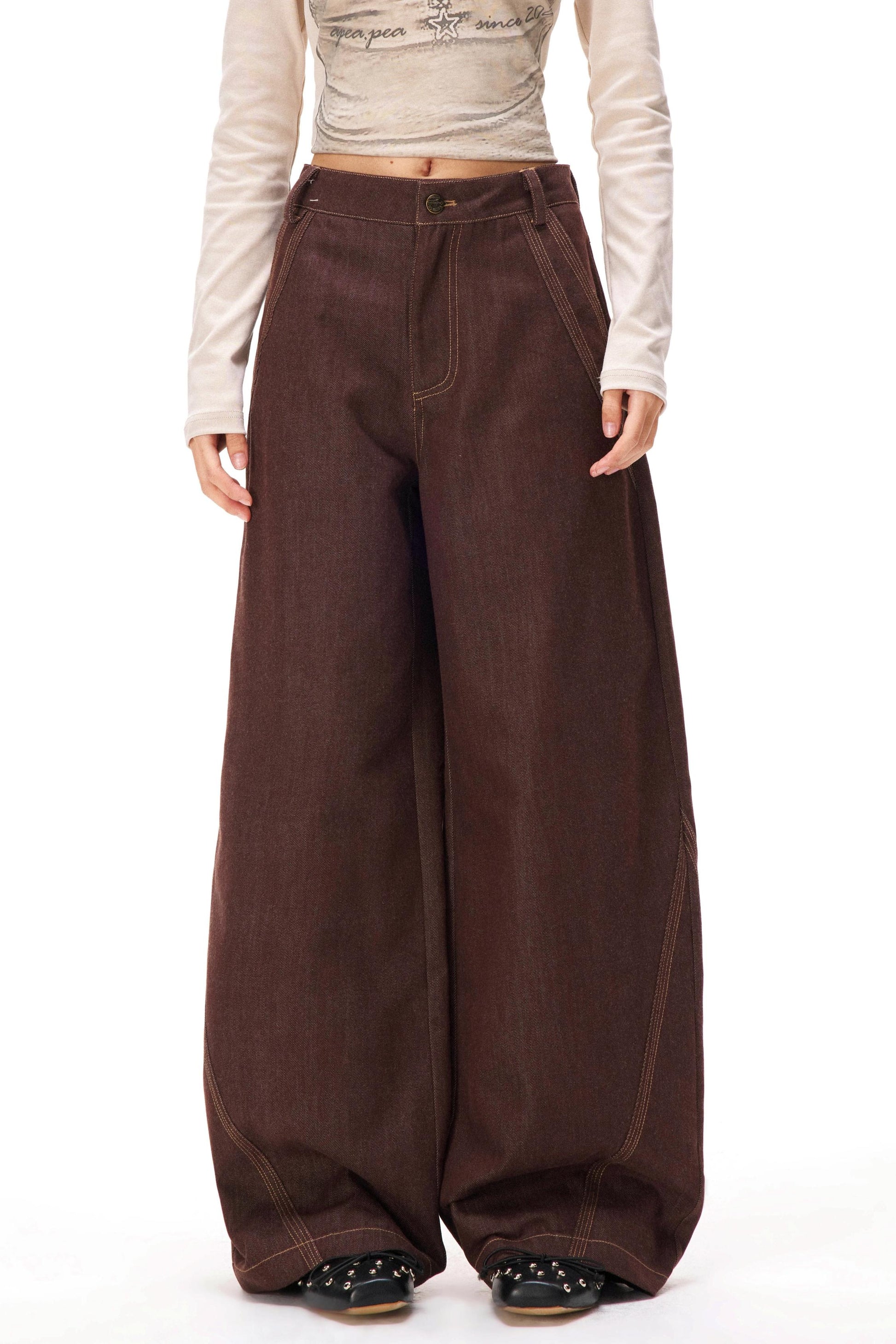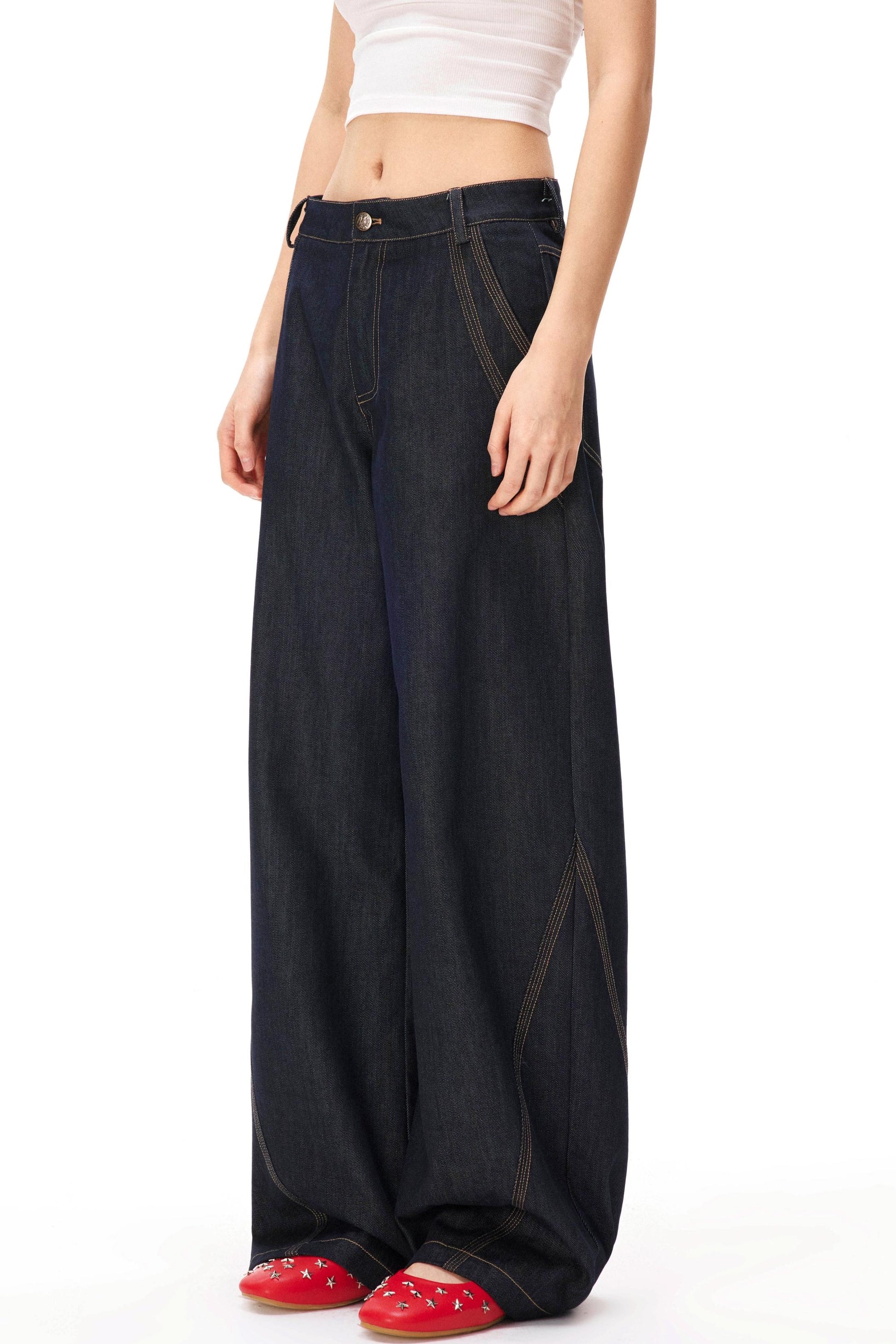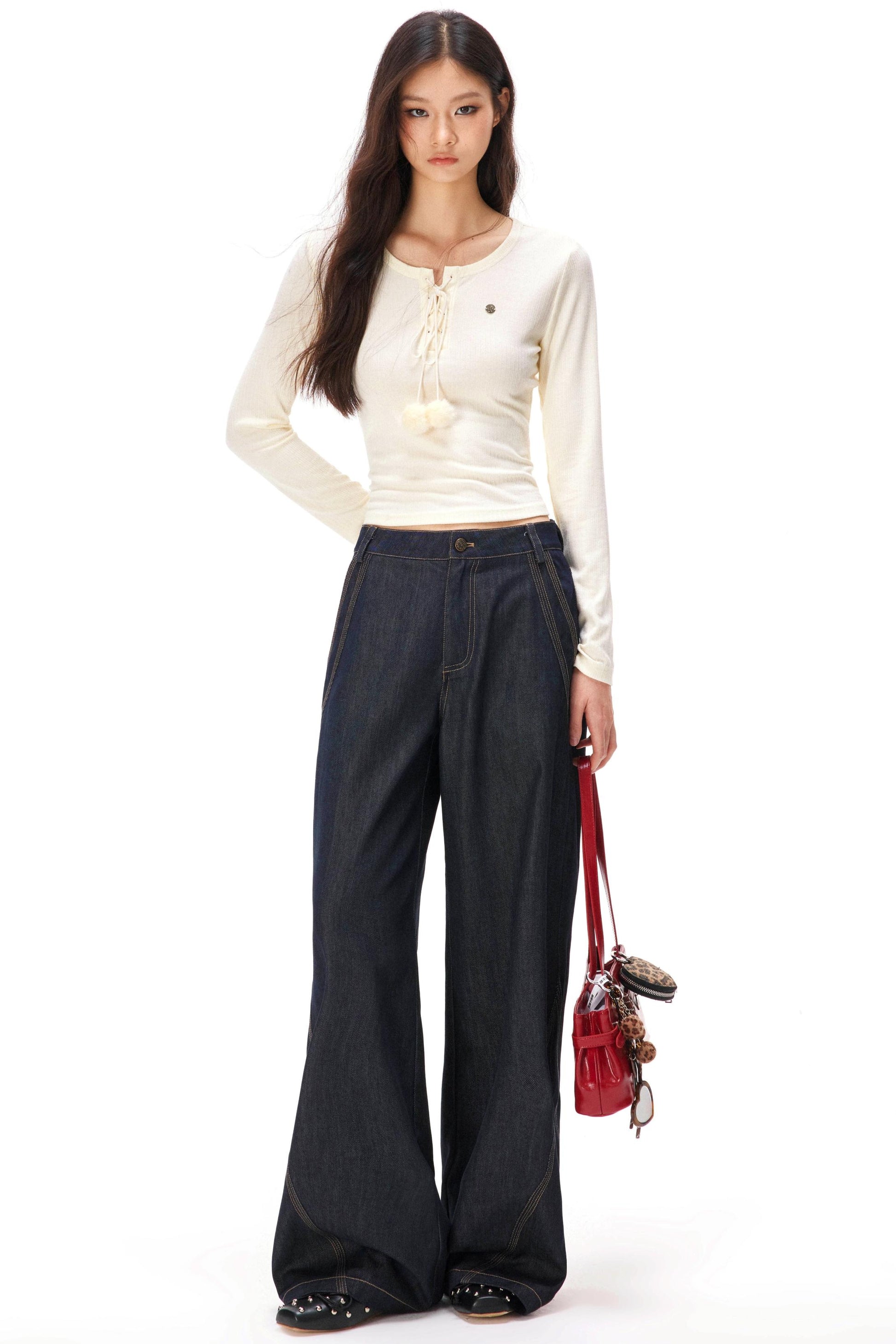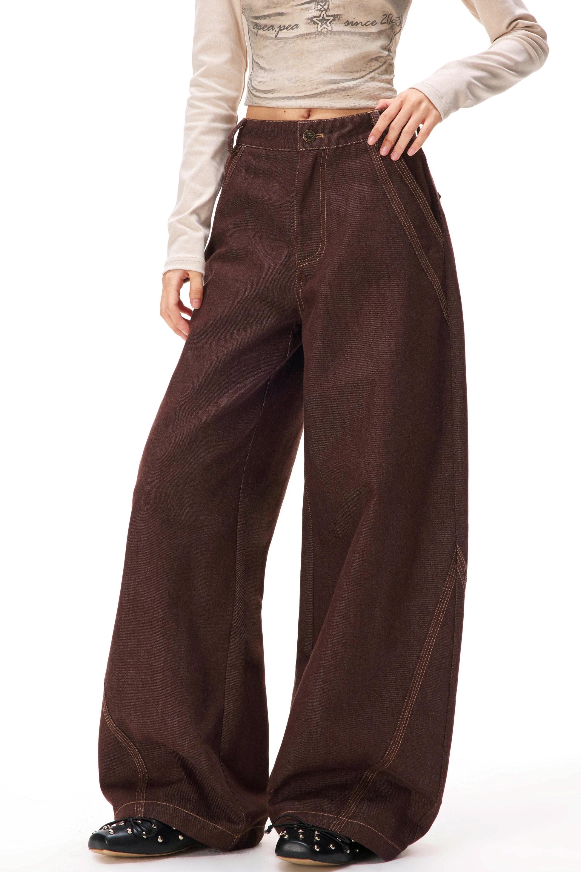 レトロカラーブロックデニムパンツ