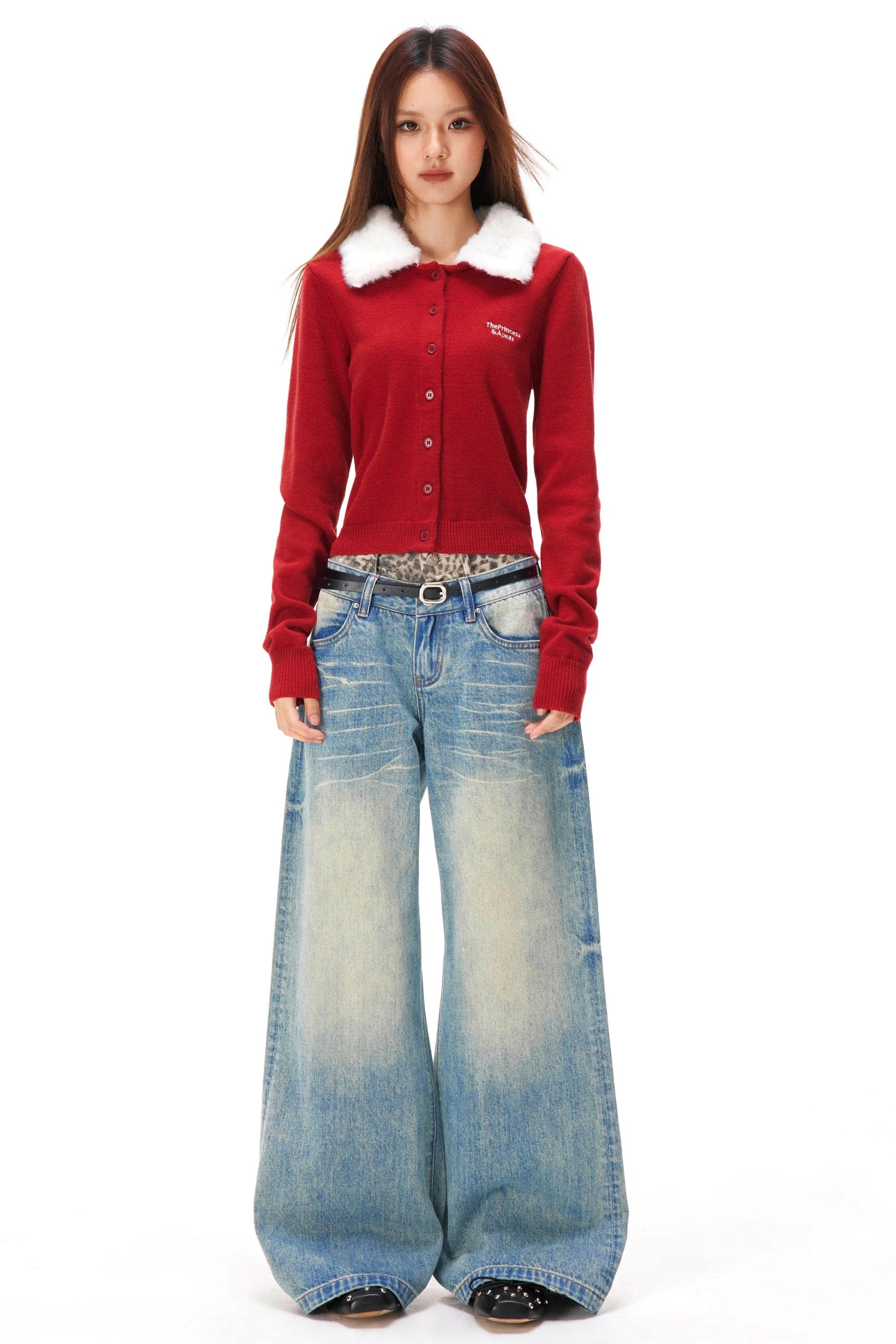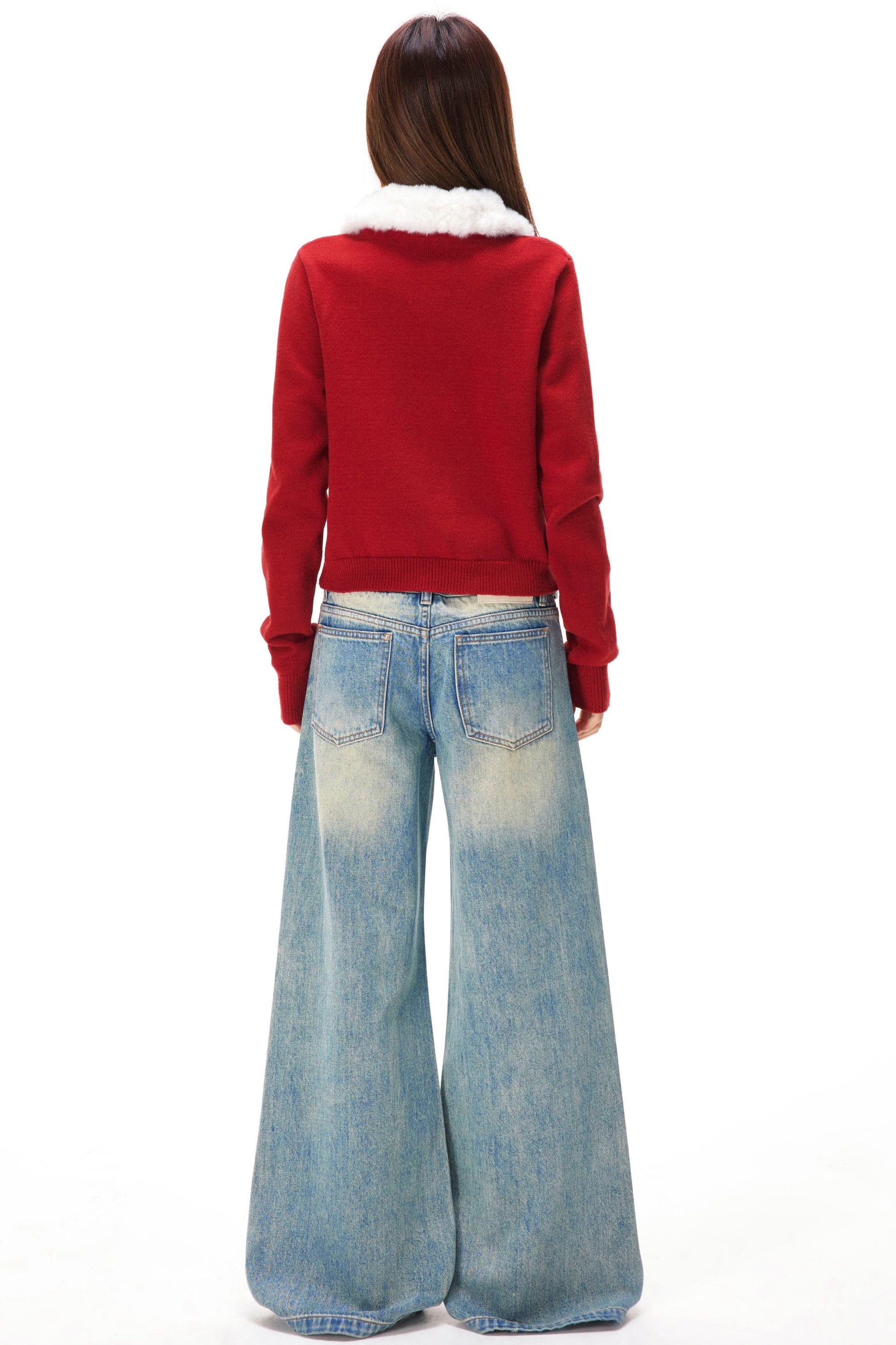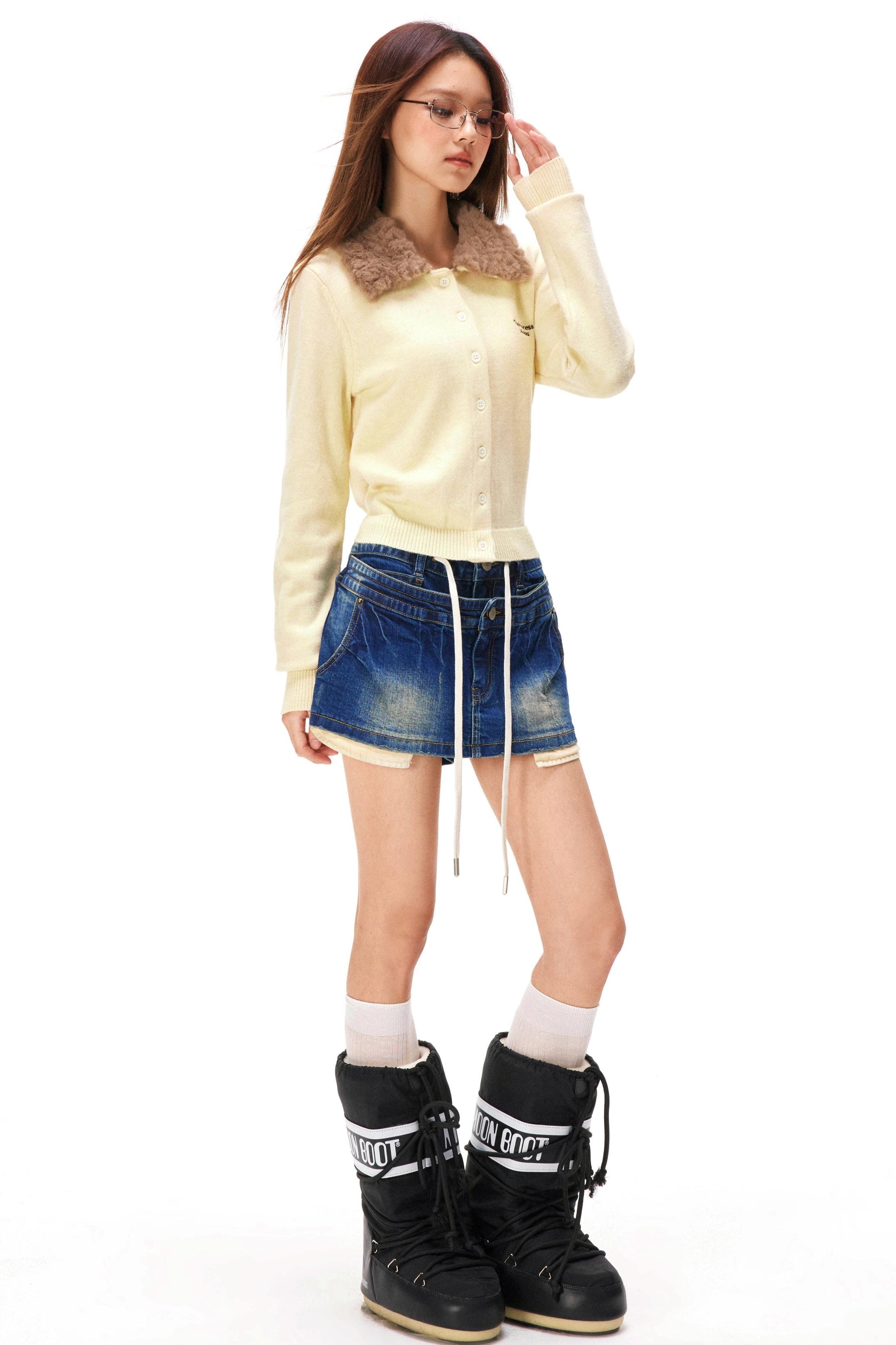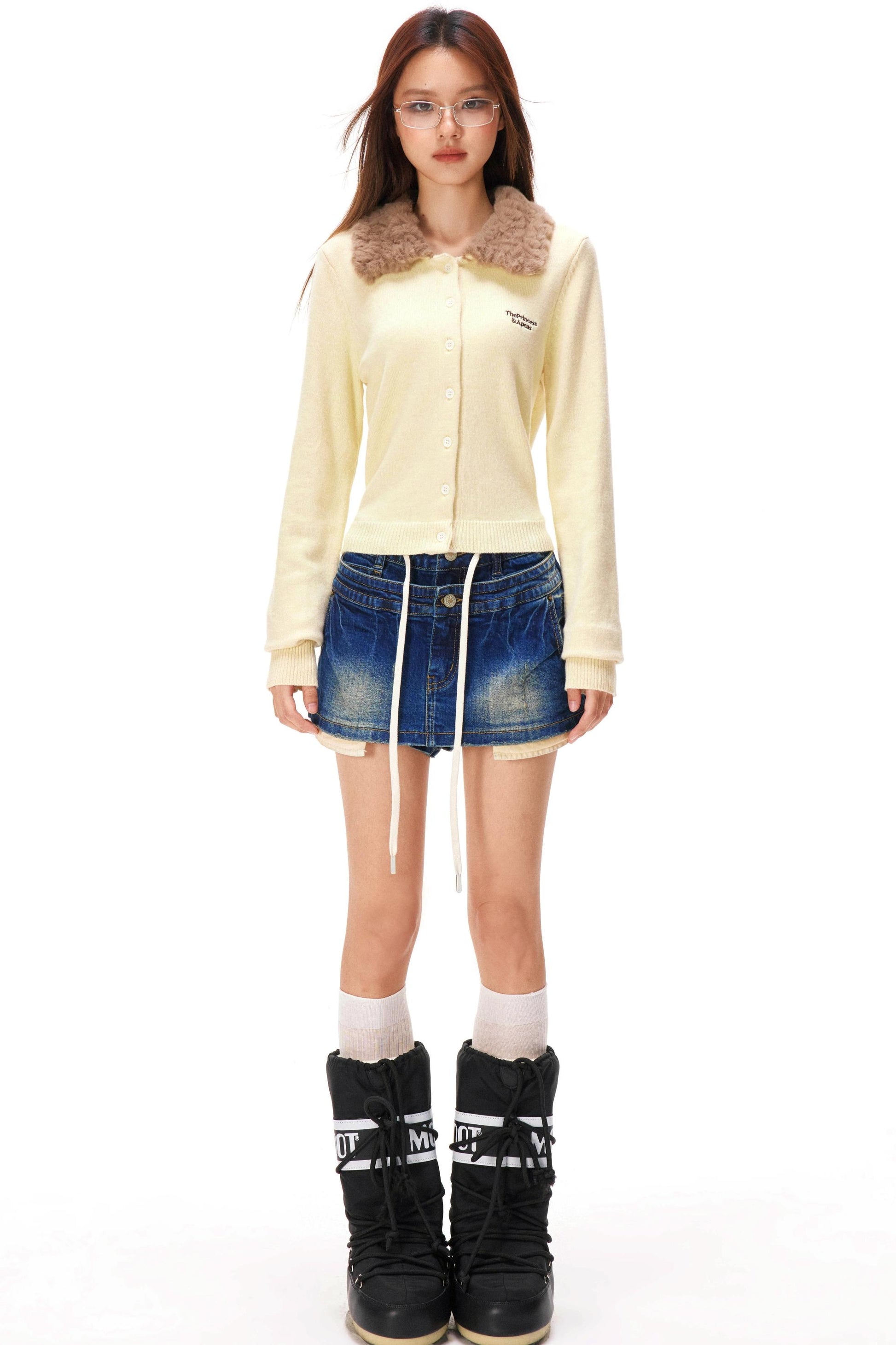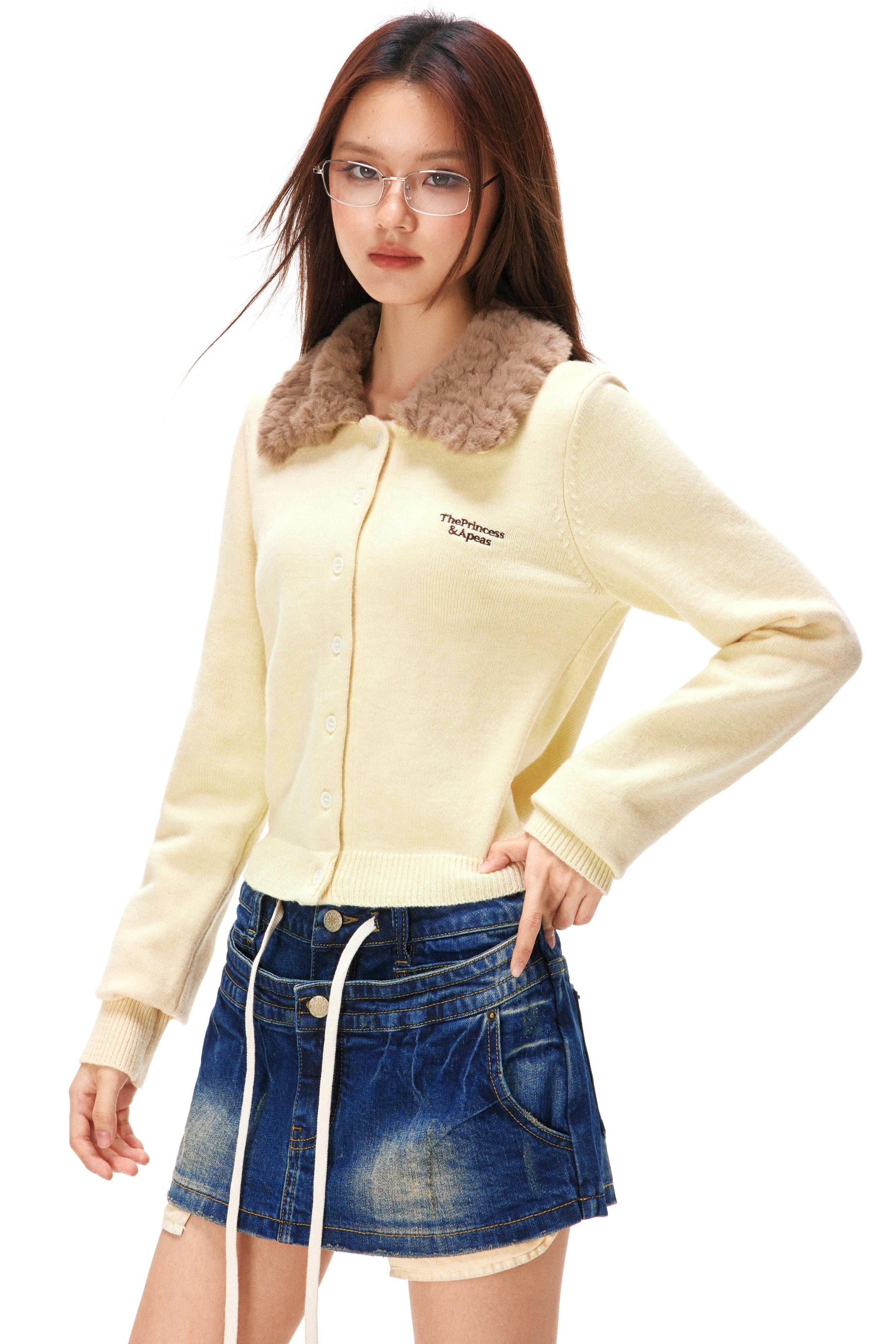 レトロファーカラーニットカーディガン