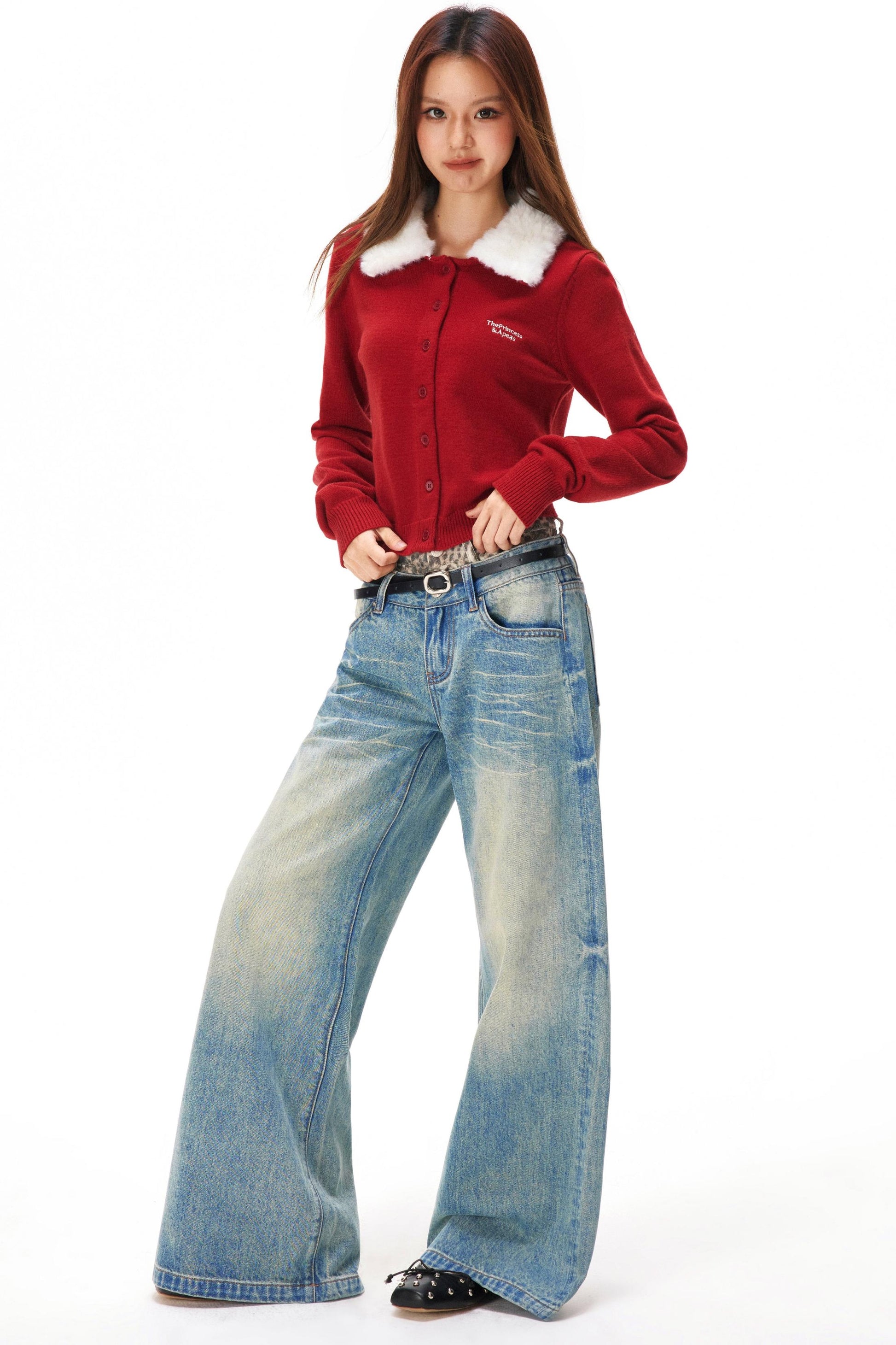 ❤レトロファーカラーニットカーディガン❤