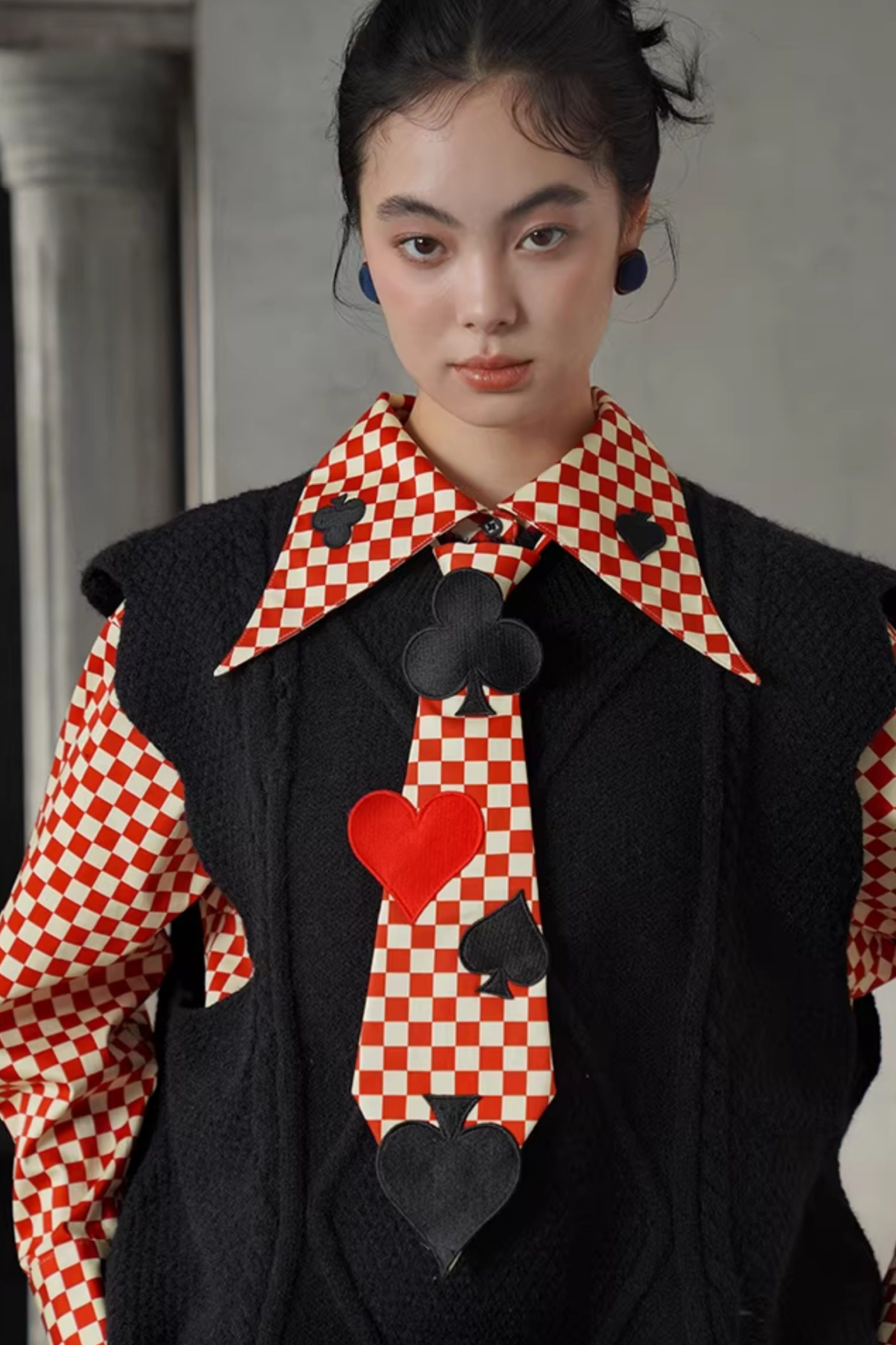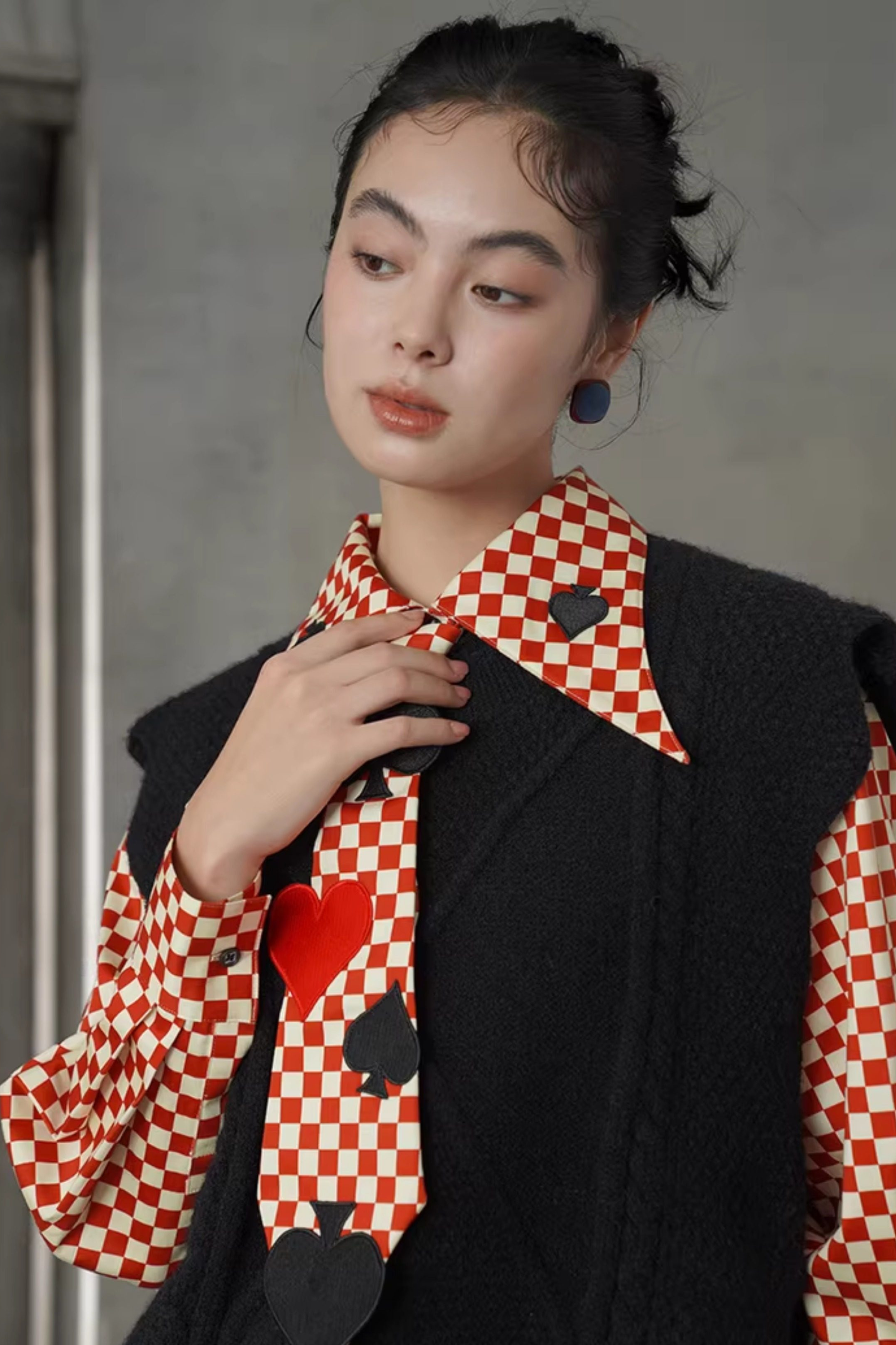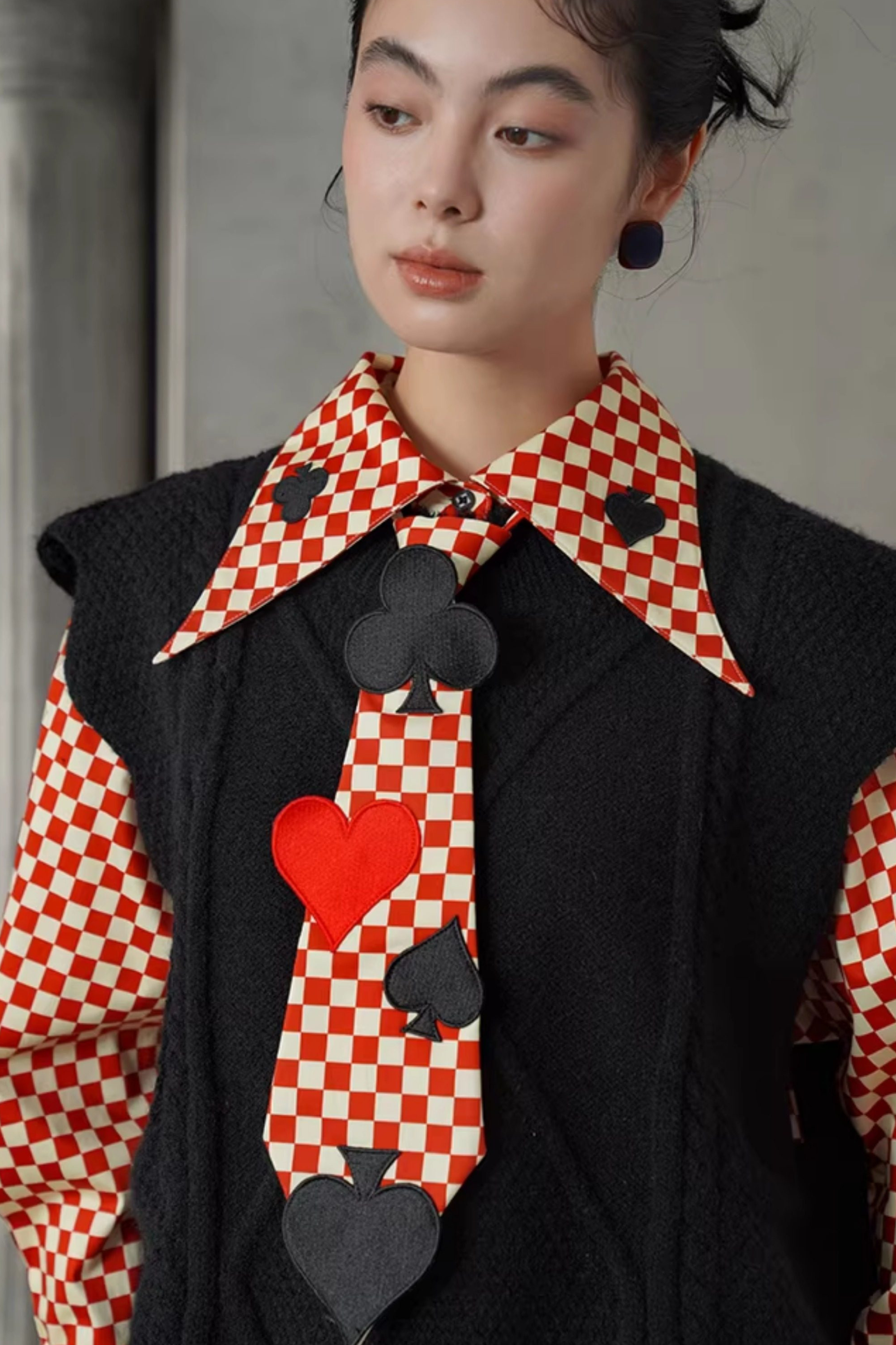 レトロチェックトランプデザインブラウス