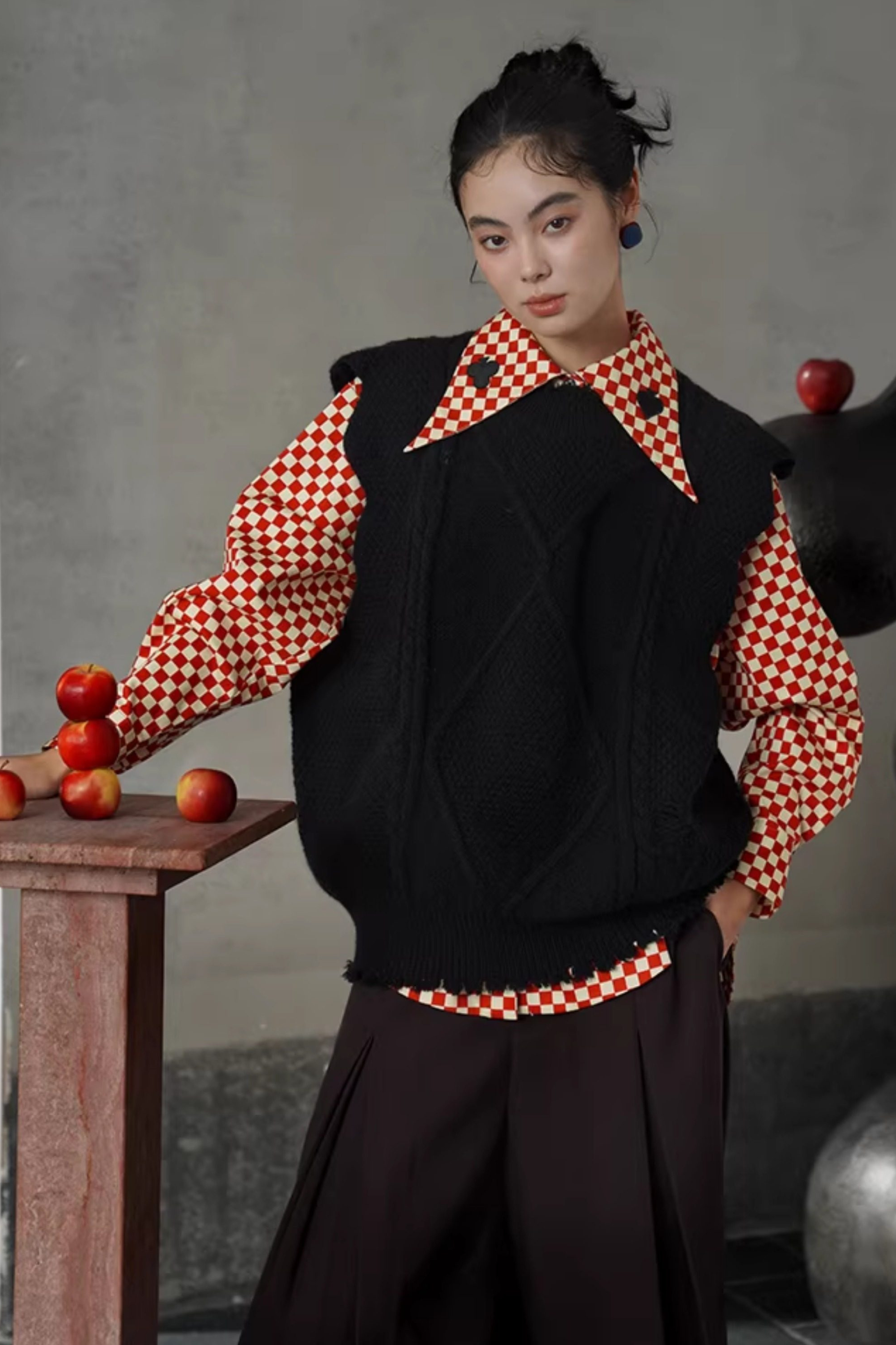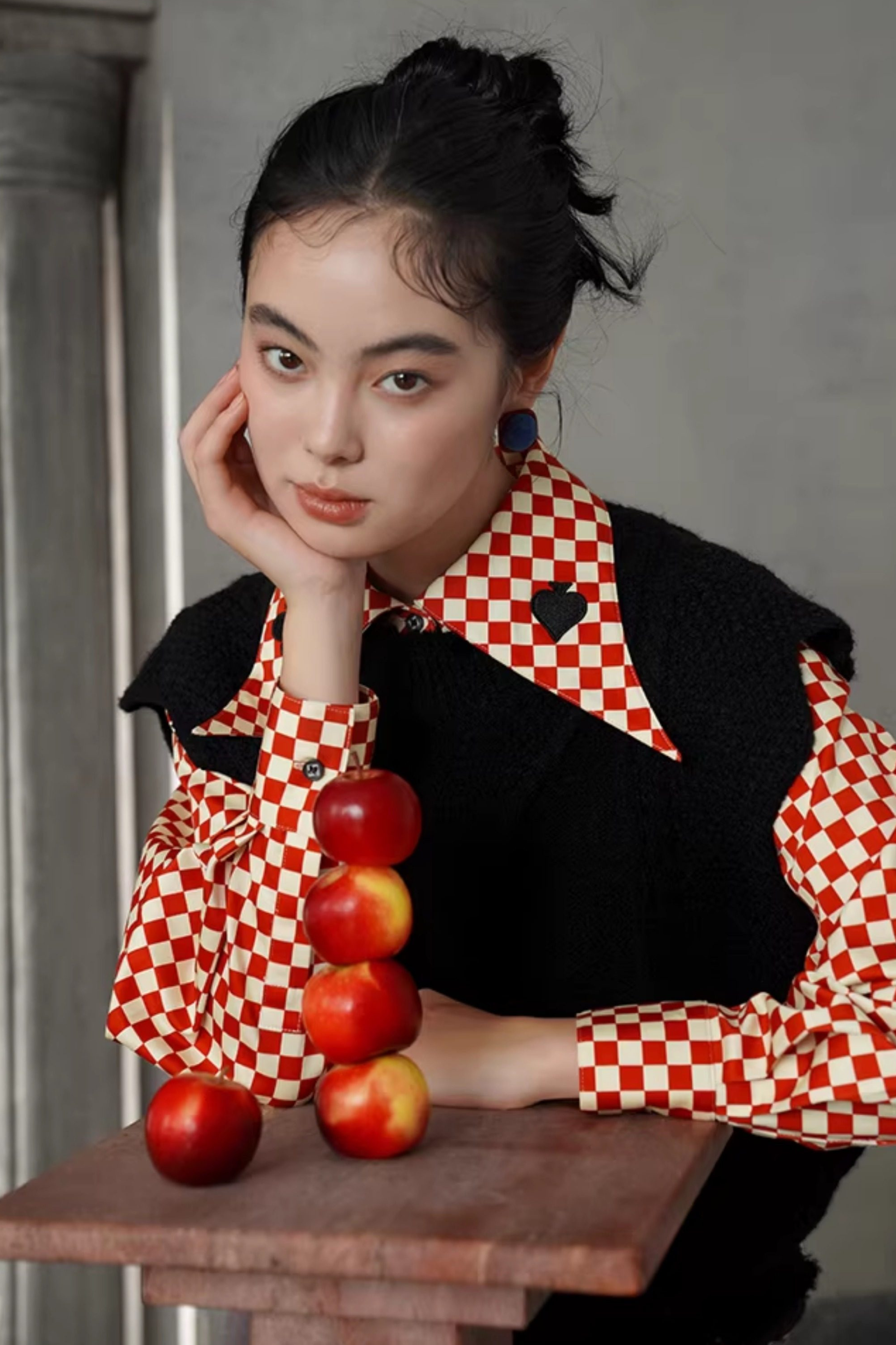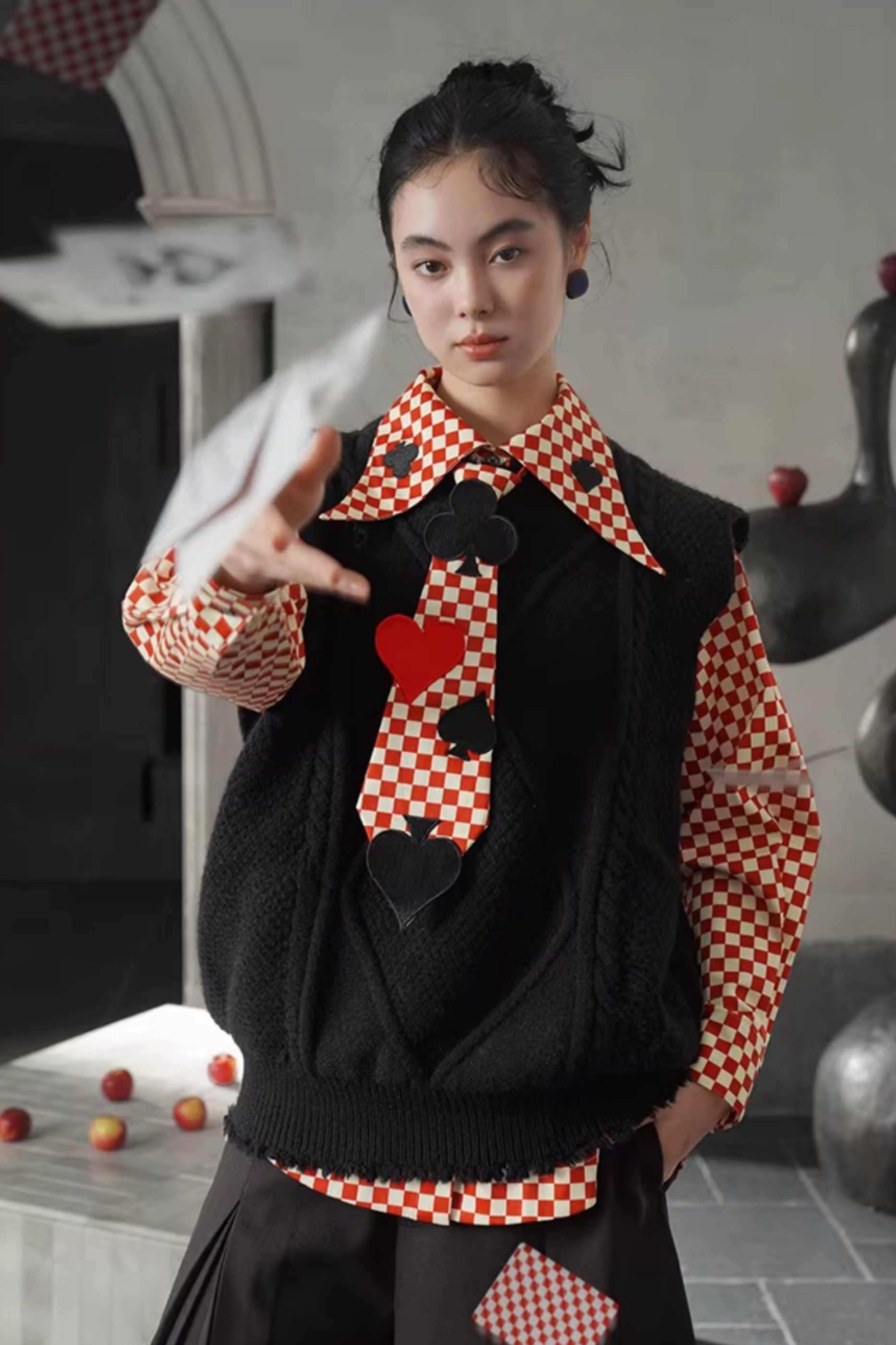 レトロチェックトランプデザインブラウス