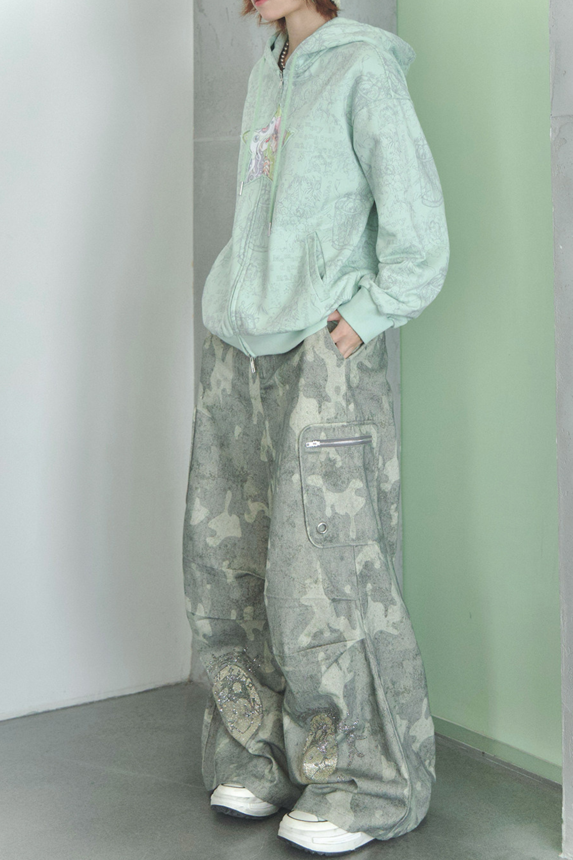 ラインストーンカモフラージュパンツ
