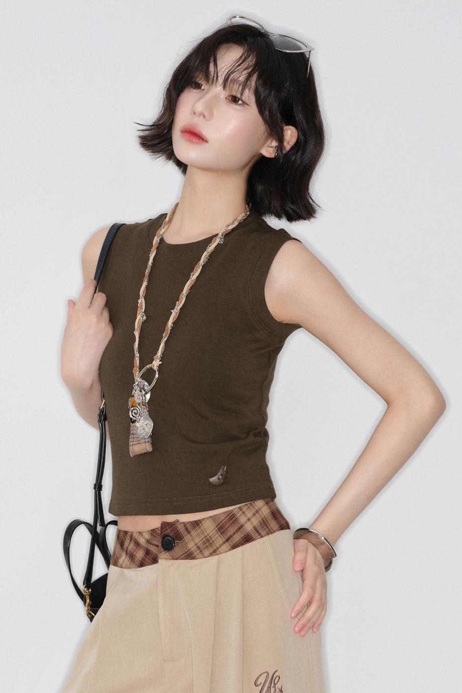 スリムフィットスリーブレストップス