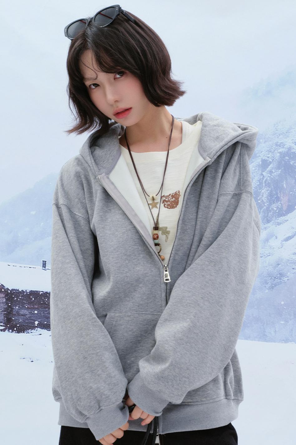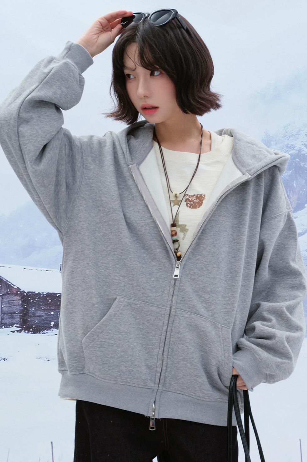 カジュアルルーズフードパーカー