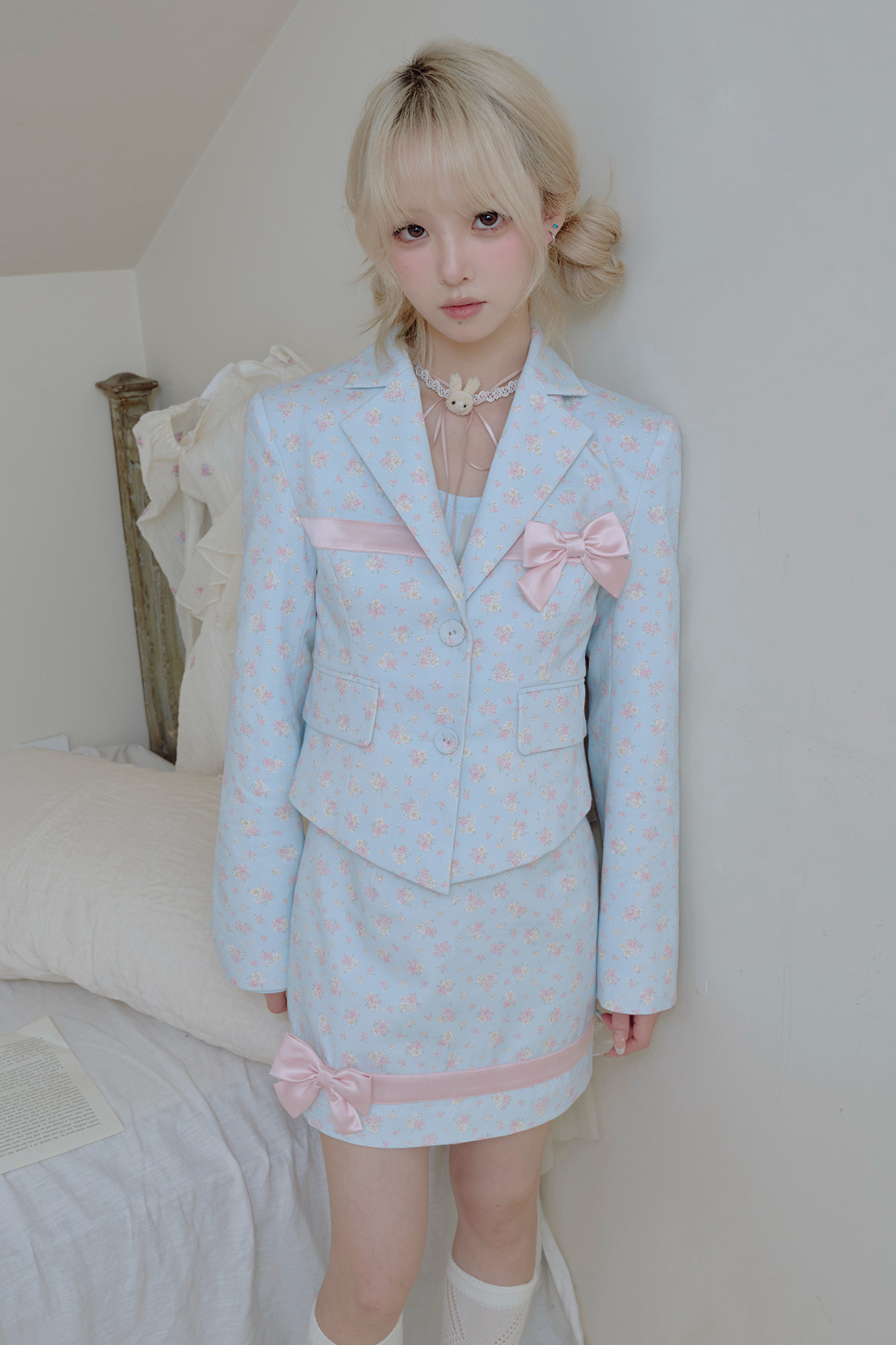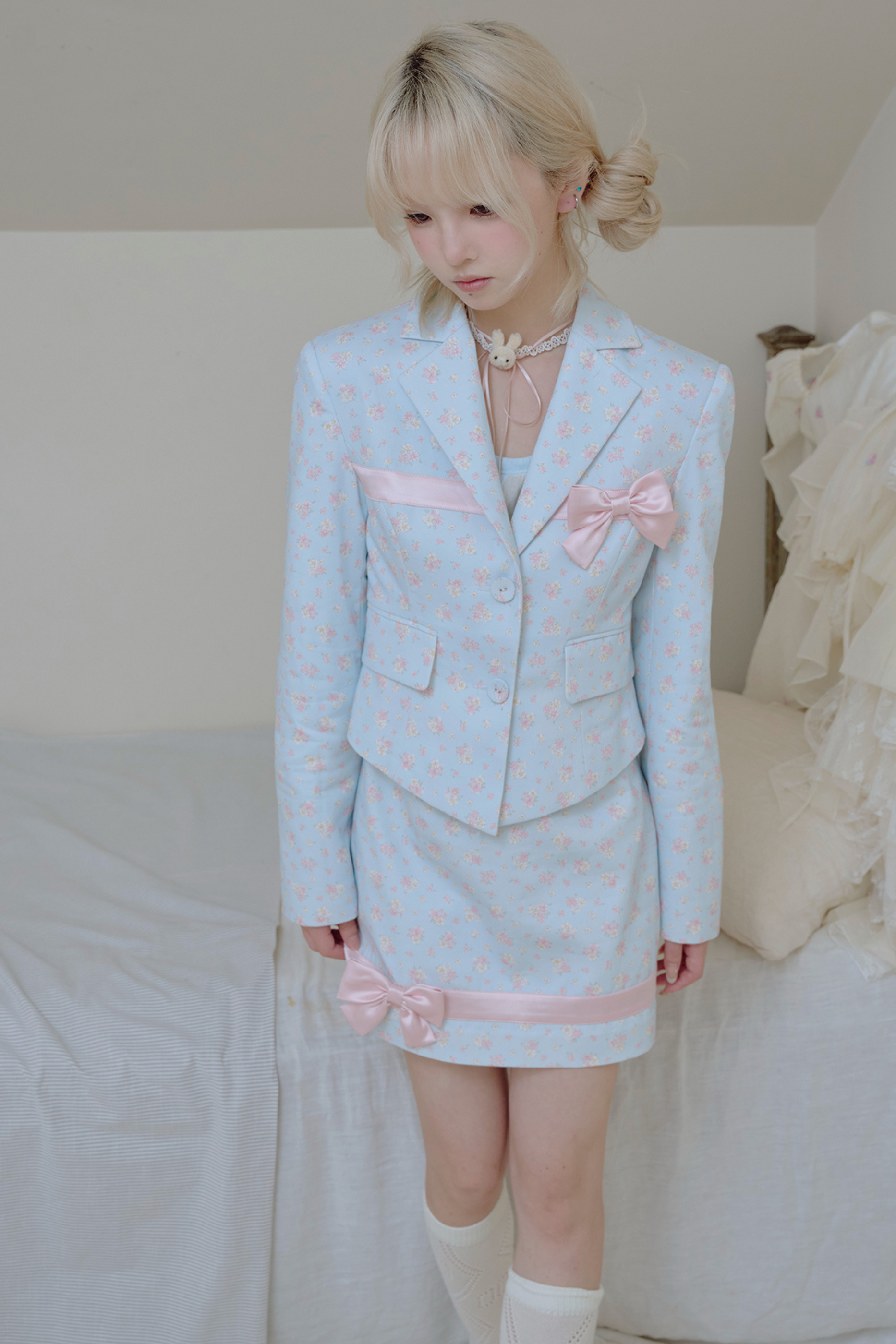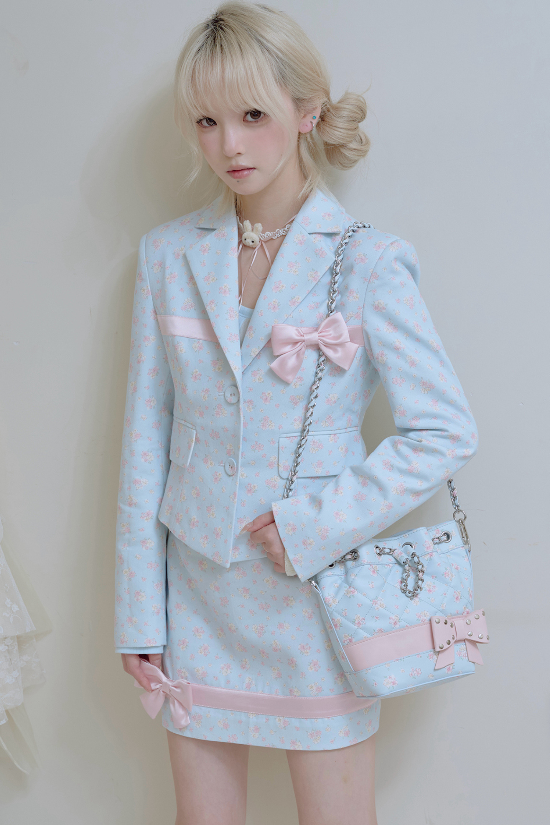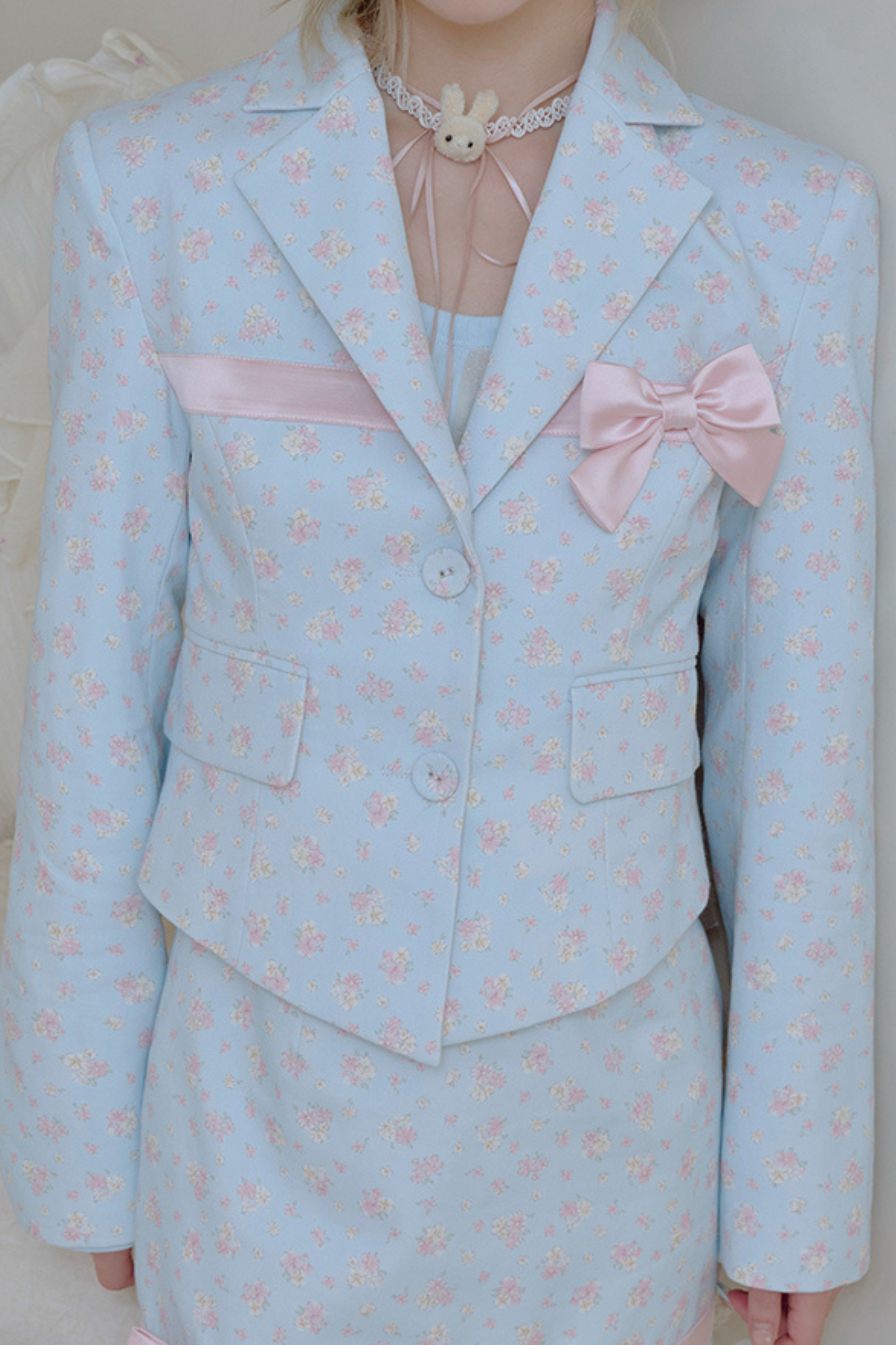 フローラルスイートリボンジャケット+タイトスカート