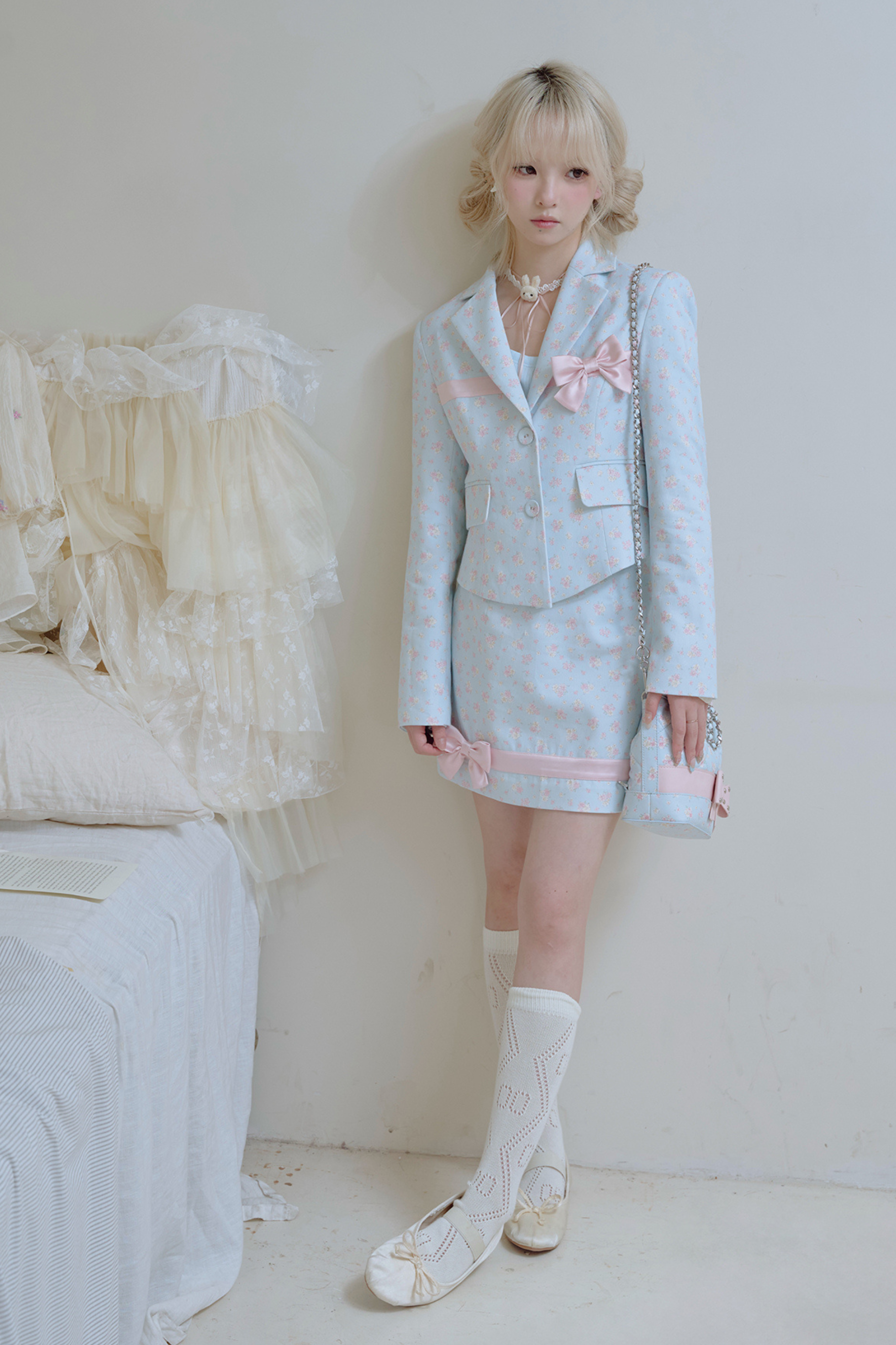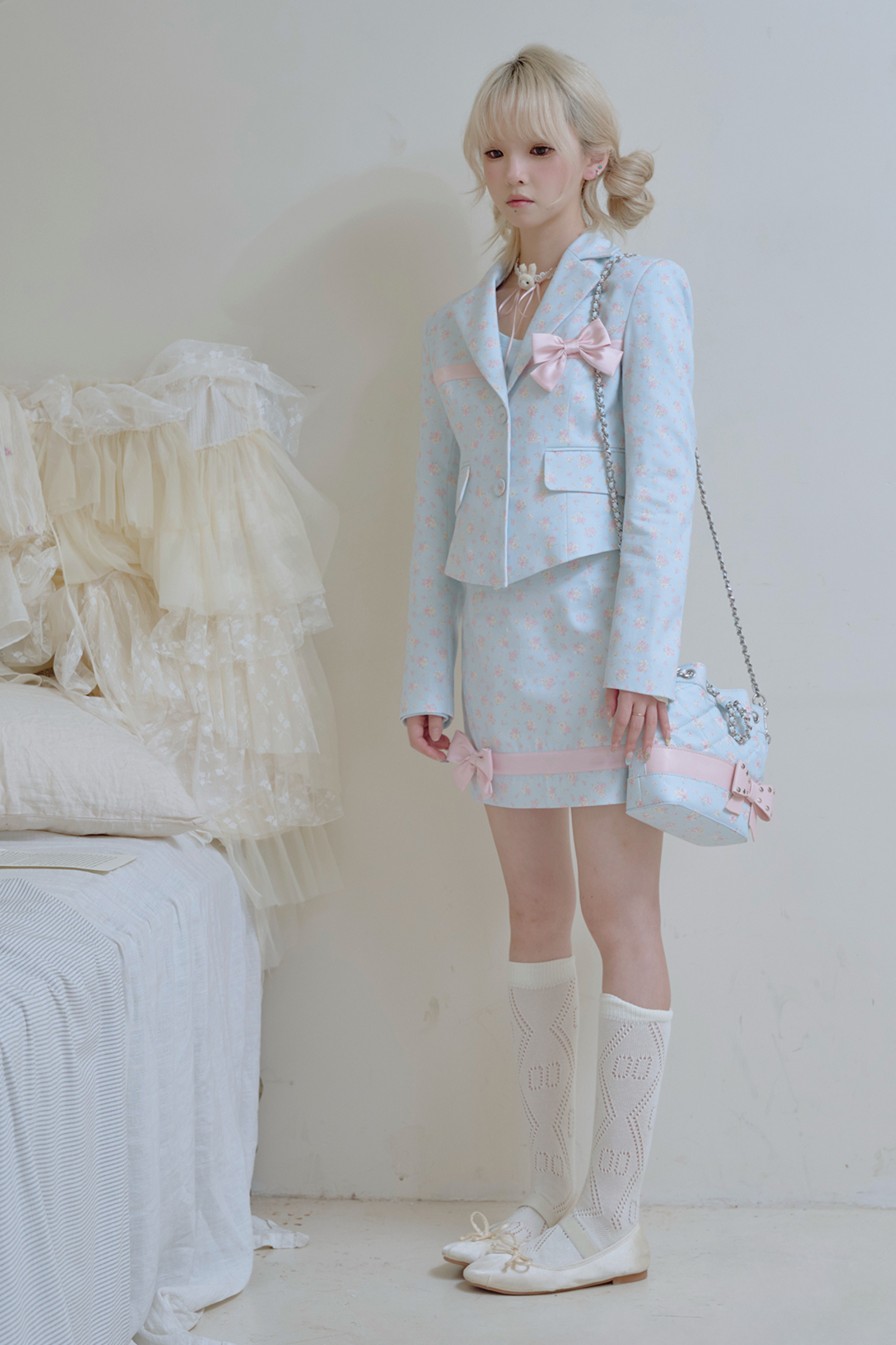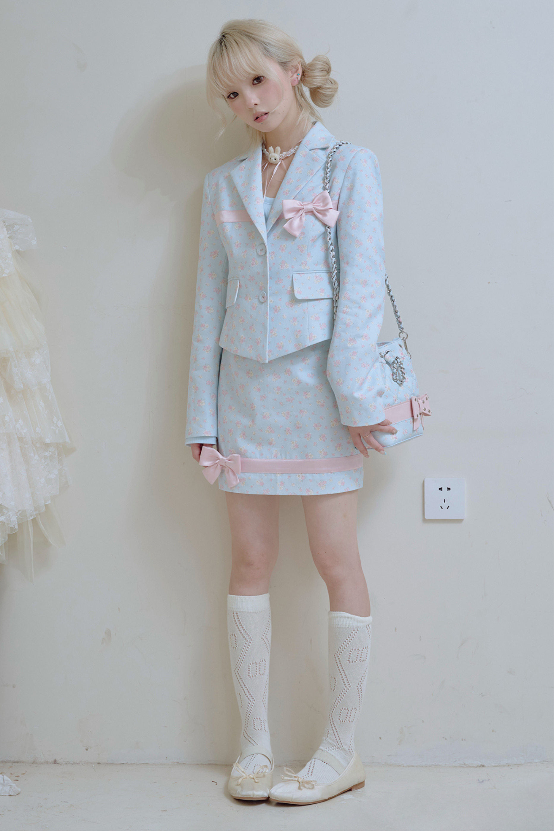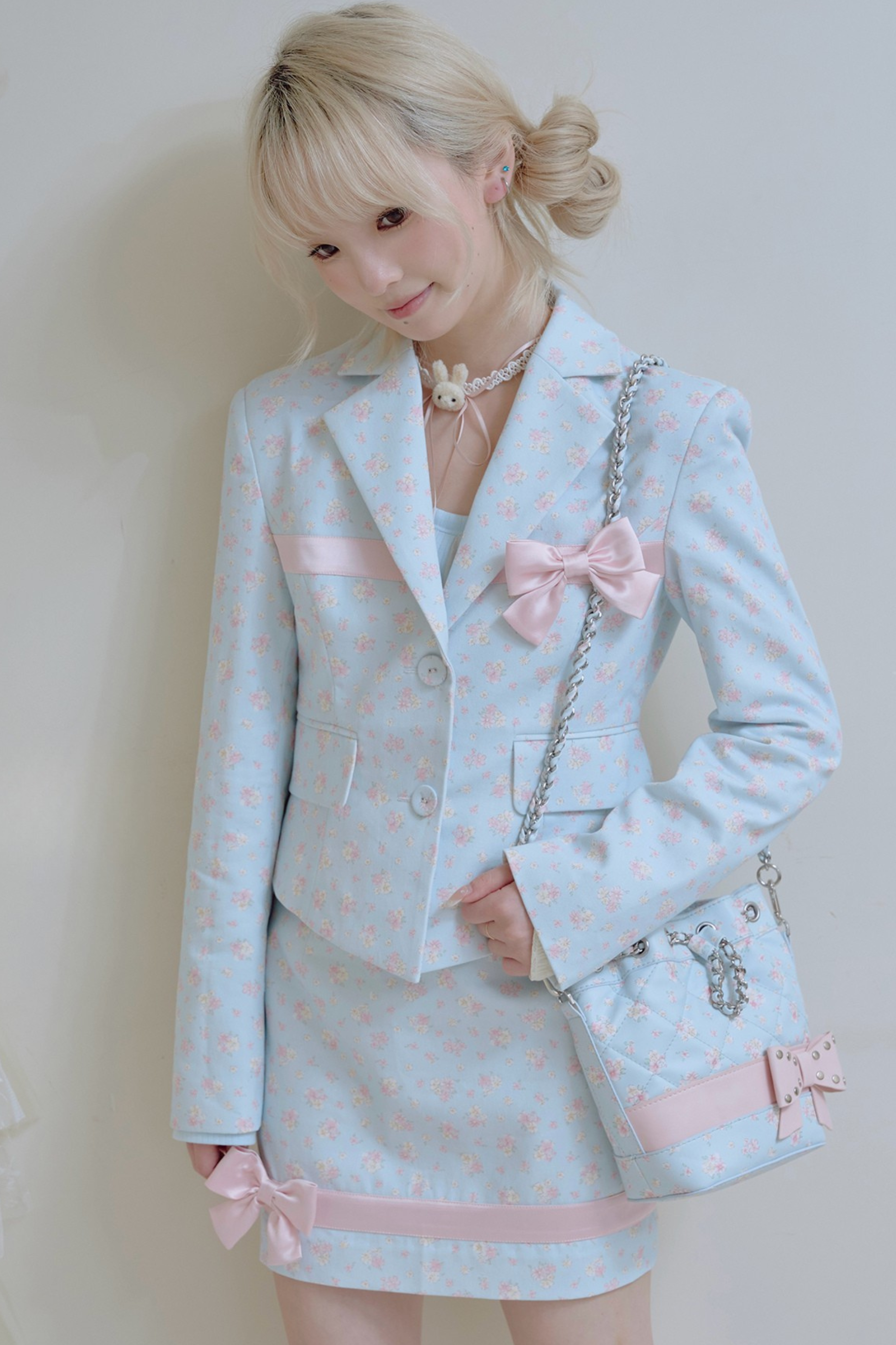 フローラルスイートリボンジャケット+タイトスカート