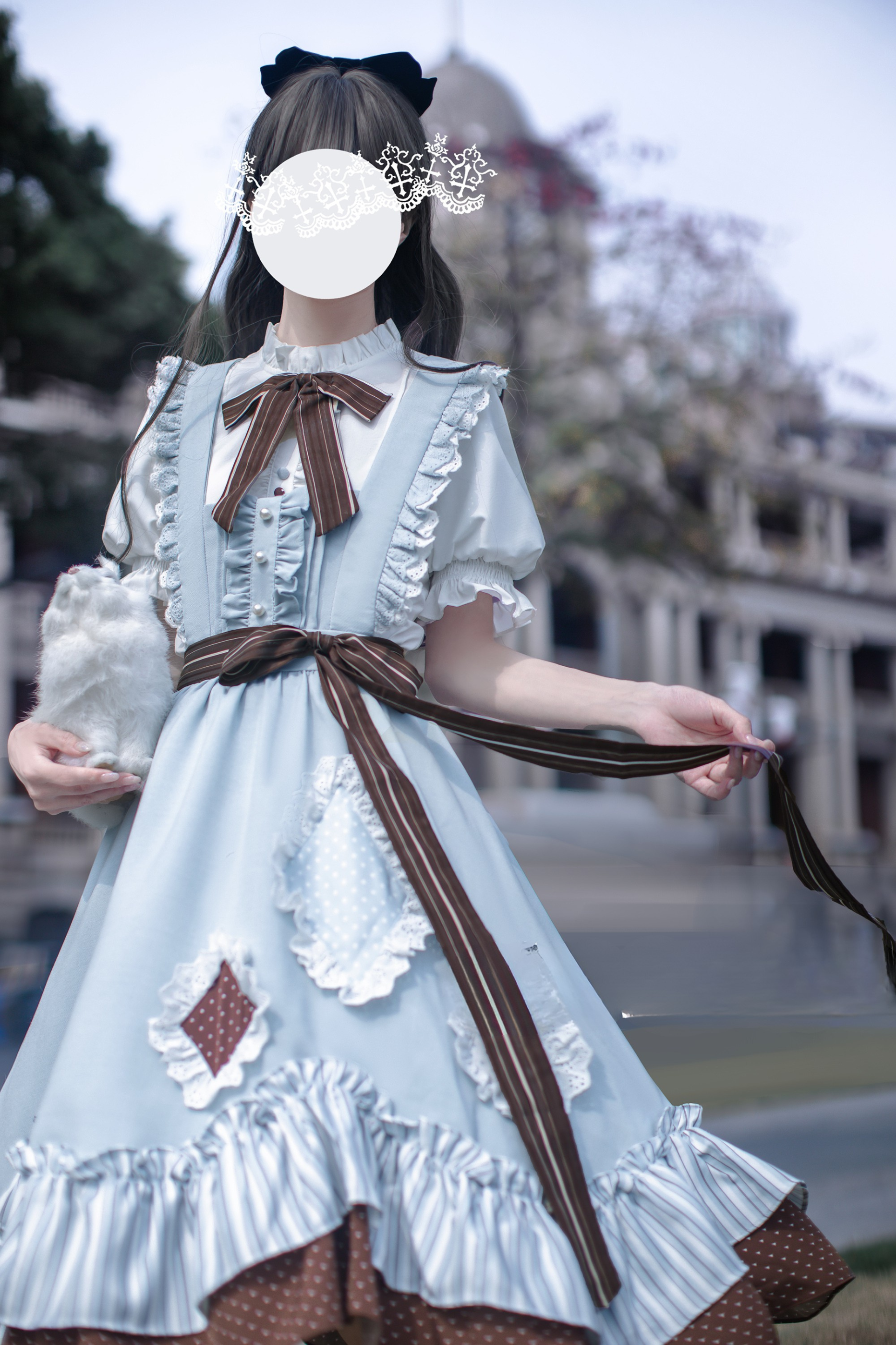 ❤【予約商品】レトロアリス風サスペンダースカート+シャツ+リボンネクタイ+ブローチ+ヘアクリップ❤
