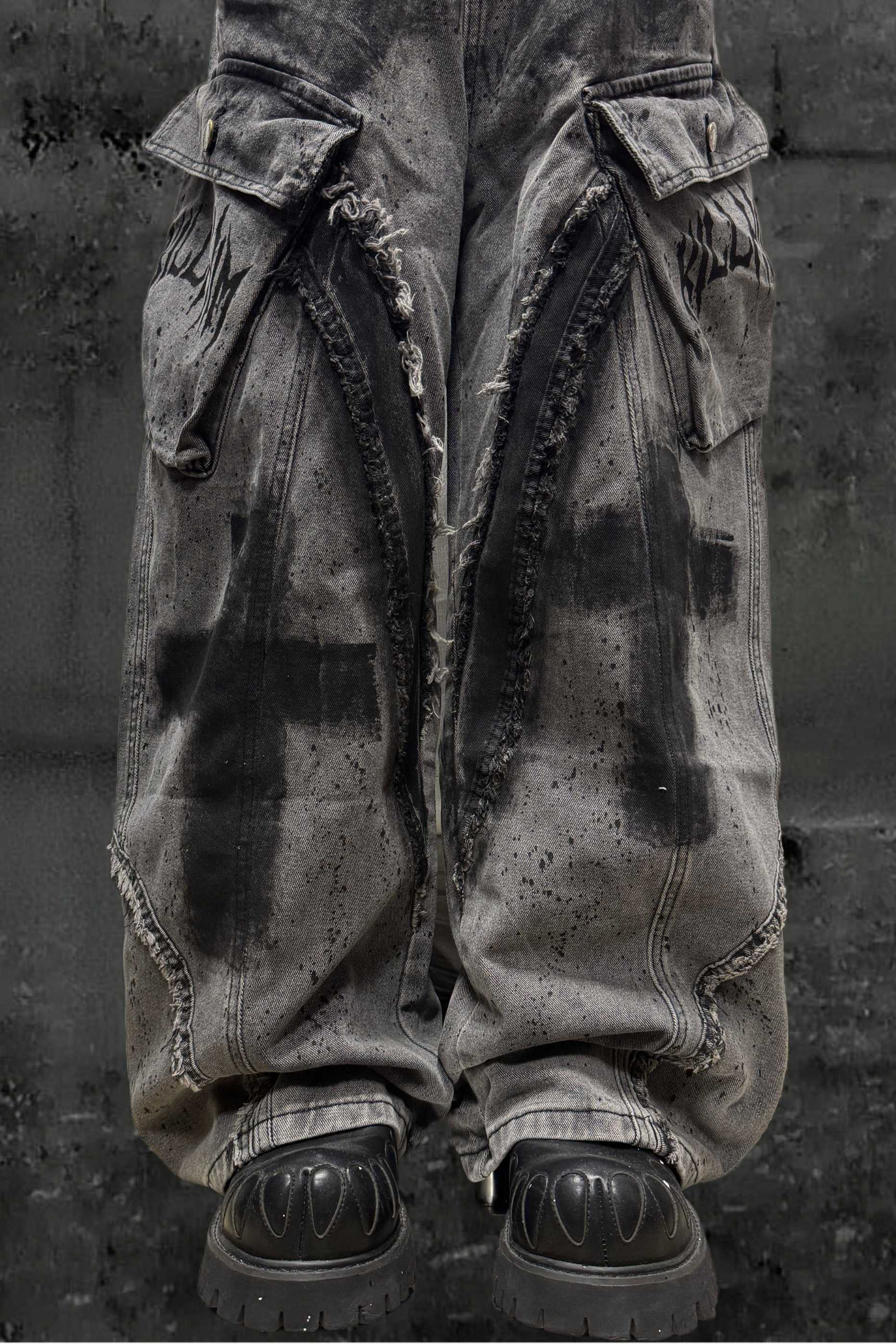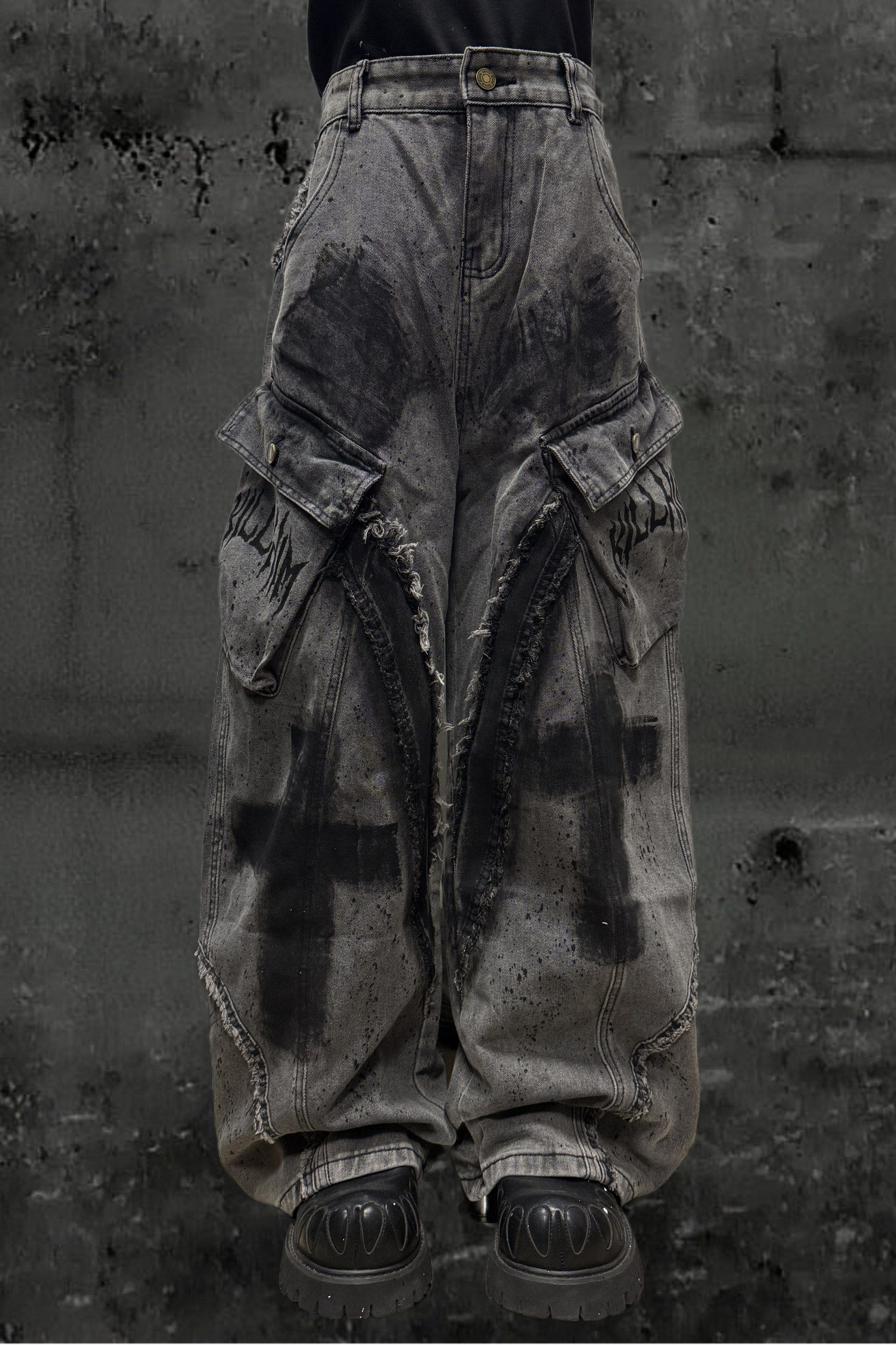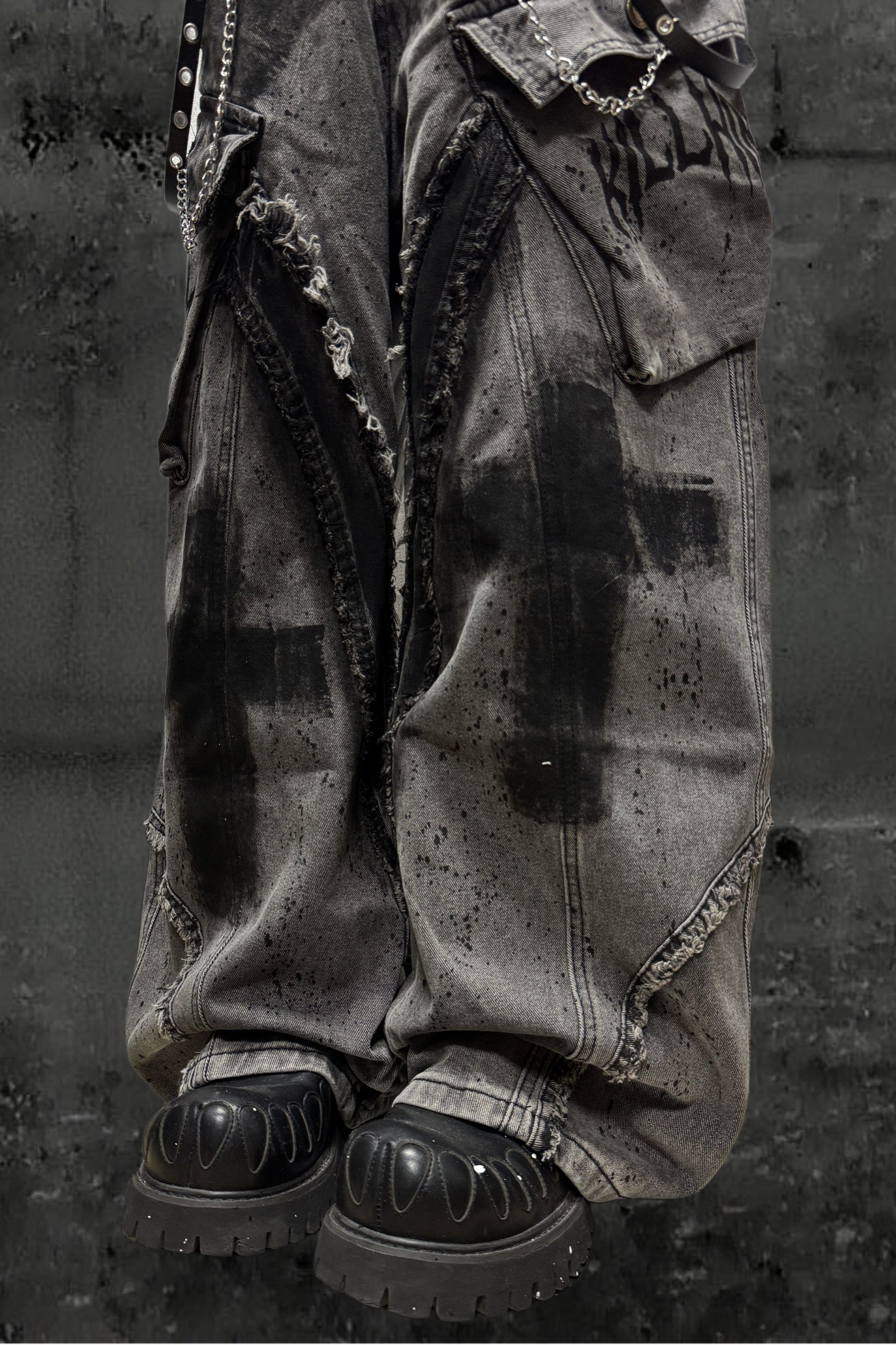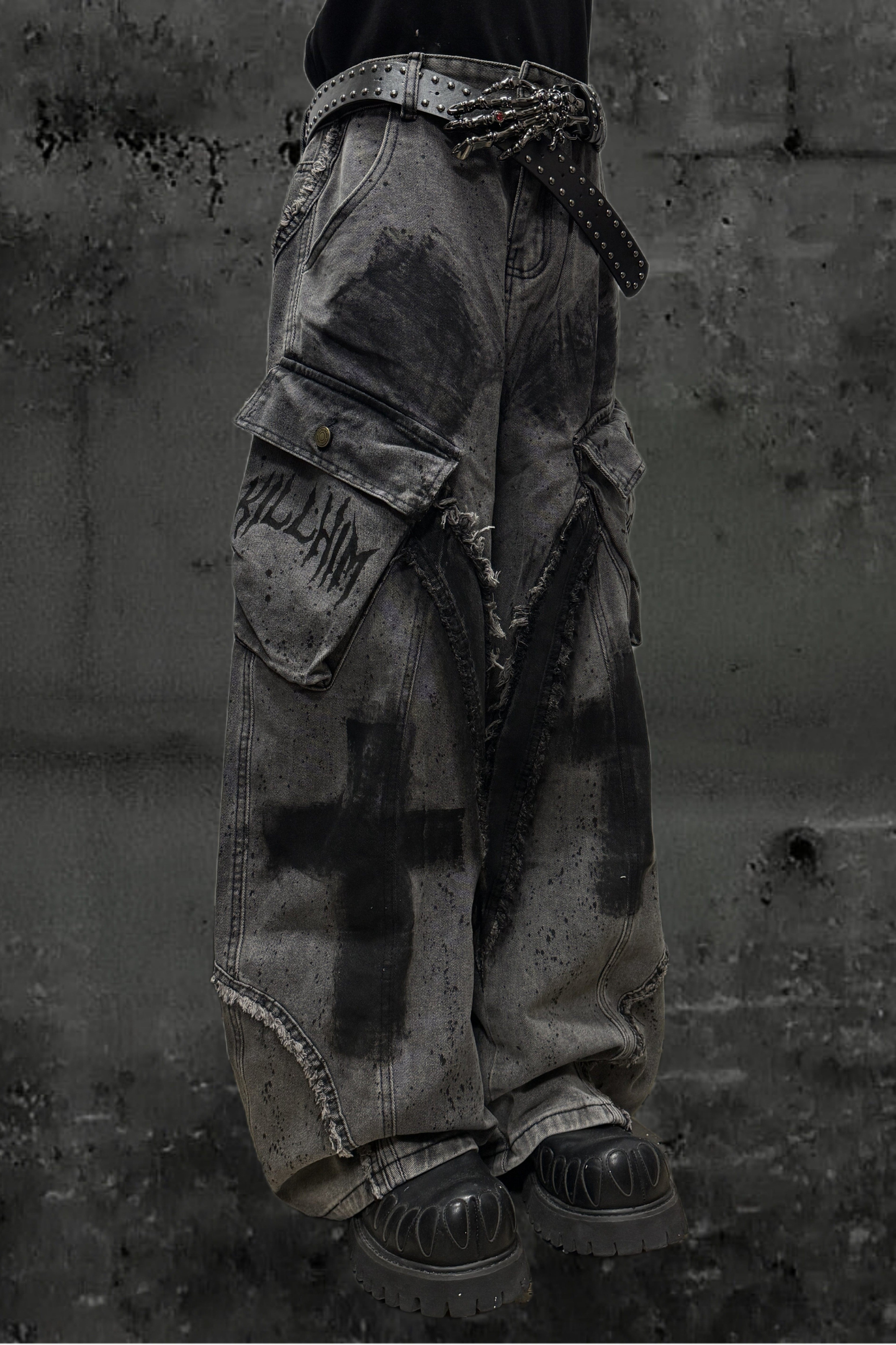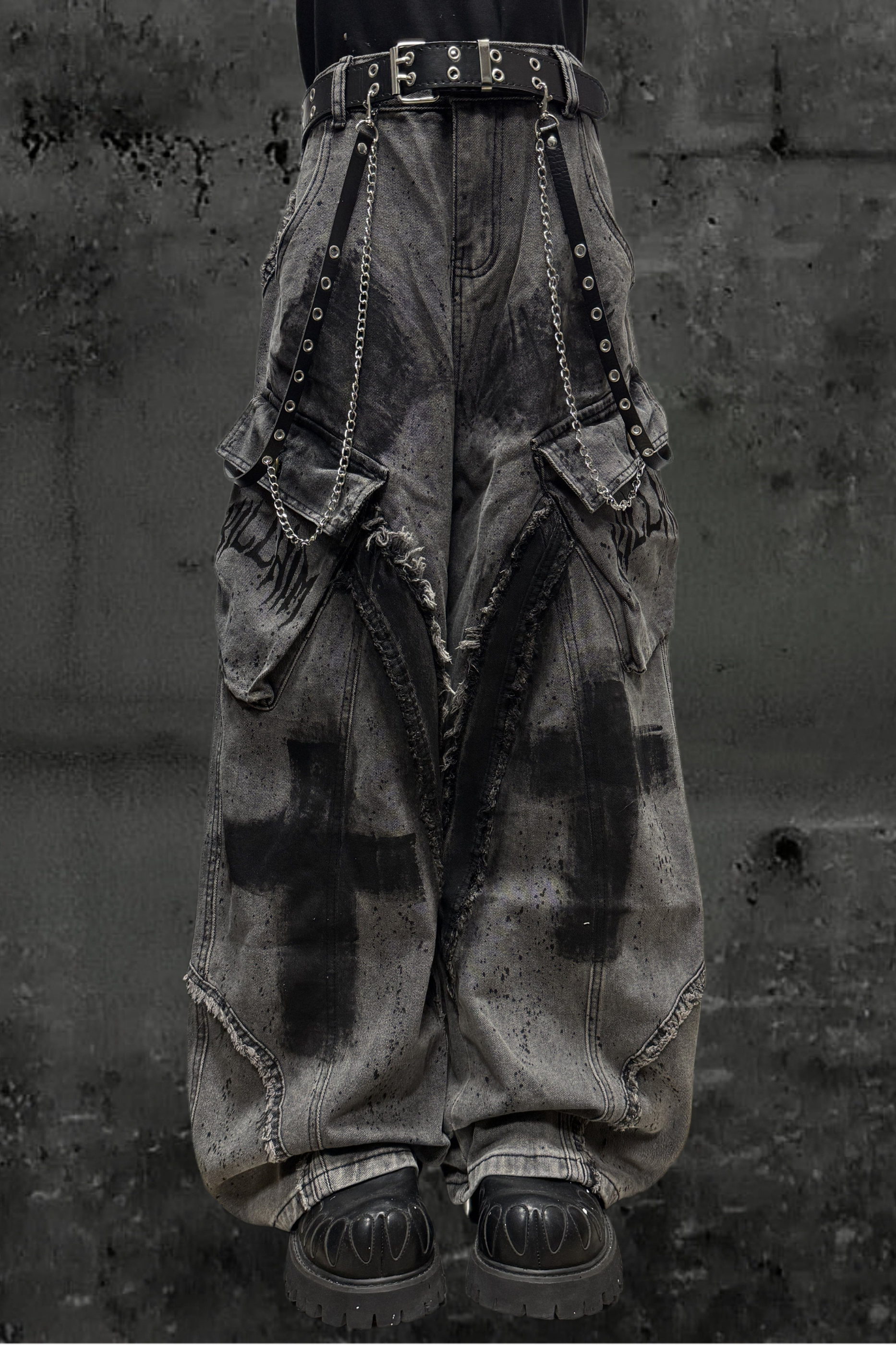 ❤ダーククロススプレーデザインワイドパンツ+ベルト❤