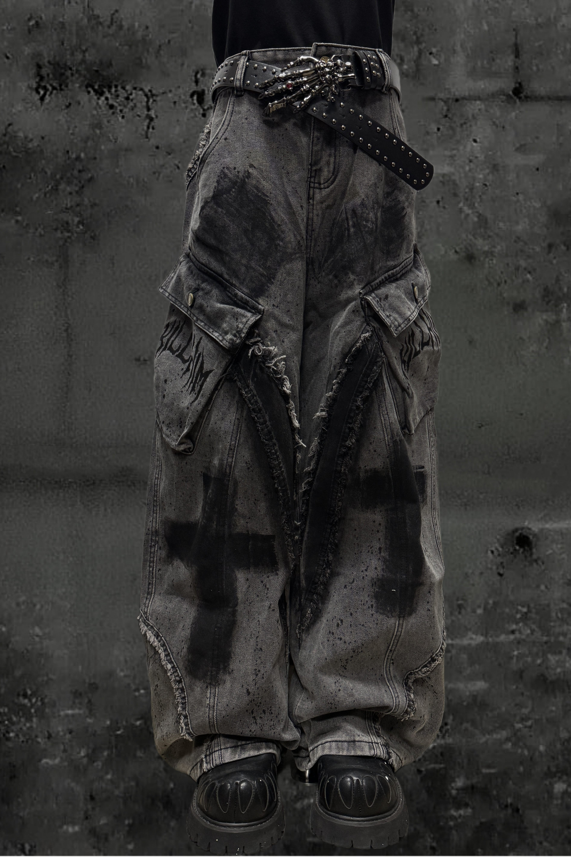ダーククロススプレーデザインワイドパンツ+ベルト
