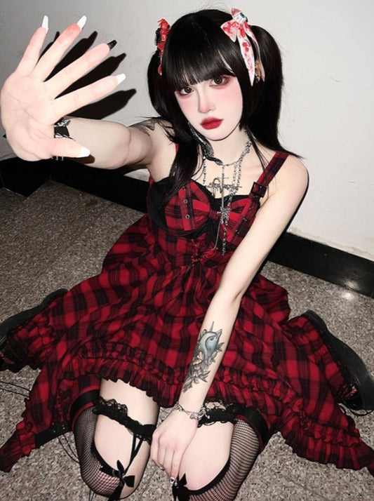 락 다크 체크 아시메사 펜더 스커트 + 레그 커버