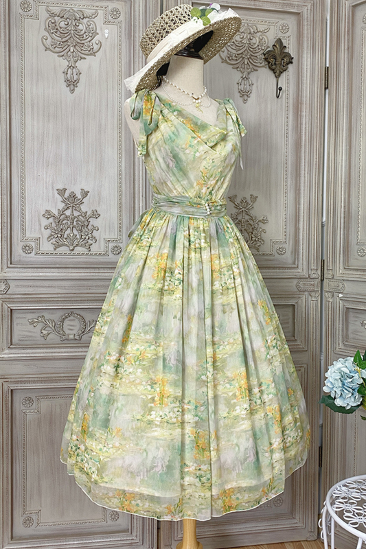 マーブルリゾートシフォンプリントドレス