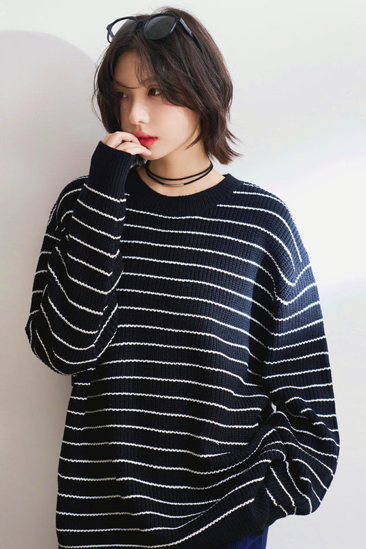 シンプルストライプオータムセーター