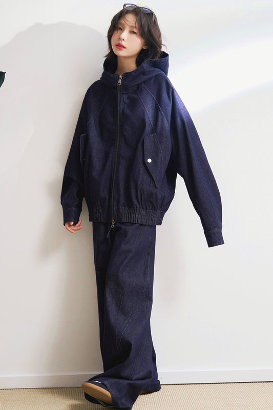 フーデッドカジュアルデニムセットアップ