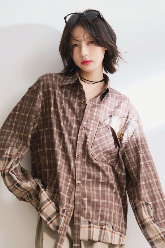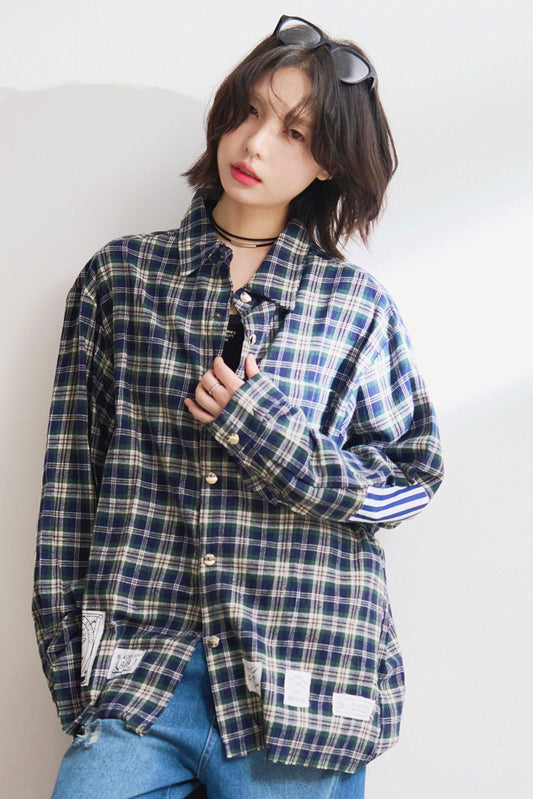 ルーズフィットチェックロングスリーブシャツ
