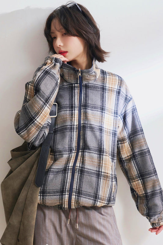 ハーフジップスタンドカラーチェックスウェット