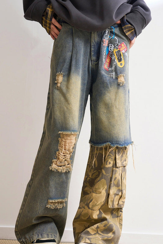 ステートメントパッチワークカモジーンズ