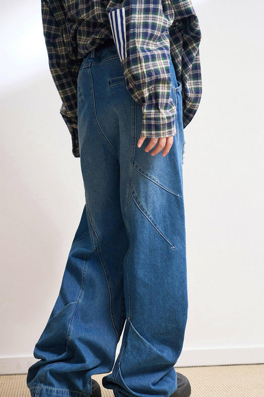 ステートメントリップドワイドレッグジーンズ
