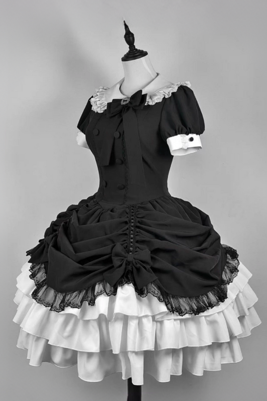 【数量限定】ゴシックダークドールロリータブラックリボンドレス