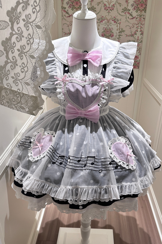하트비트 도트 원피스 + 시스루 앞치마