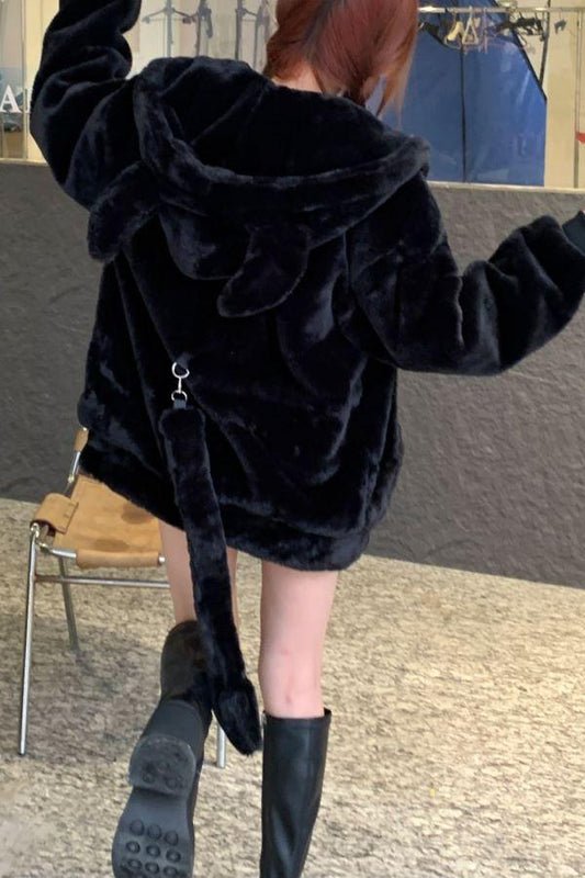 【예약상품】고양이 귀 후드티 플리스털스트랩 2WAY 파카