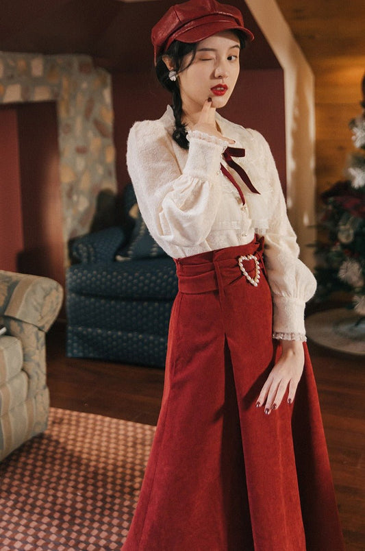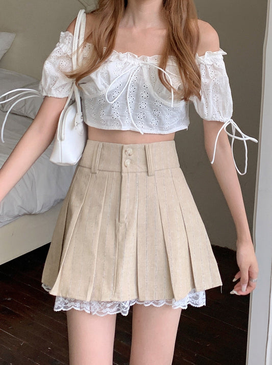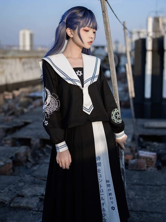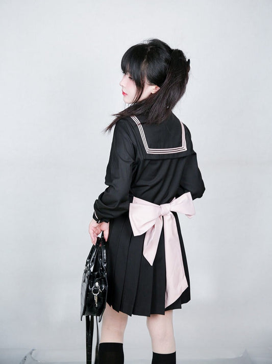 리본타입 첨가형 라인세일러트립스+플리츠스커트【길이가 선택할 수 있음】