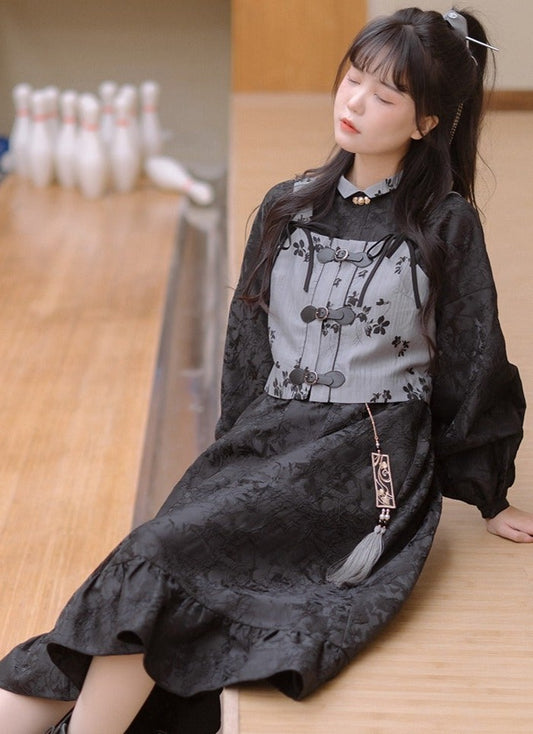 【예약상품】 블로섬프린트츠리피스크차이나드레스