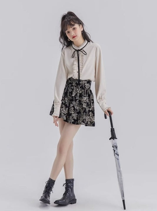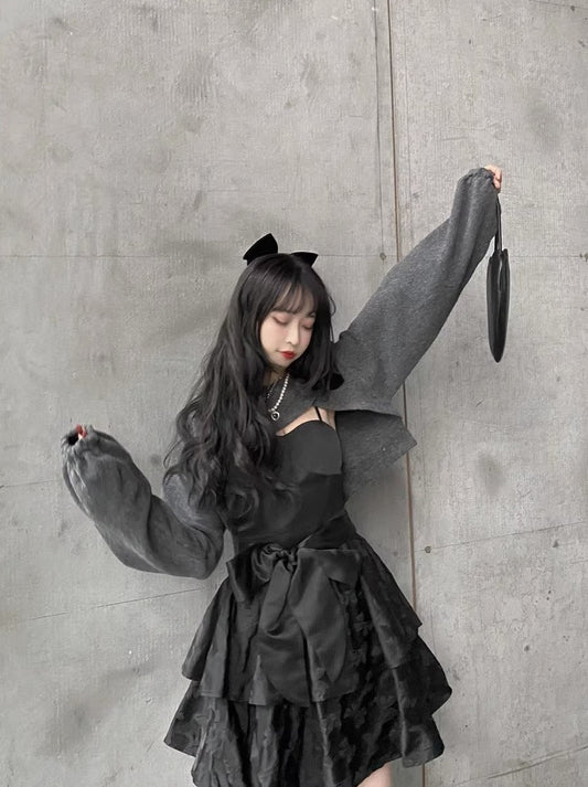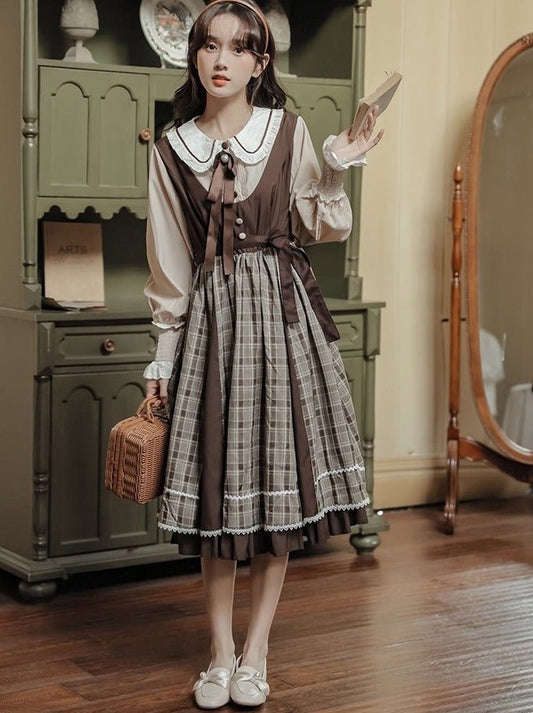 리본착이란트인스리프릴셔츠+박리본사이드레스