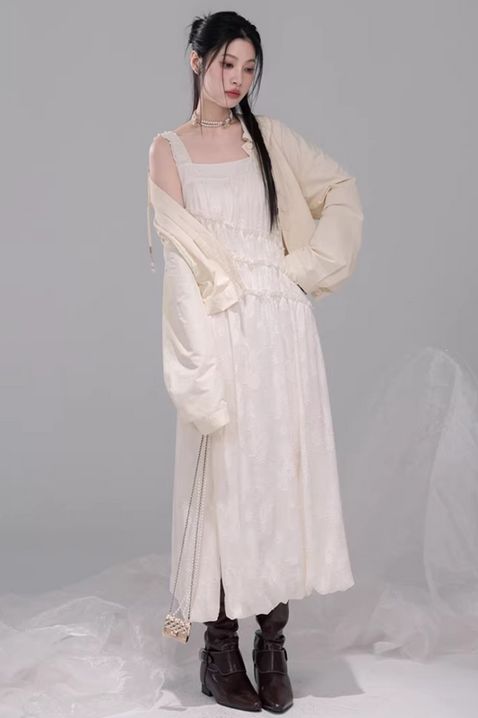 비대칭 레이어 프릴 캐미솔 원피스 + 가디건