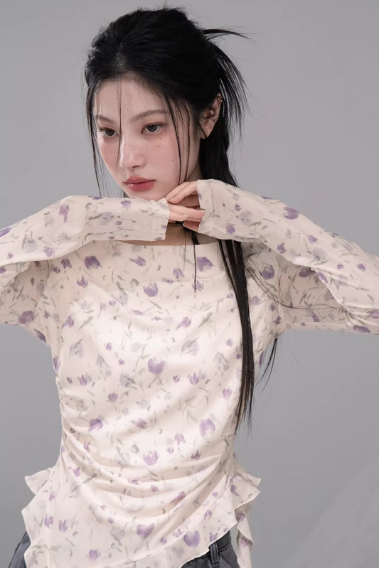 시어 비대칭 플로럴 탑