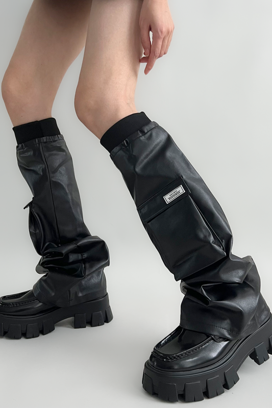 다크 레더 레그 워머