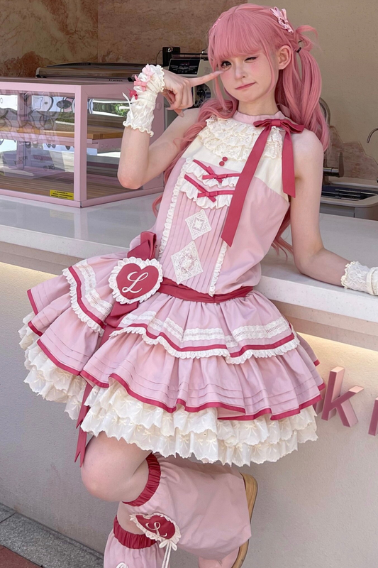[3월 10일 예약마감]캔디 하트비트 로리타 셔츠 + 점퍼 스커트 + 모자 + 리본