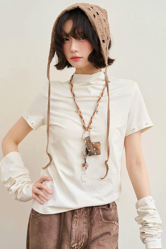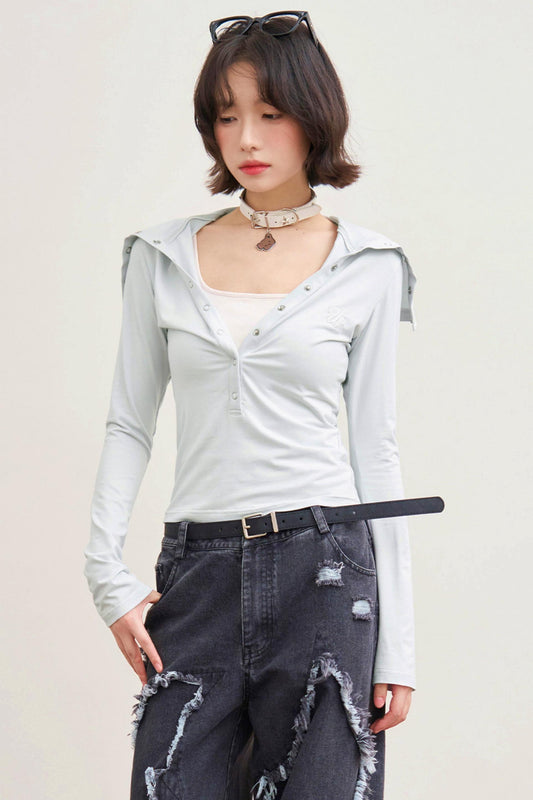 폴디드 칼라 컷아웃넥 탑