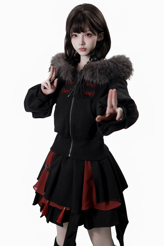 다크 탈부착 퍼 재킷 + 스커트 + 바지